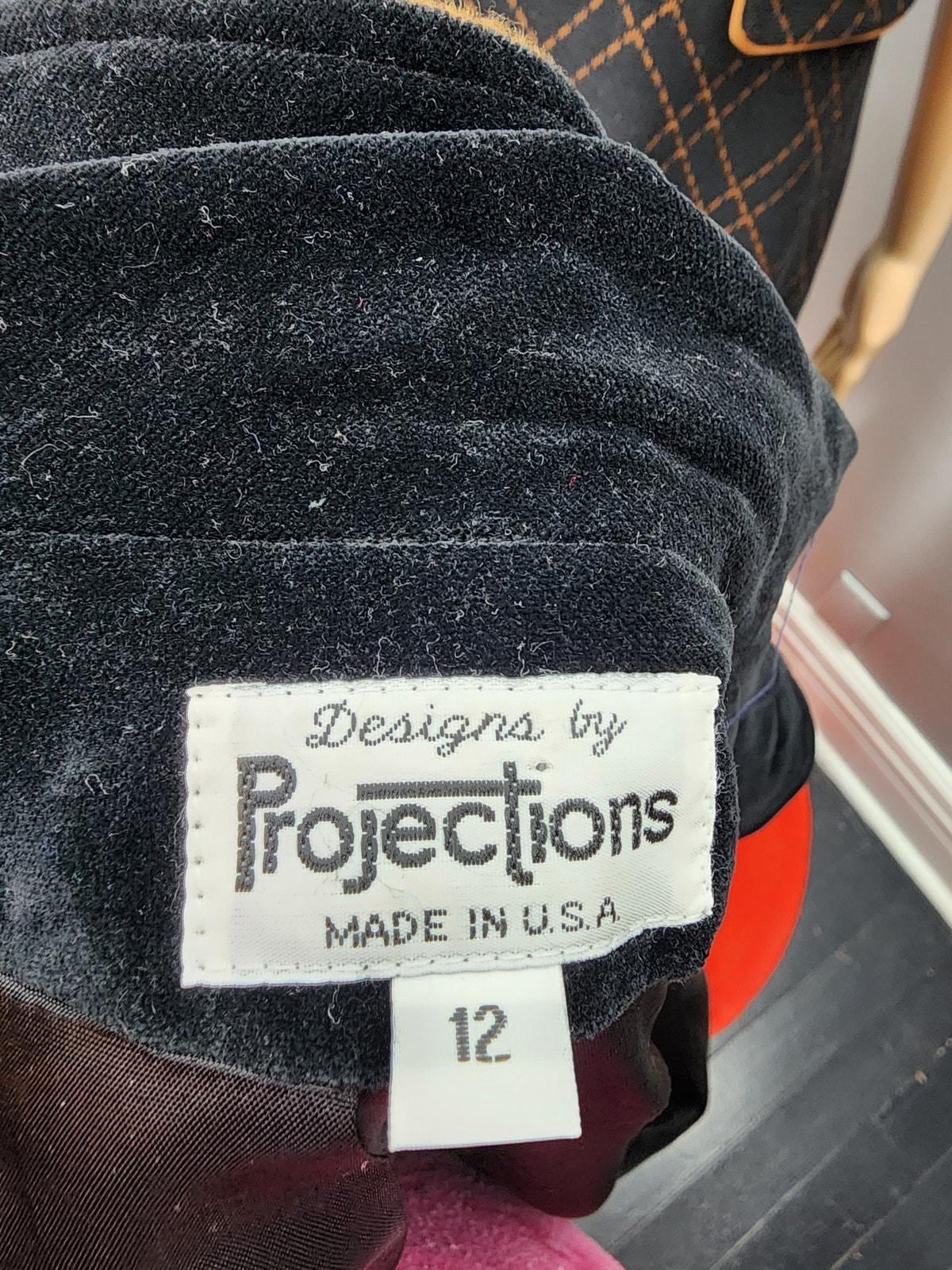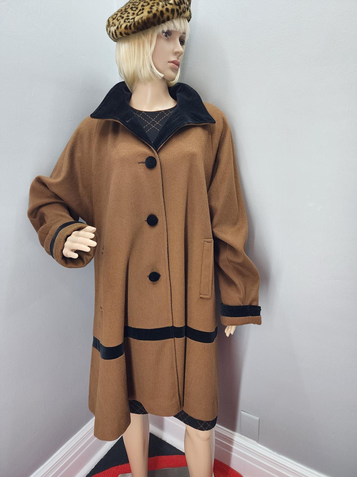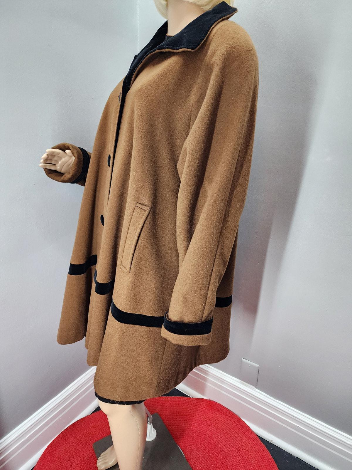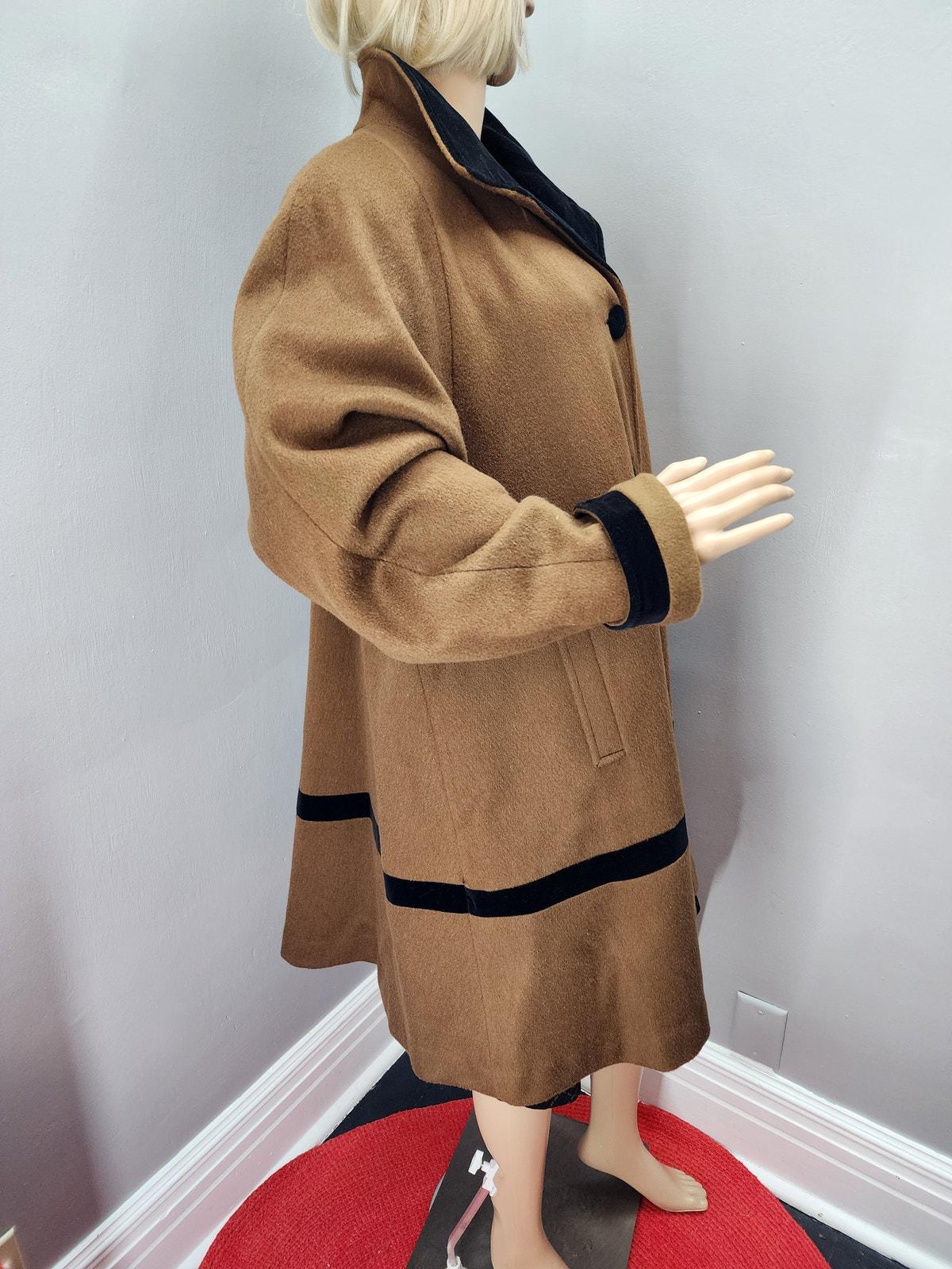 80s Vintage Projections Wool Blend Swing Coat with Velvet Trim - L