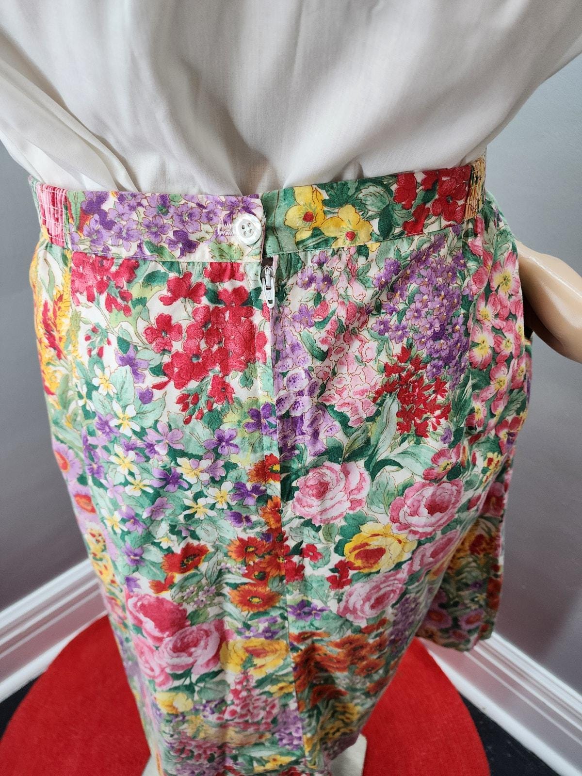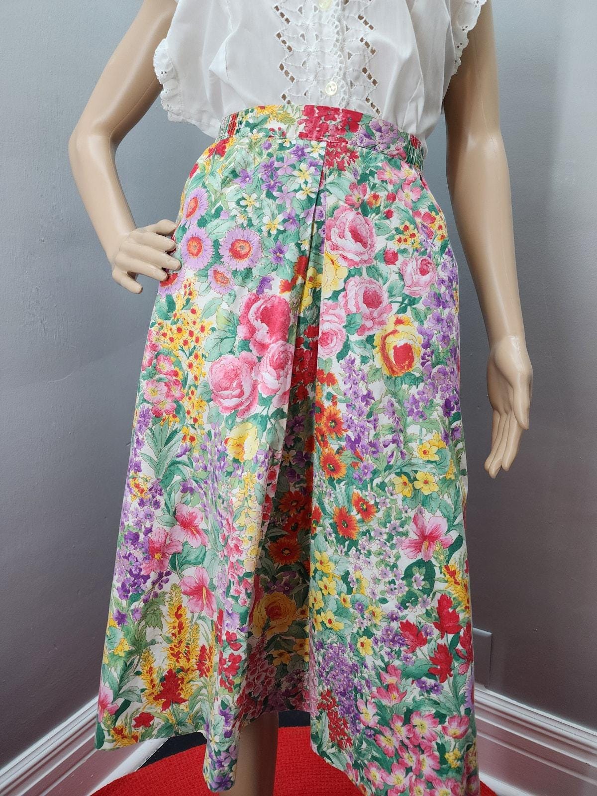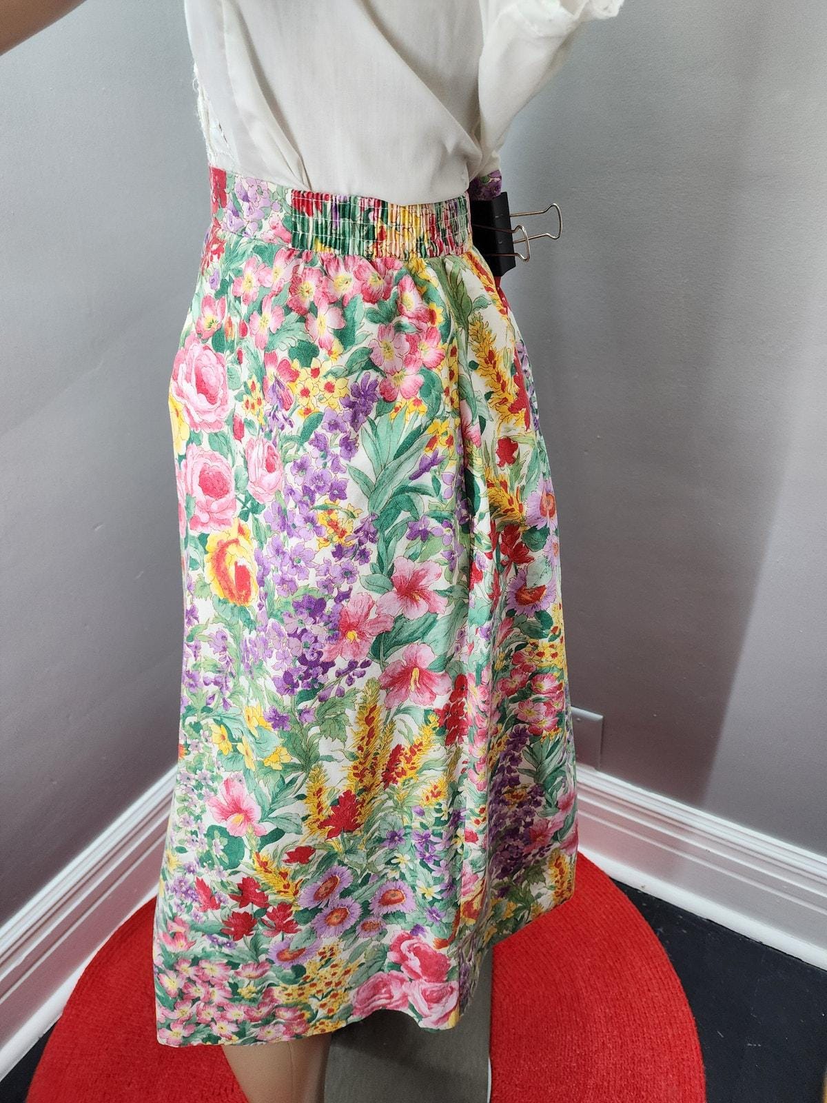 80s Andrew McMullan Floral Skirt, Pockets, Elastic Waist - L