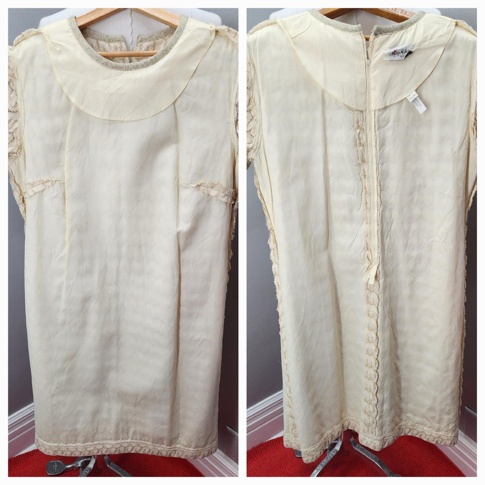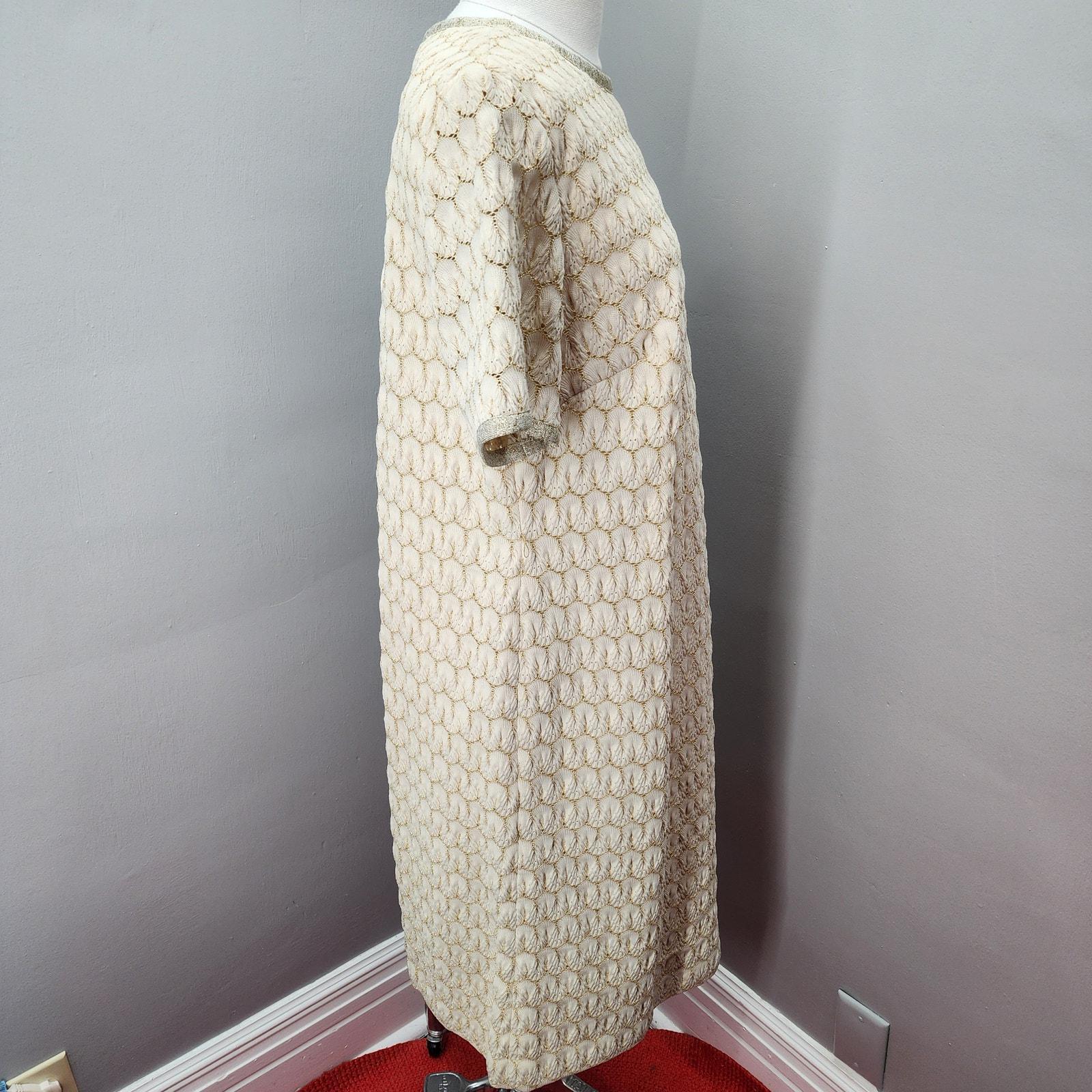 60s Vintage Mary Roberts Winter White Dress with Gold Lurex Design - XL