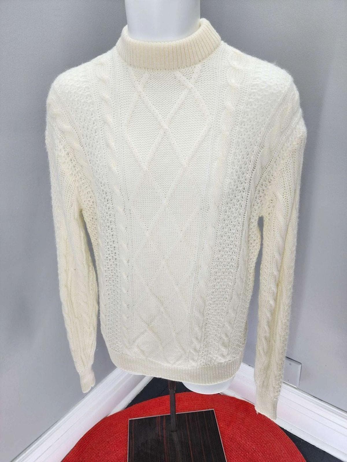 1950s Super soft and super cool vintage acrylic cream cable knit sweater. Perfect for those fall walks on the beach or winter celebrations.