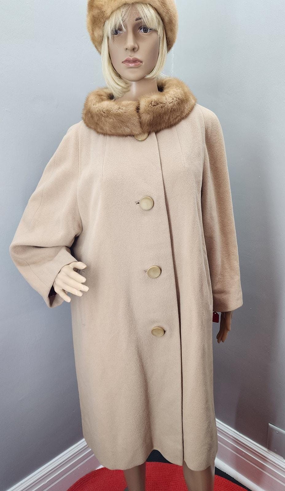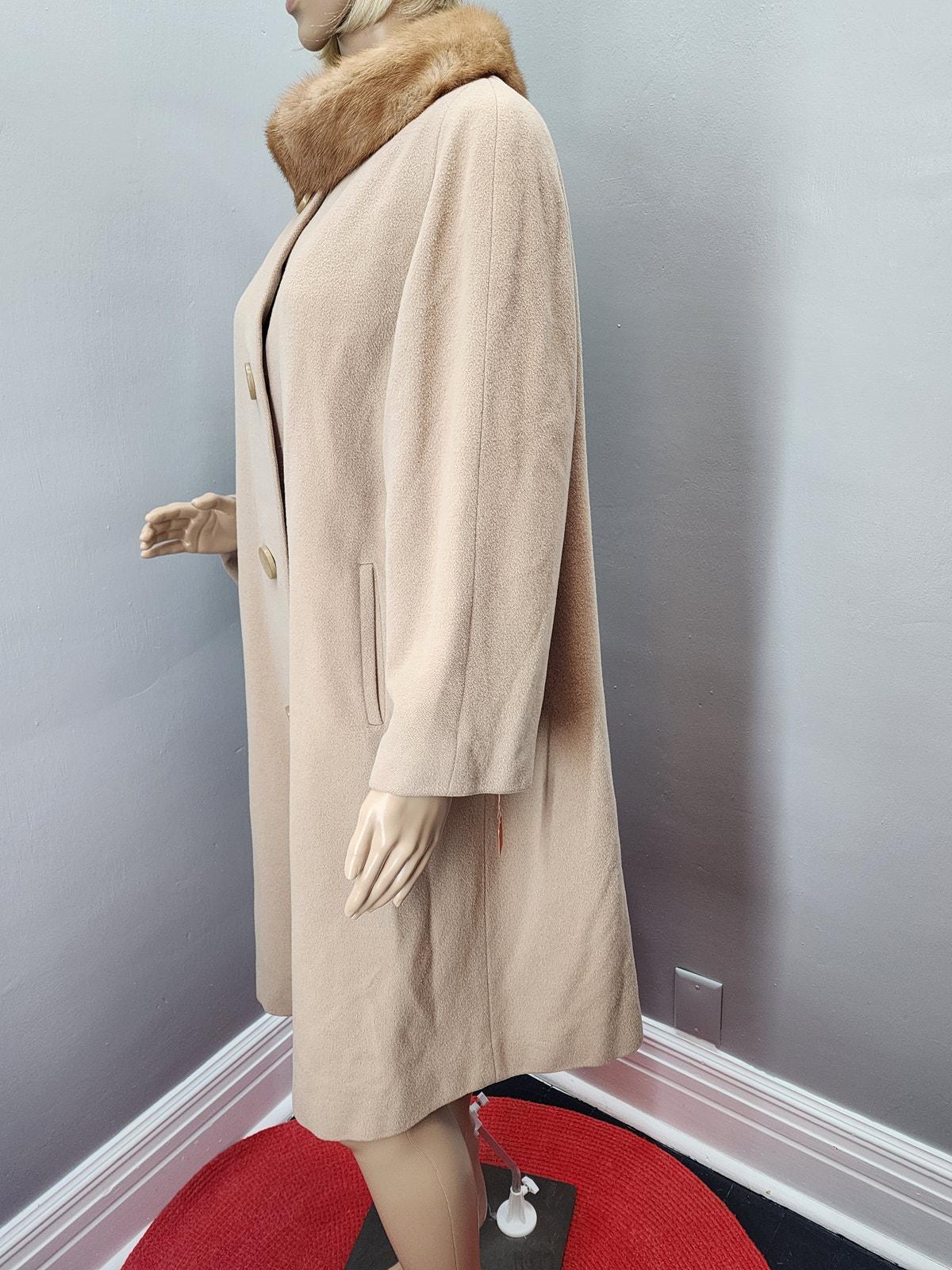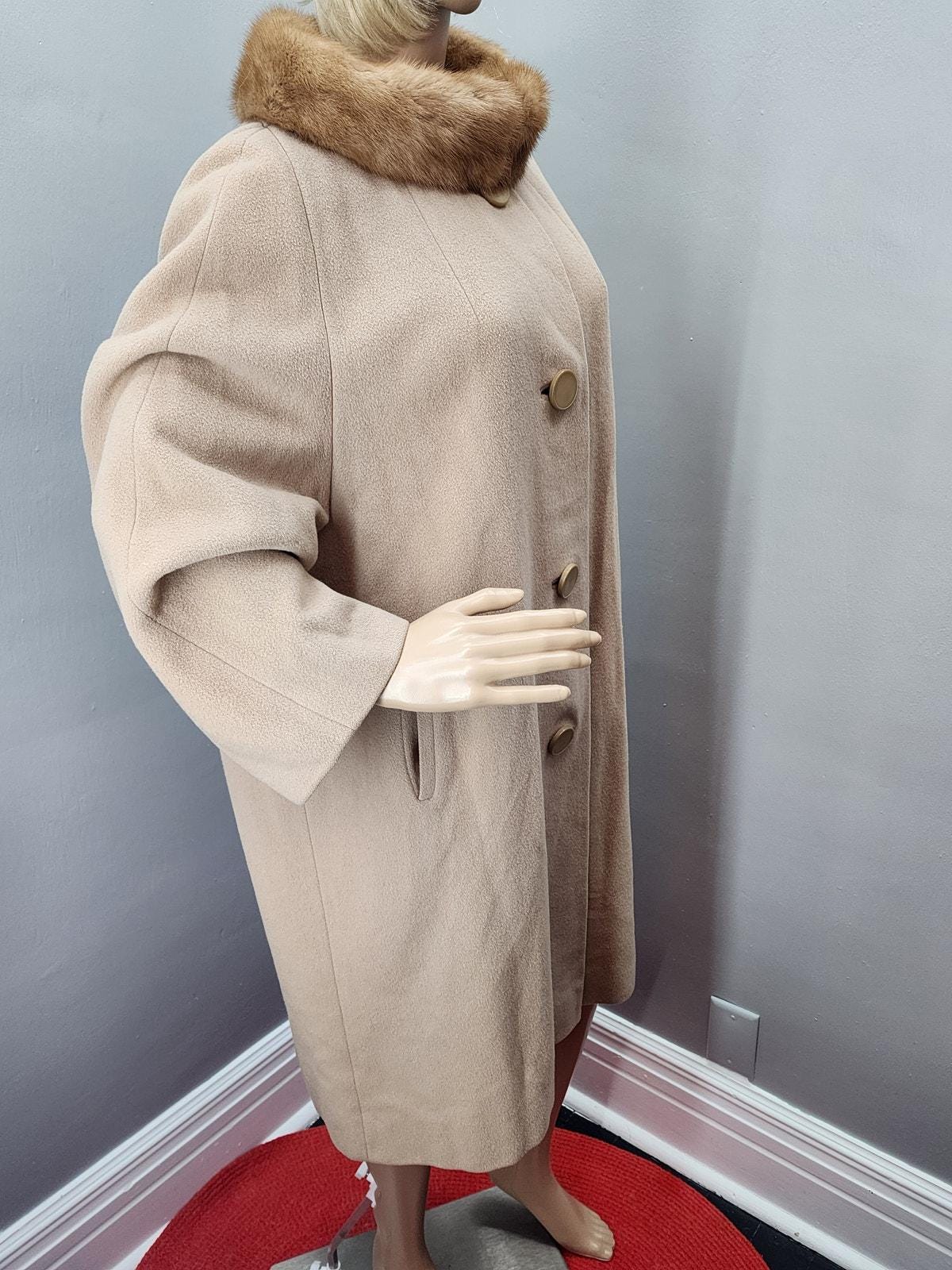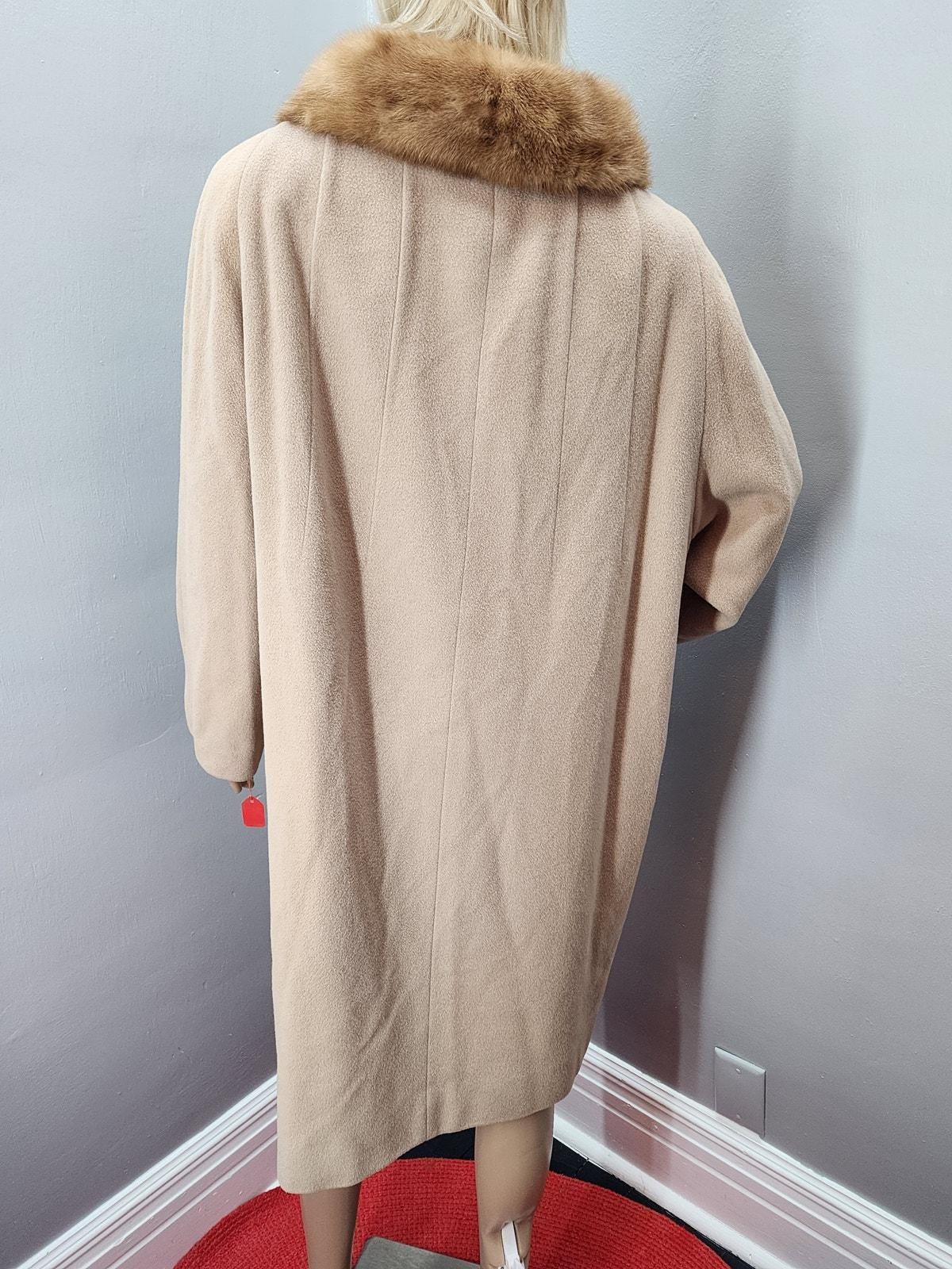 60s Vintage Camel Cashmere Coat with Vintage Fur Collar - XXL
