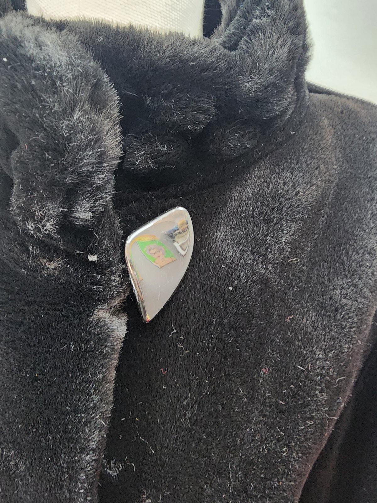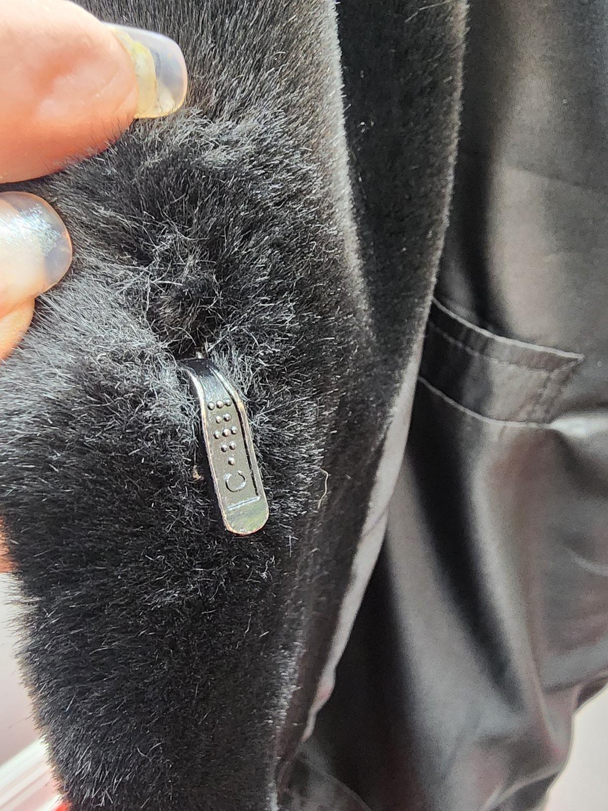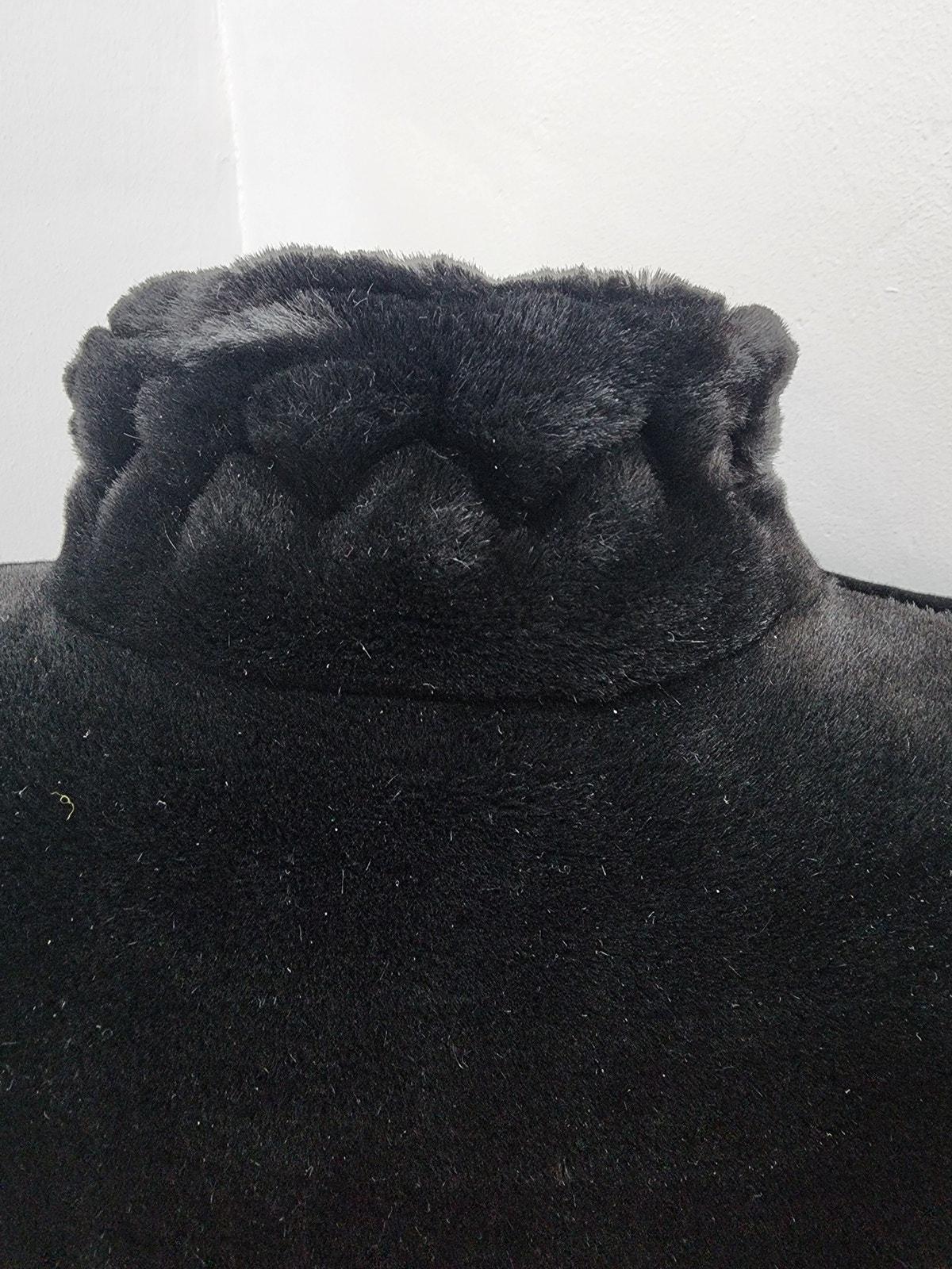 Has a super cute button closure at the neck, and furrier hook & eye down the front, (one needs repaired).