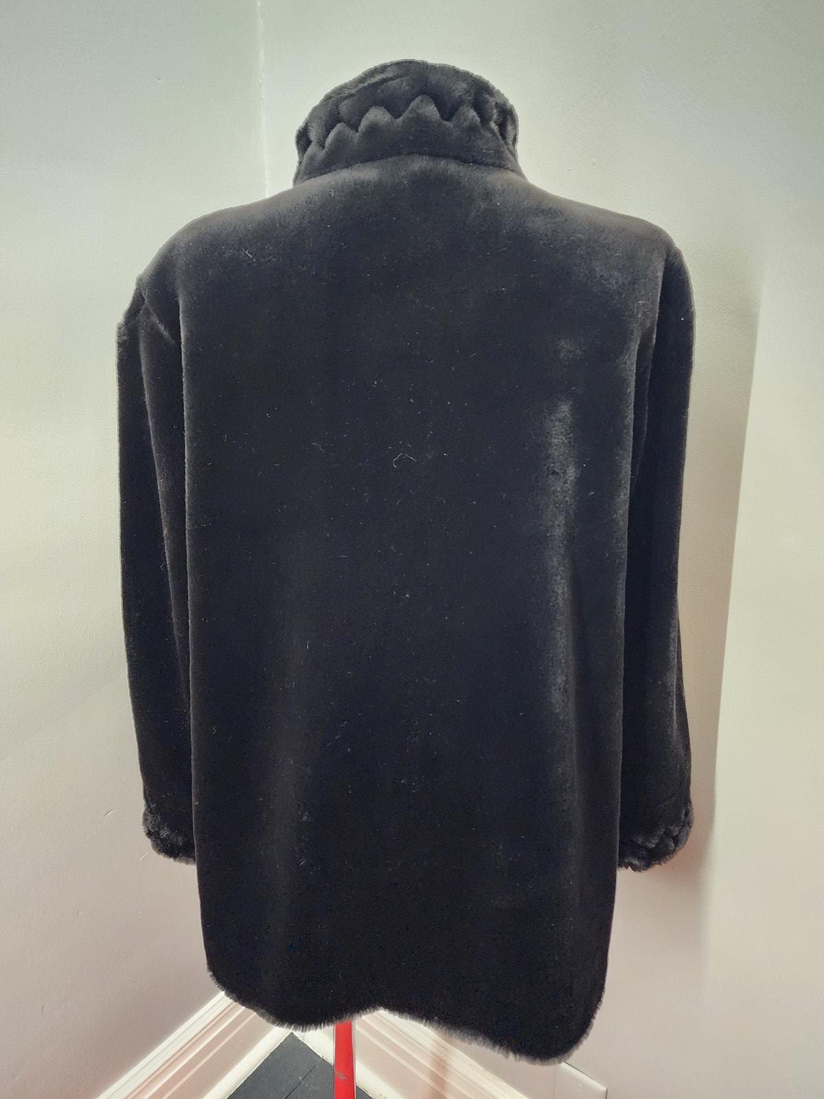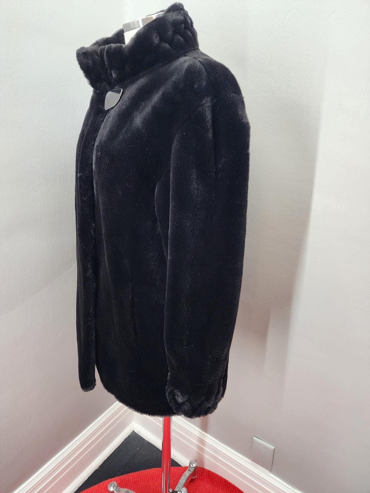 80s Vintage Olympia Black Faux Fur Coat - M