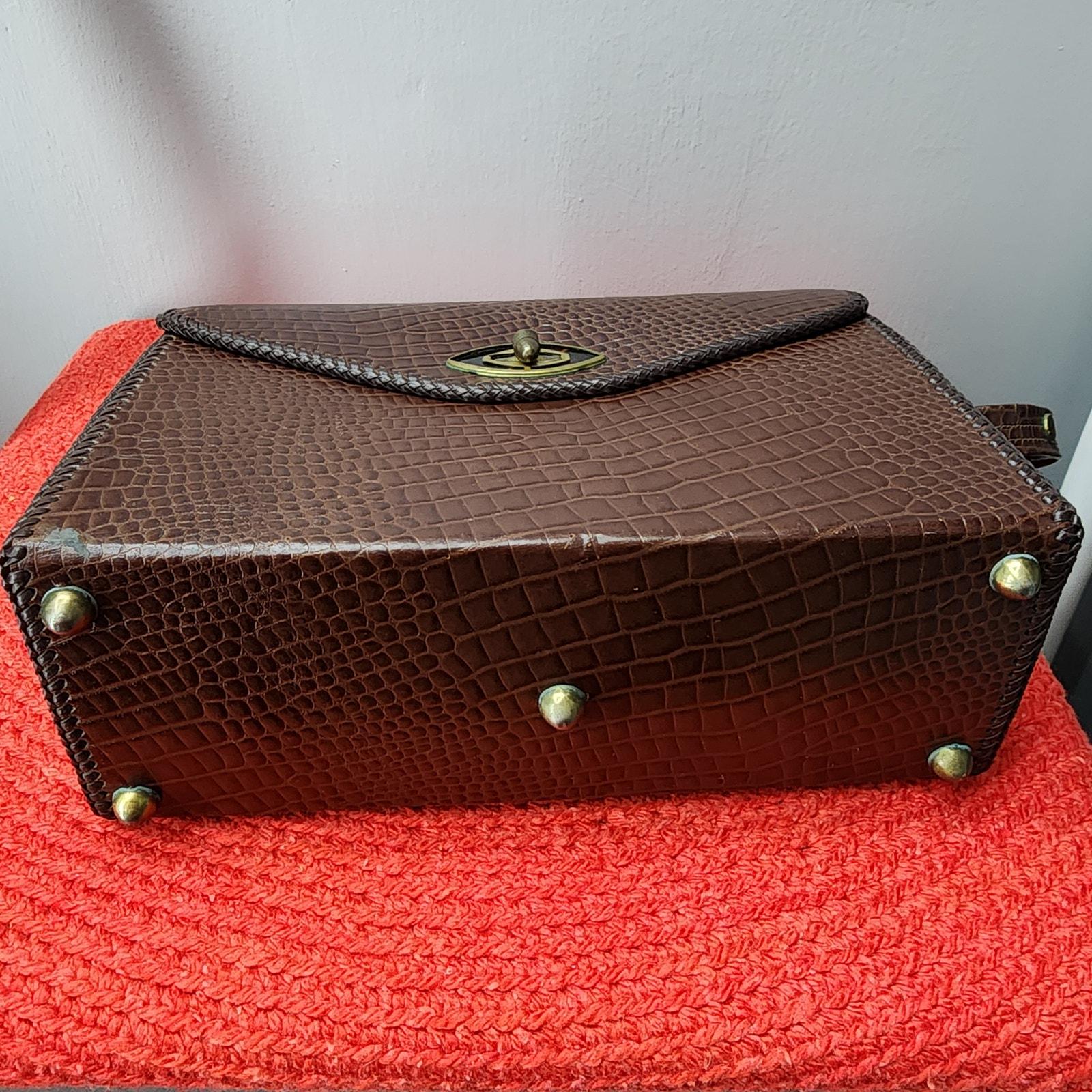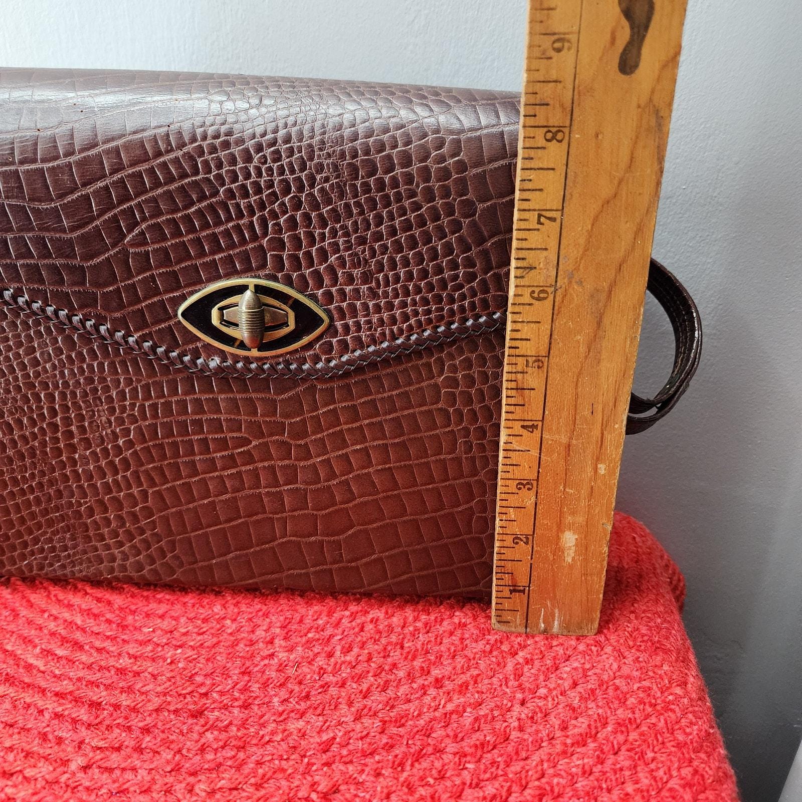 60s Vintage Faux Crocodile Box Purse with Lucite detail, Large