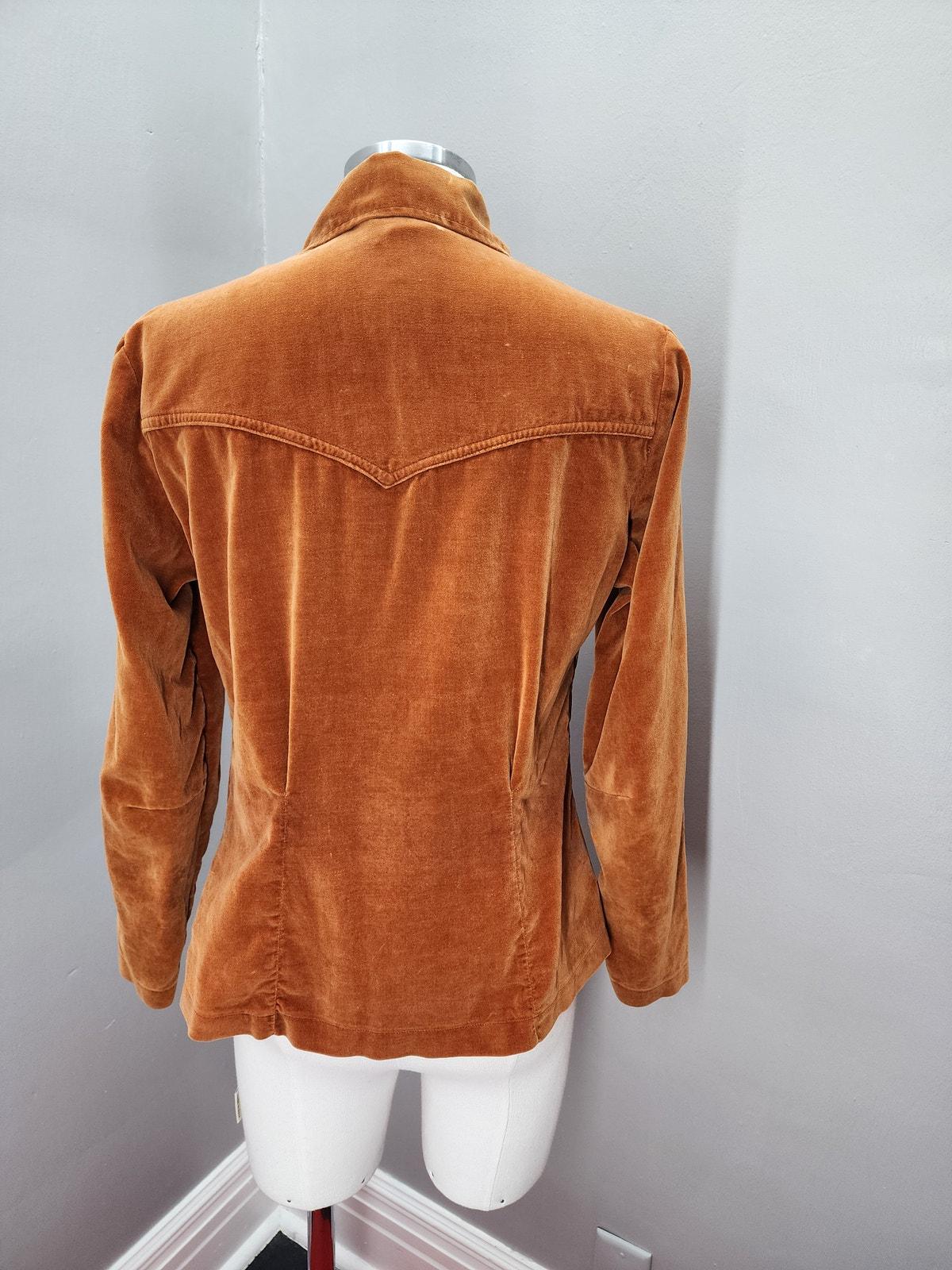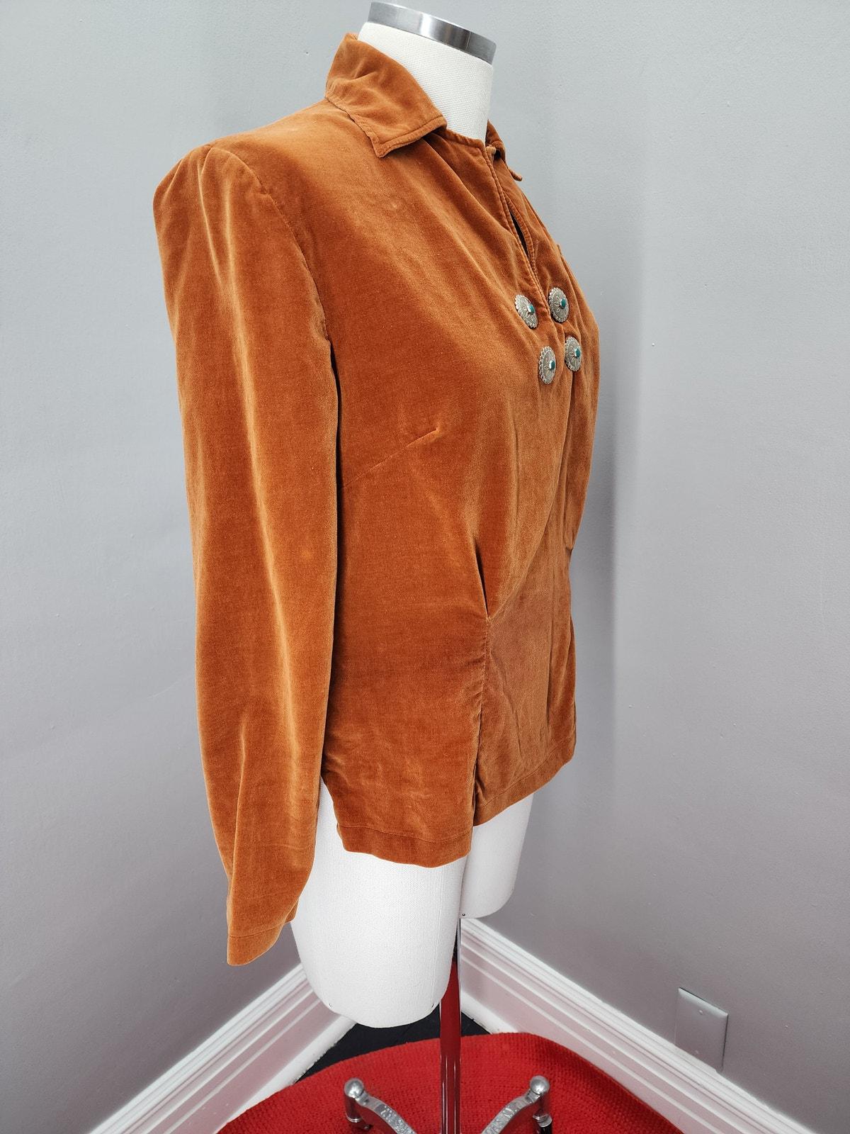 60s Vintage Thunderbird Fashions Burnt Orange Southwestern Velvet Top - S