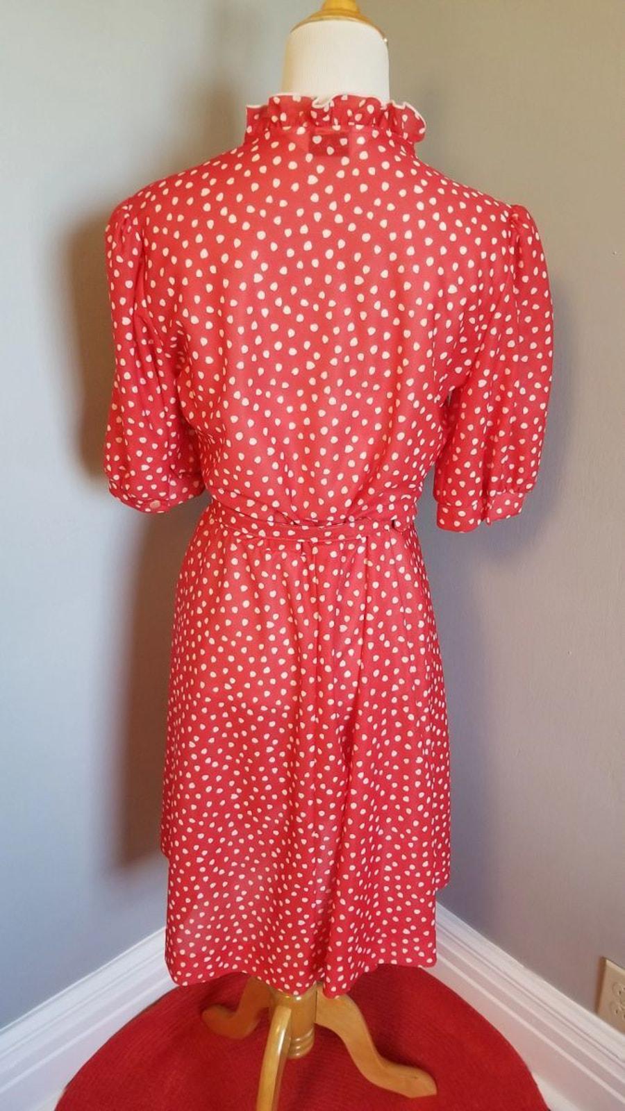 80s Vintage Rockabilly Red and White, Heart / Polka Dot Dress by Blair - M