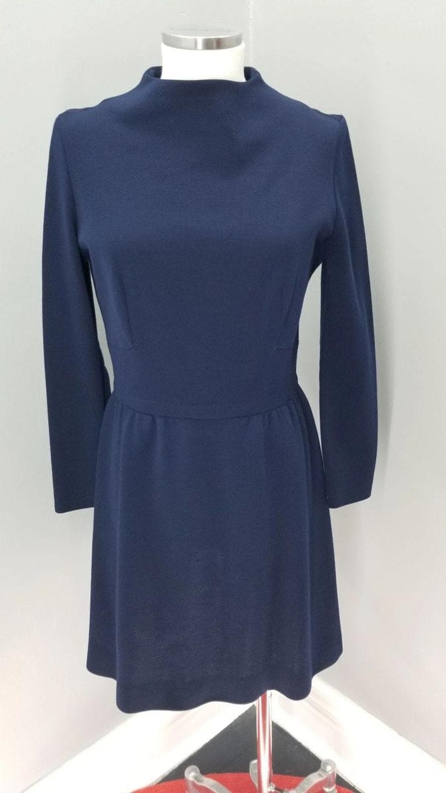 60s Vintage Jonathan Logan Navy Blue Wool Knit Dress - M