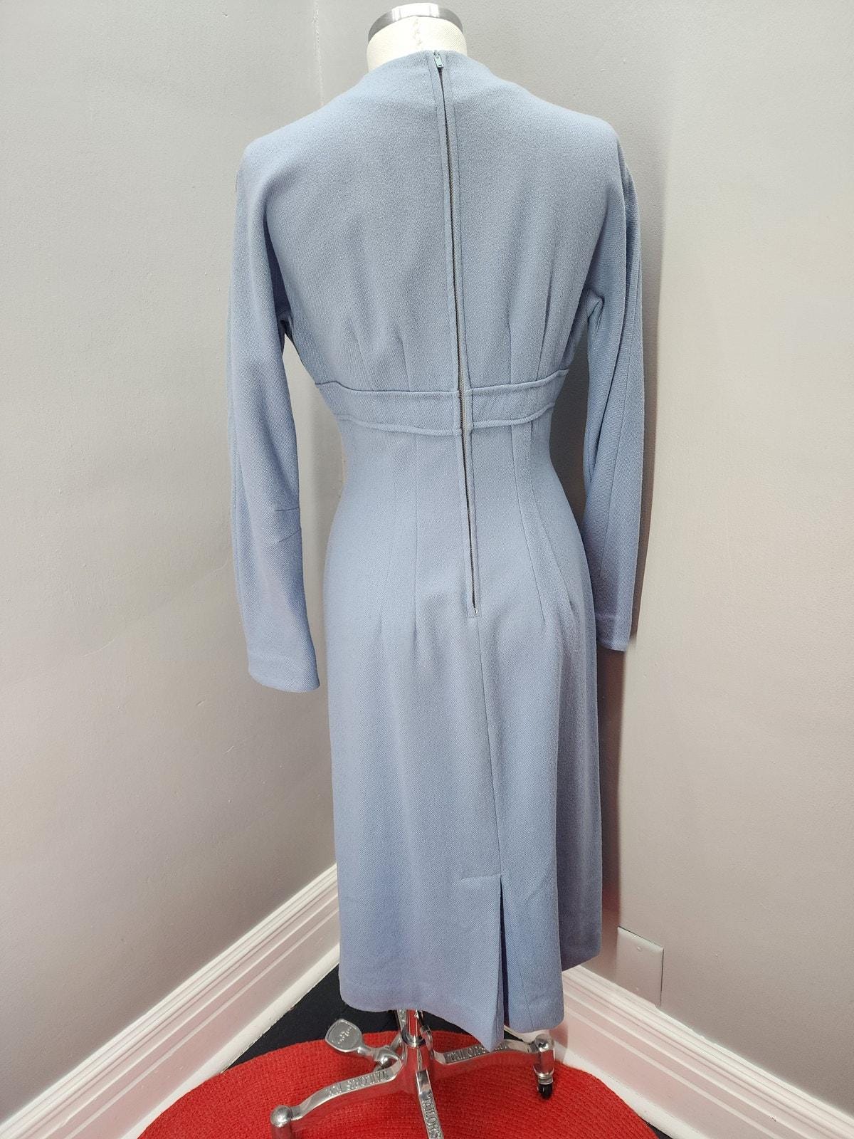 Late 40s/ Early 50s Vintage Jonathan Logan Baby Blue Wool Pencil Dress - M