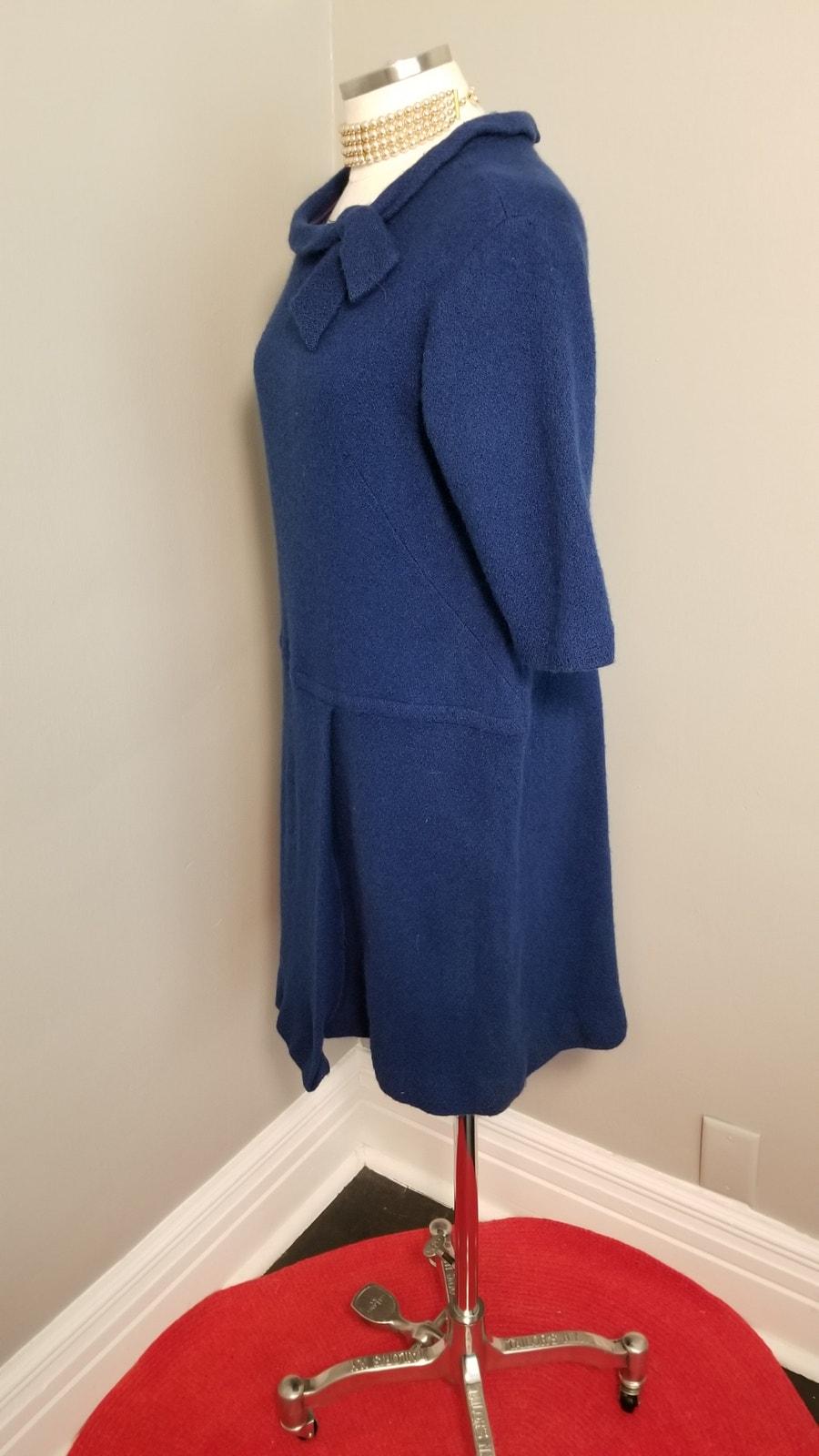 60s Vintage Berkshire Royal Blue Wool Blend Shift Dress - L