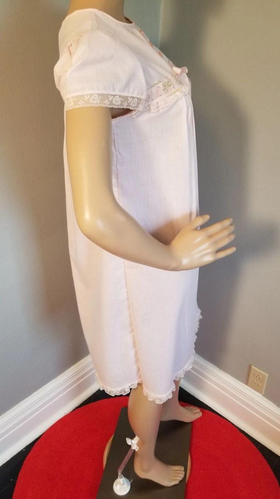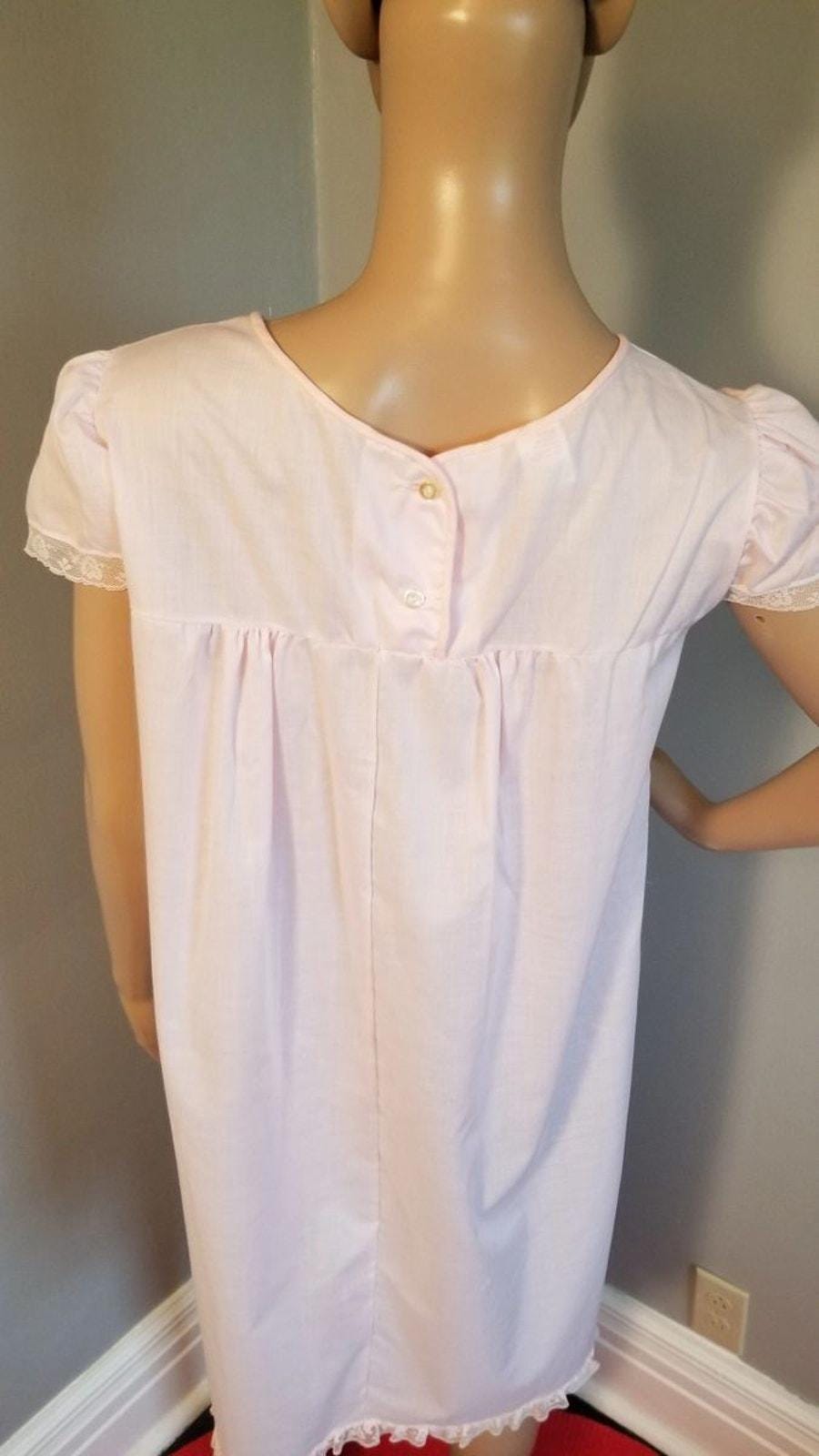 60s Vintage Gaymode Nightie / Night Gown in Blush Pink with Embroidery - S
