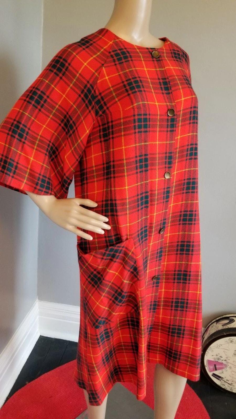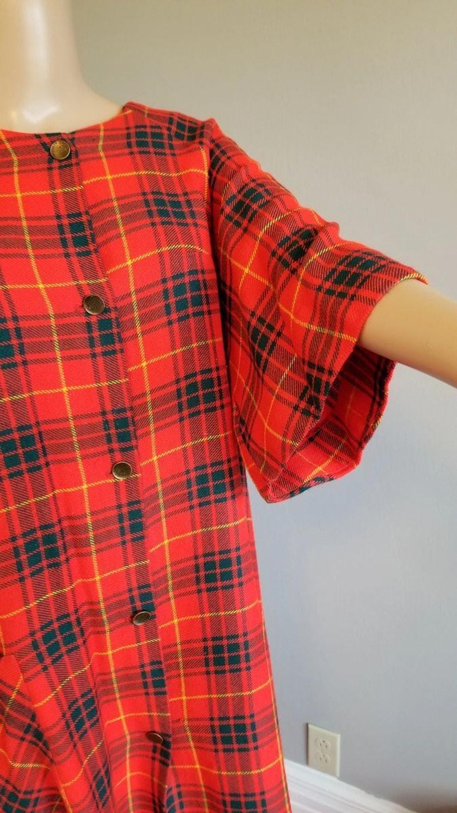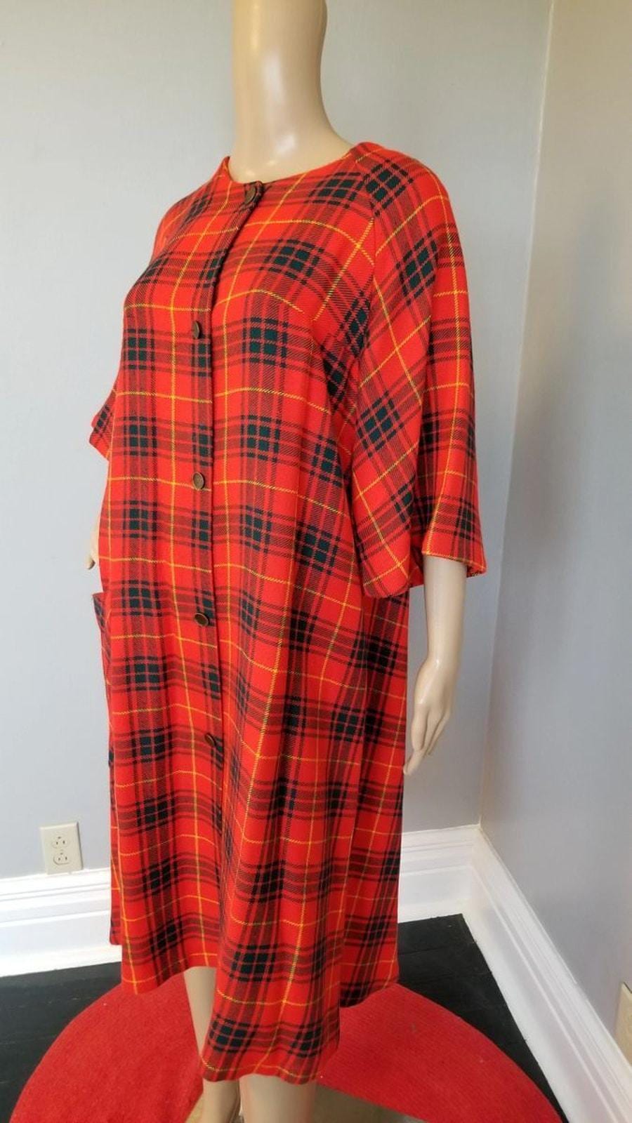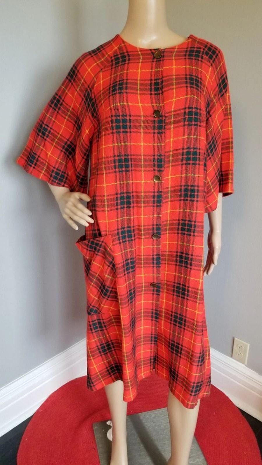 60s Vintage Plaid Robe in Red, Gold and Green - M/L