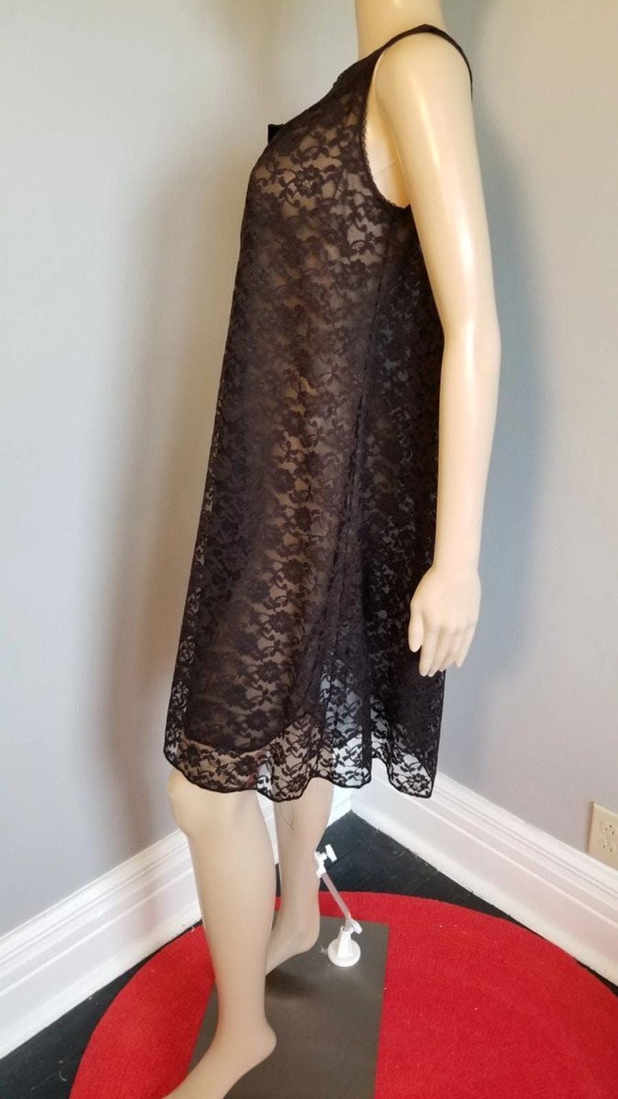 70s Vintage Black Lace over Nylon Short Nighty - L
