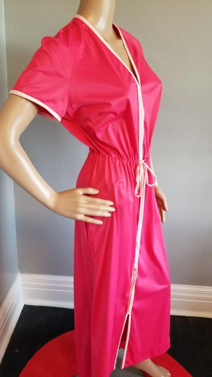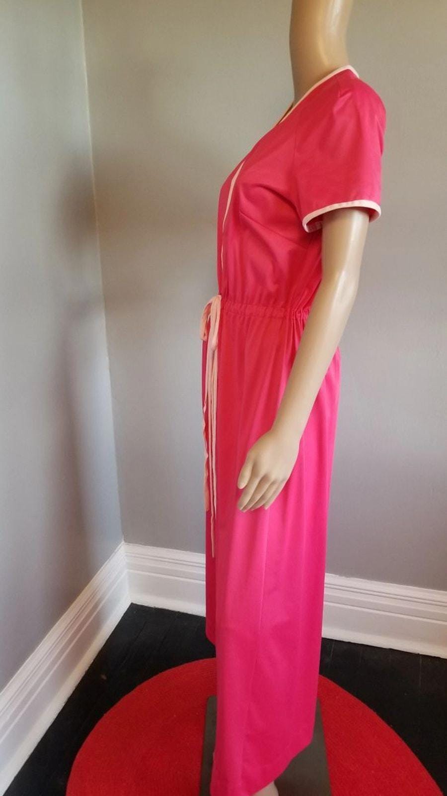 70s Vintage Vanity Fair Hot Pink Robe with Light Pink Detail - S