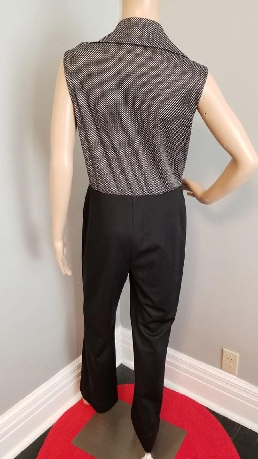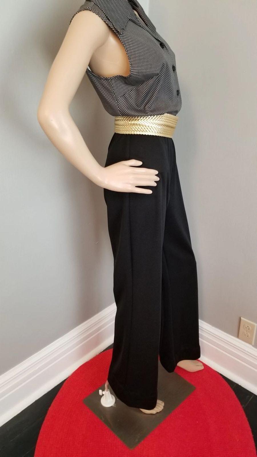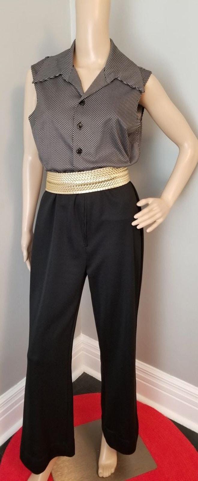 70s Vintage Alden's Fashions Black and White Polka-dot Jumpsuit - M
