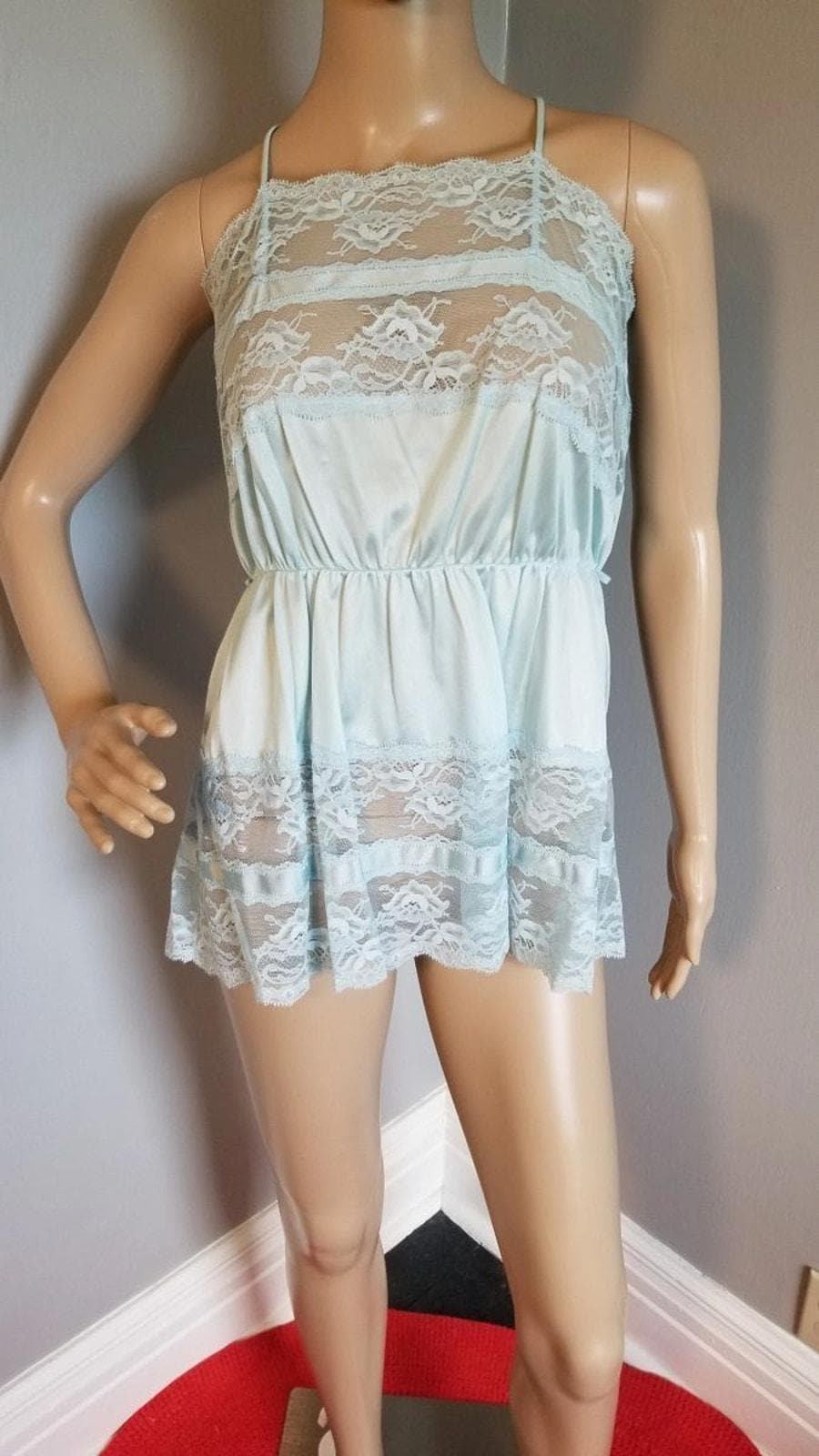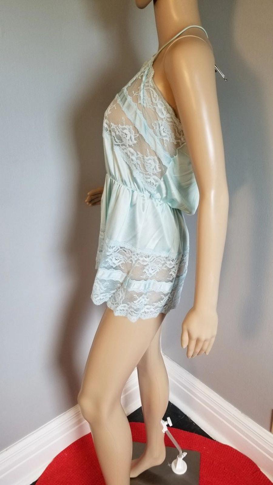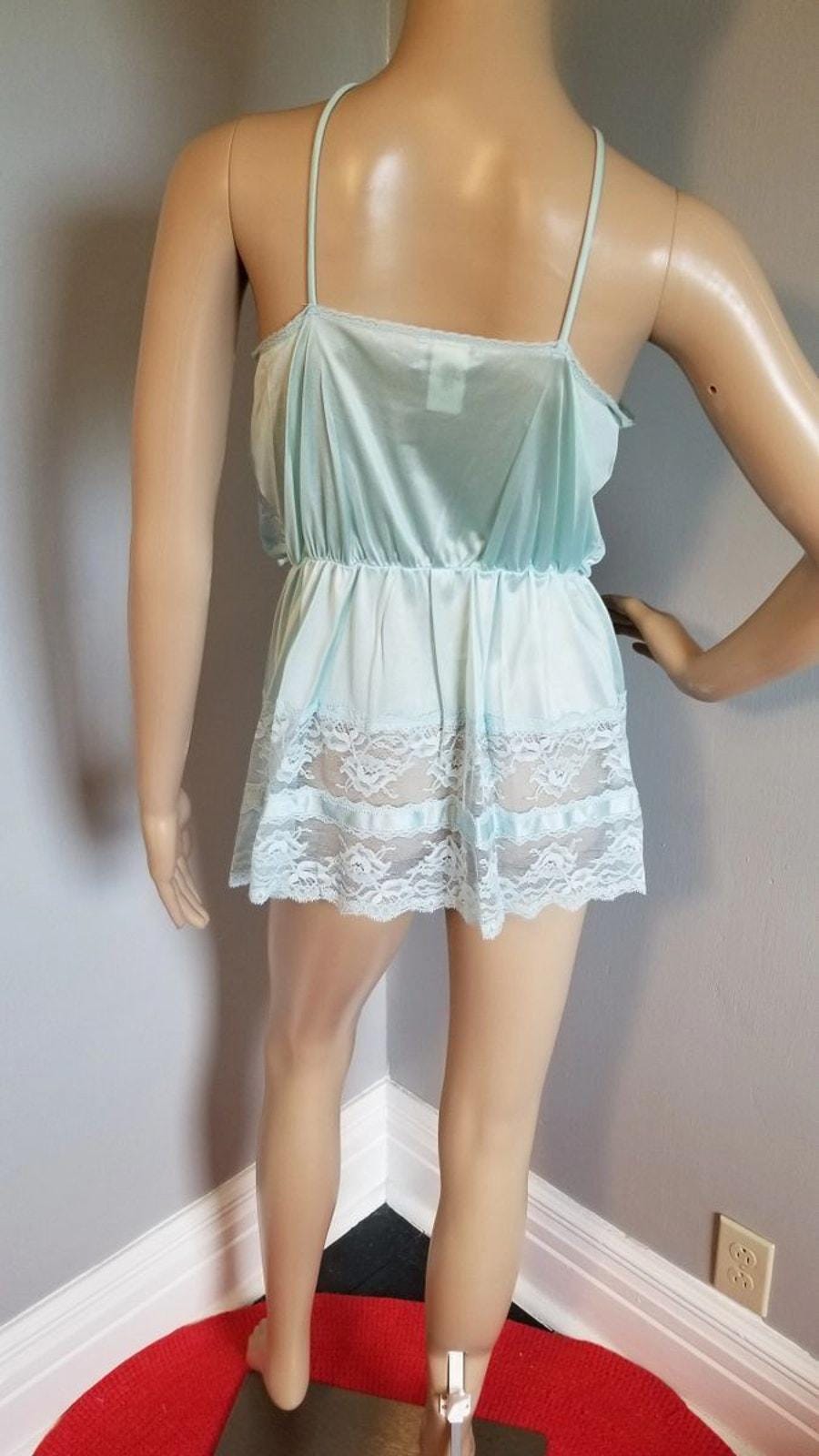 Super cute camisole with elasticized waist, lacy neckline with spaghetti straps.