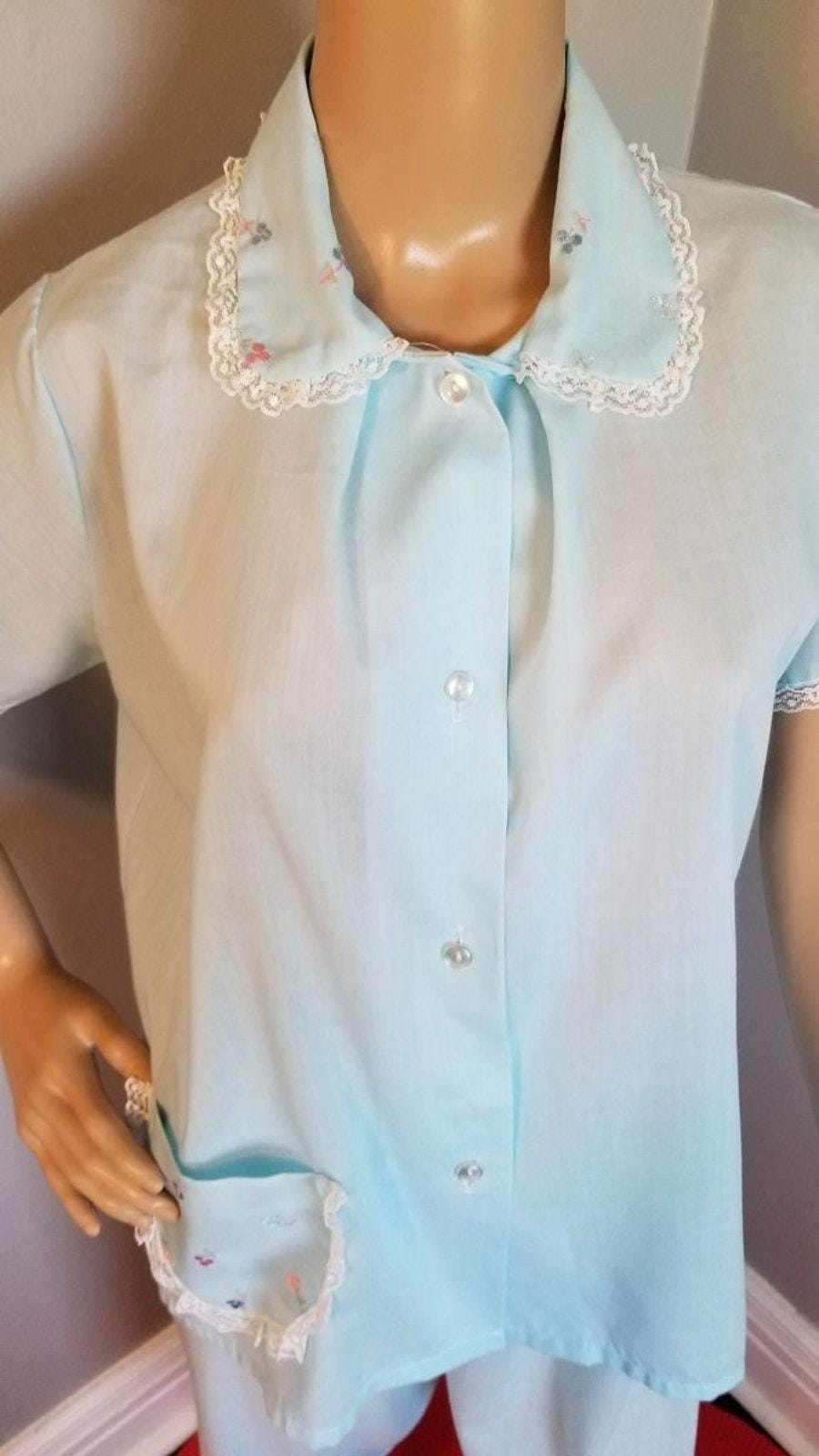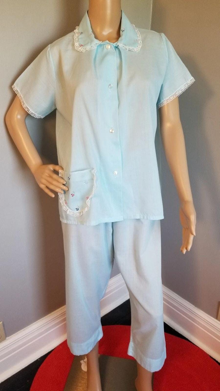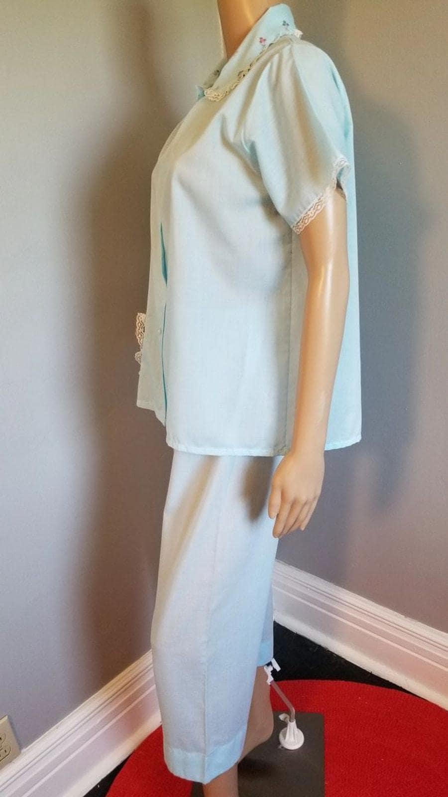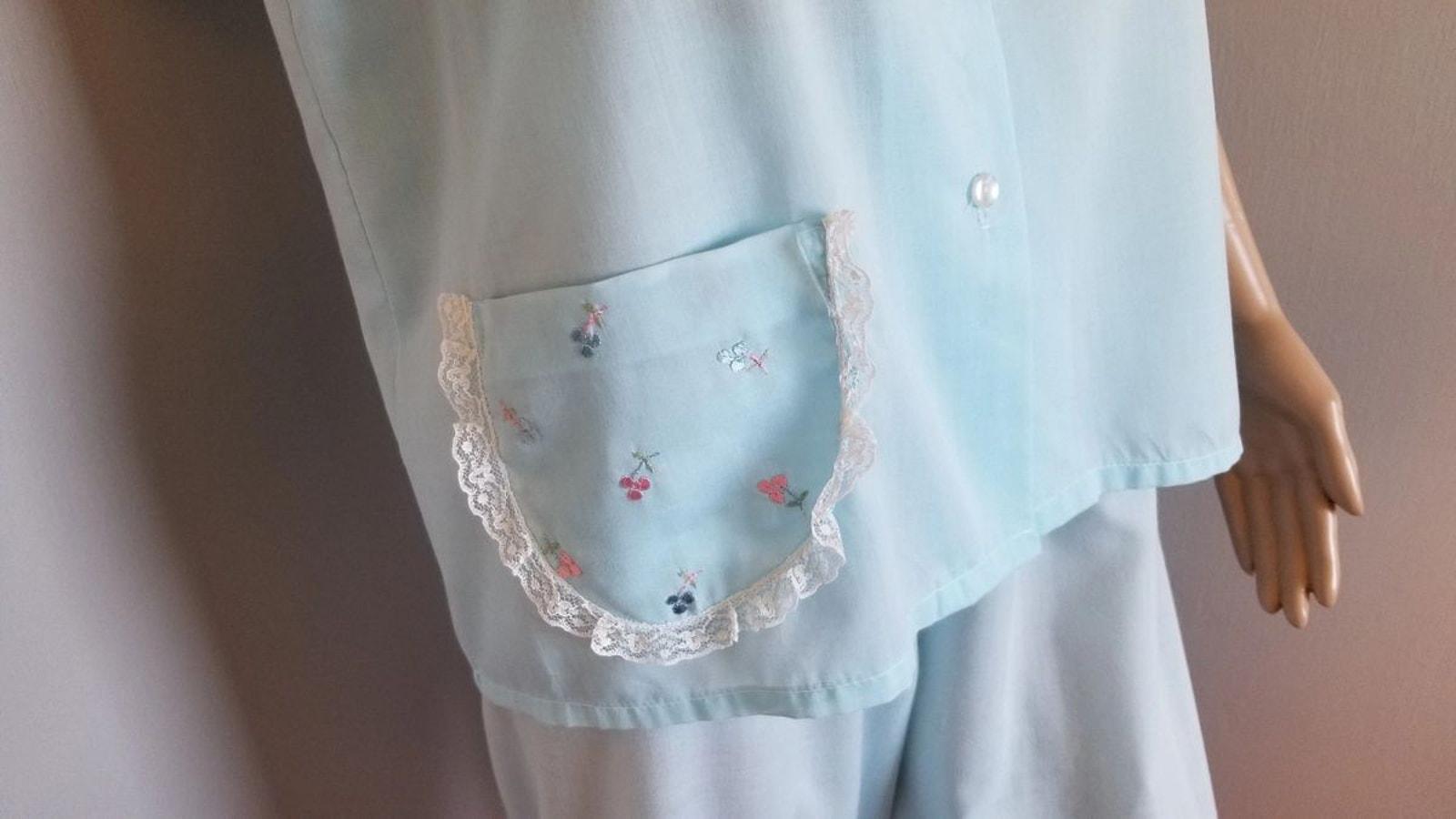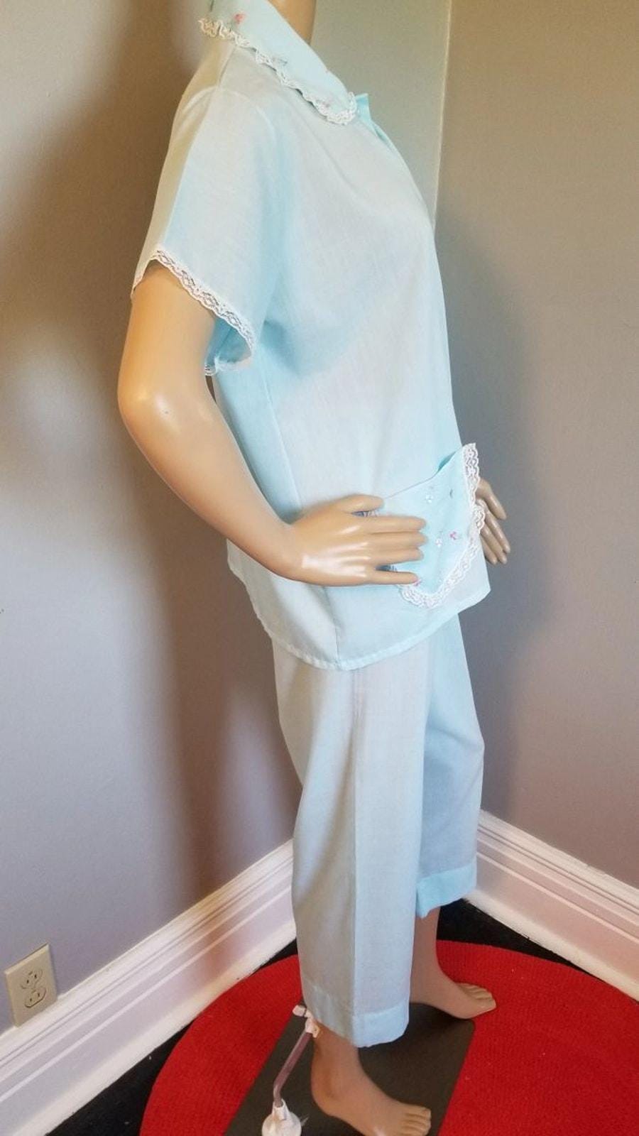 60s Vintage Katz Baby Blue Summer Weight PJ's - M