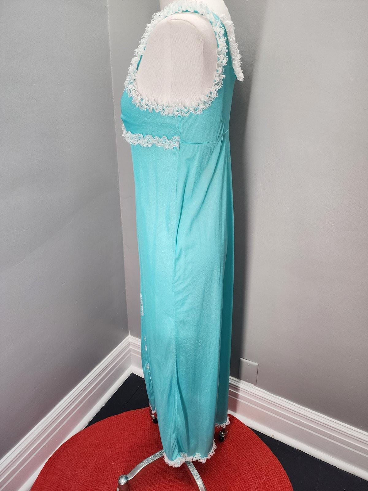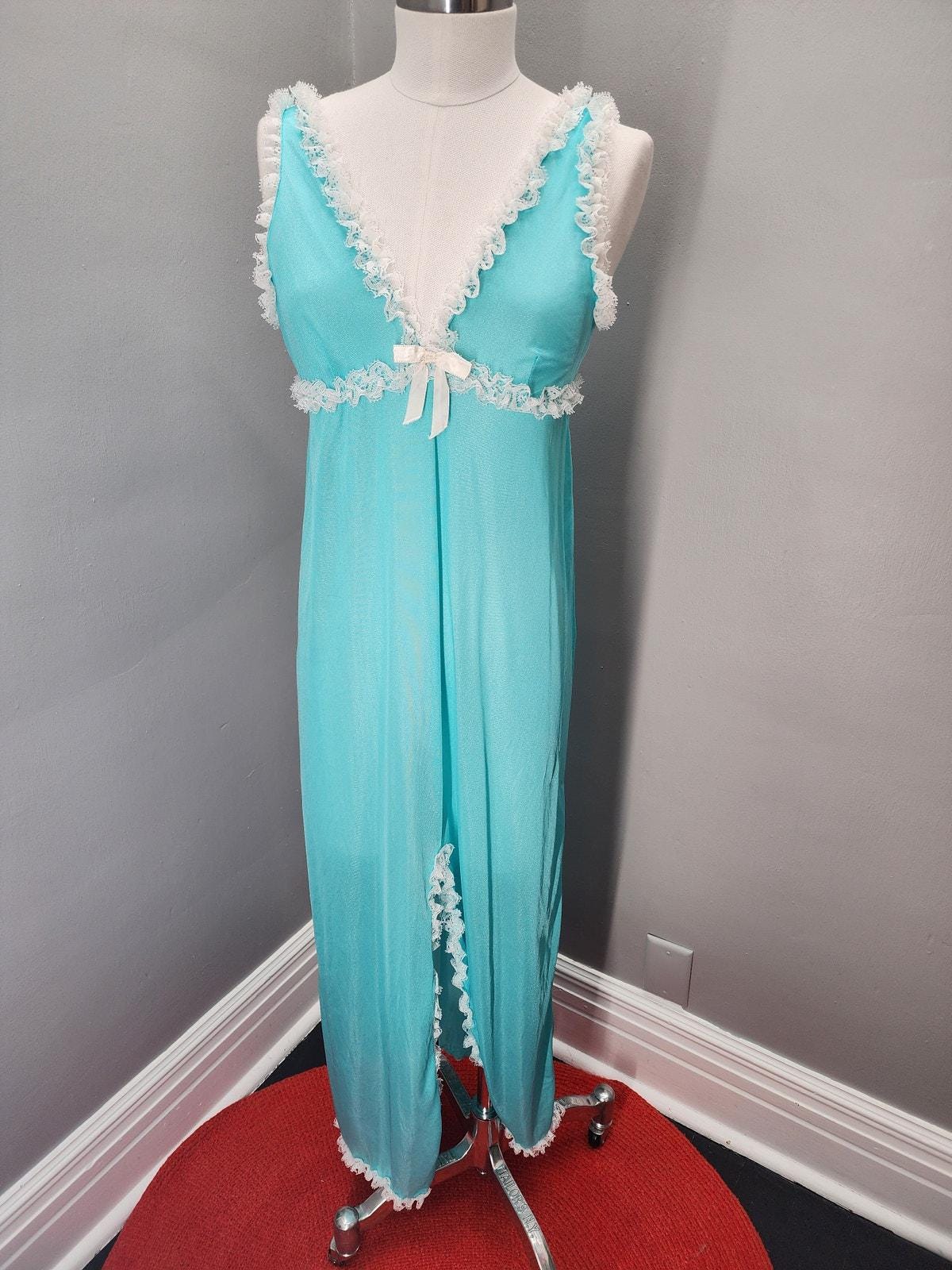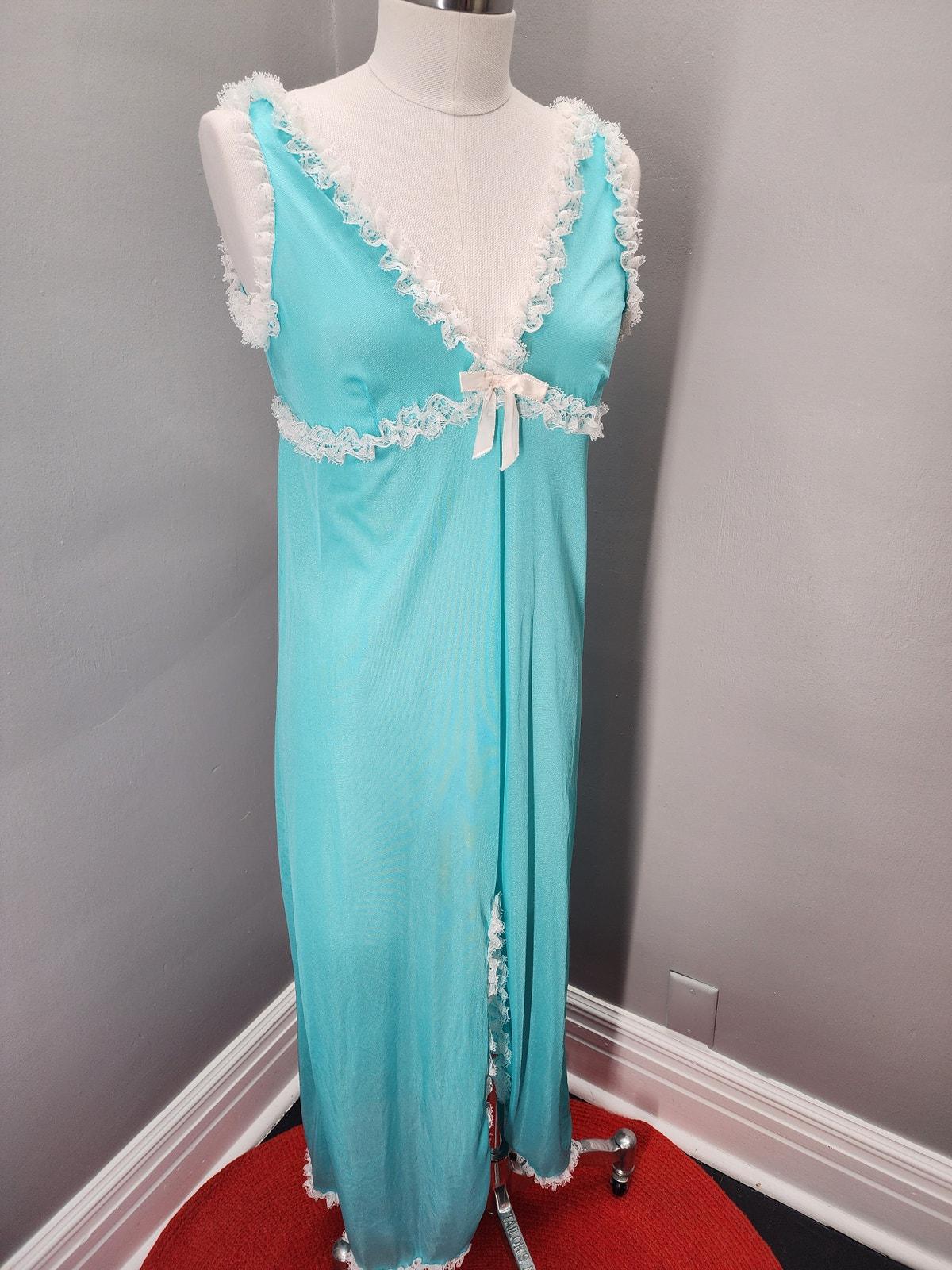 80s Vintage Robin Egg Blue Column Gown with Frilly Lace - S