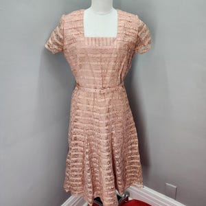 Vintage fashion runs smaller than modern fashion. Use supplied measurements to ensure fit by comparing them to a flat-laid well fitting garment you own.