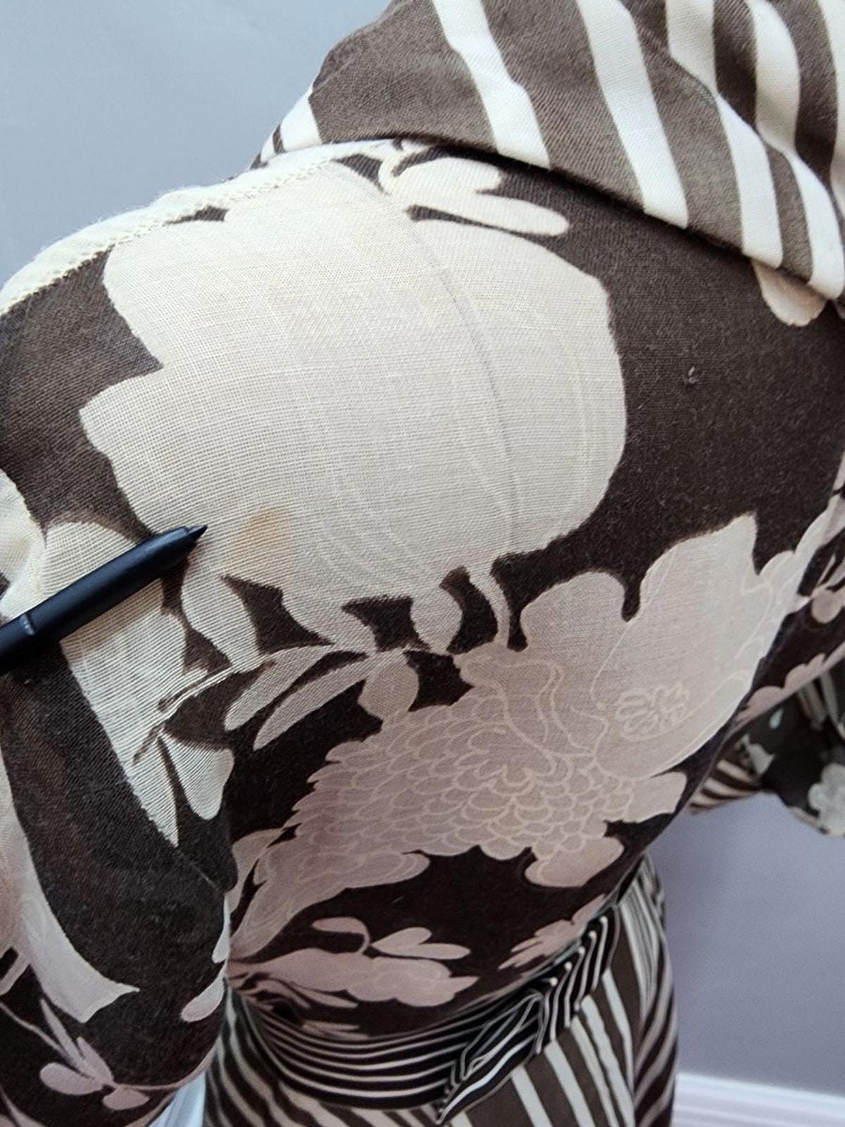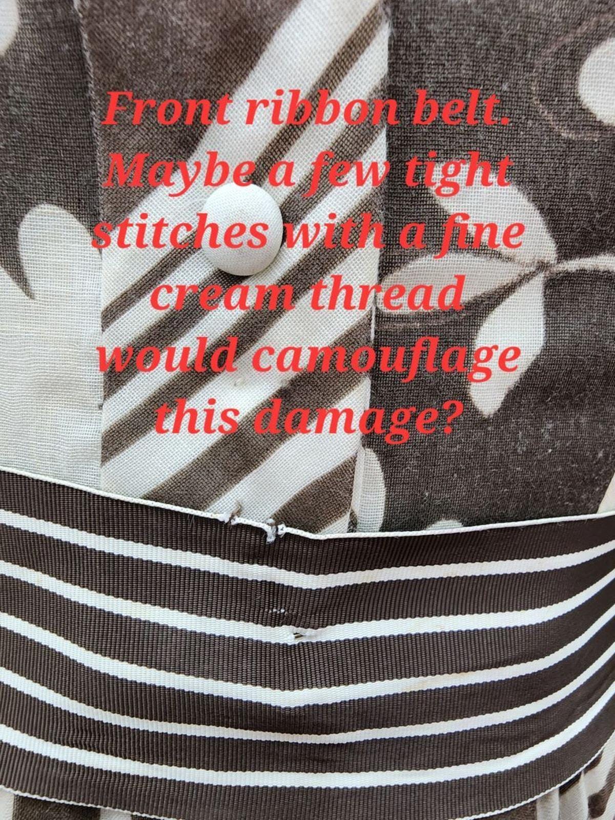Condition : Good vintage condition. There are a few stained areas, but I truly believe they will remove easily with a dry cleaning. There are a few loose threads and the back bow closure could use some refining.
