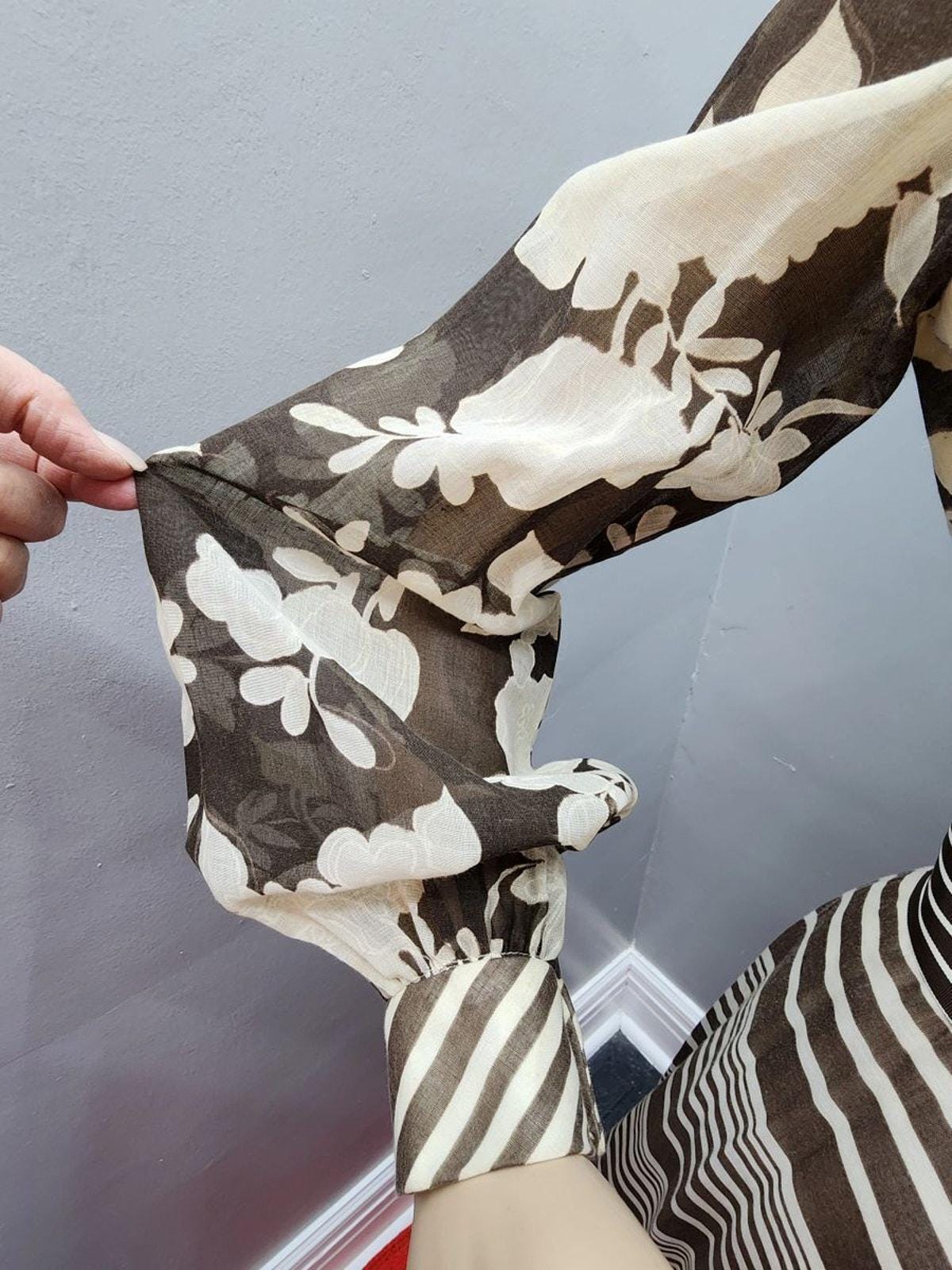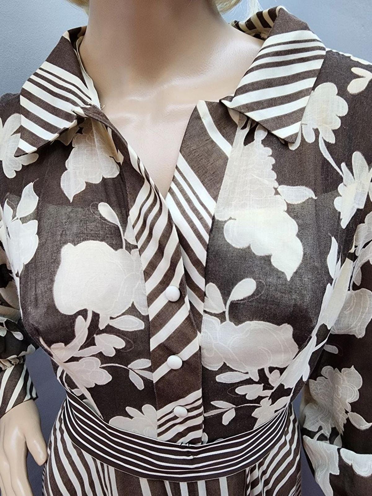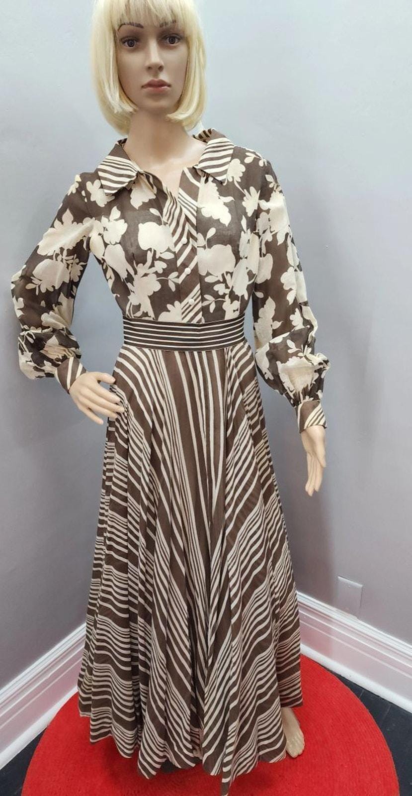 70s Vintage Super Maxi in Brown and Cream Organdy - XS