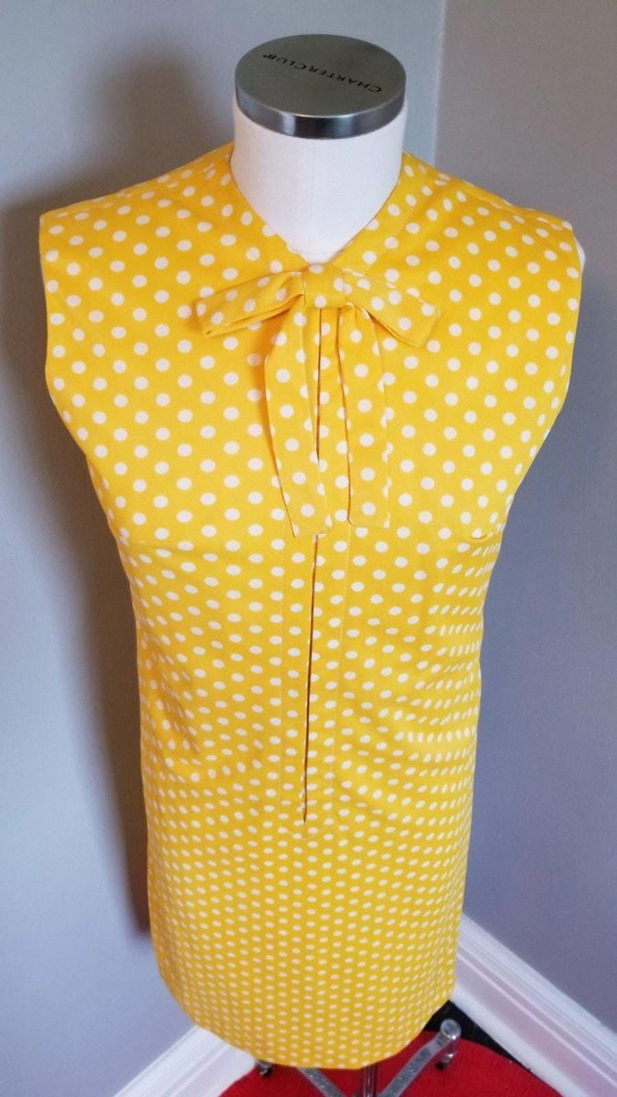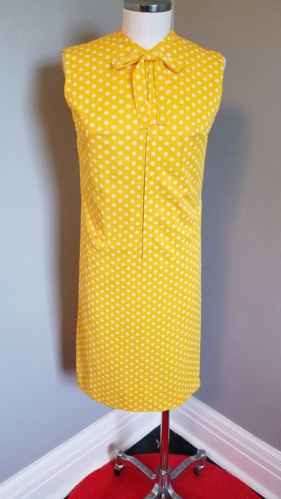 60s Vintage Yellow Polka-Dot Shift Dress - S / M