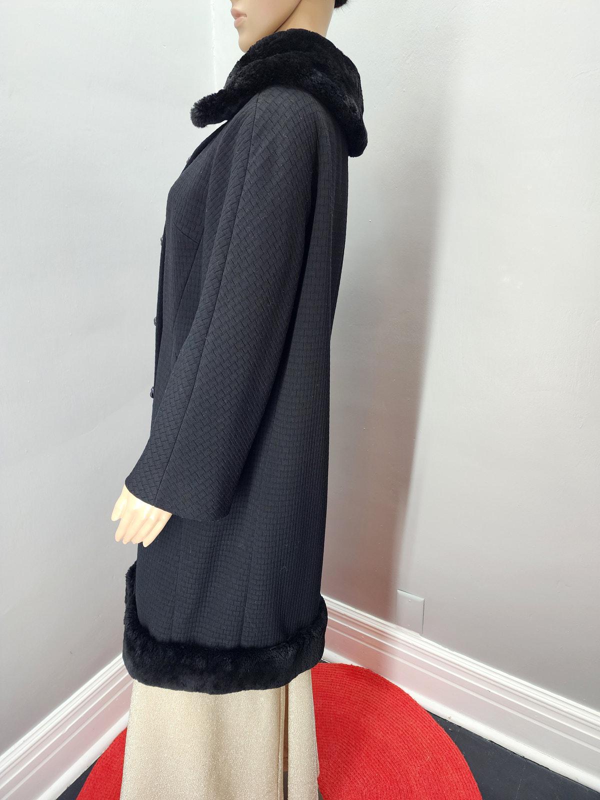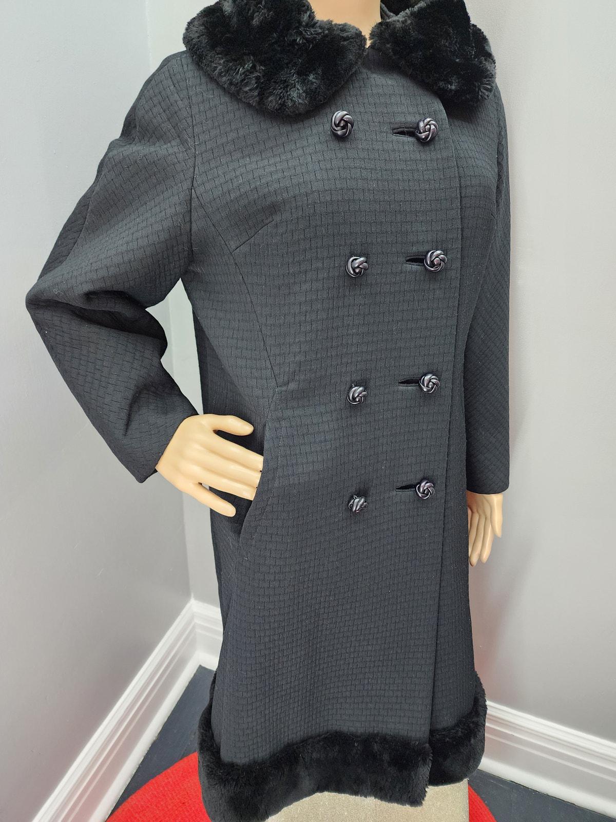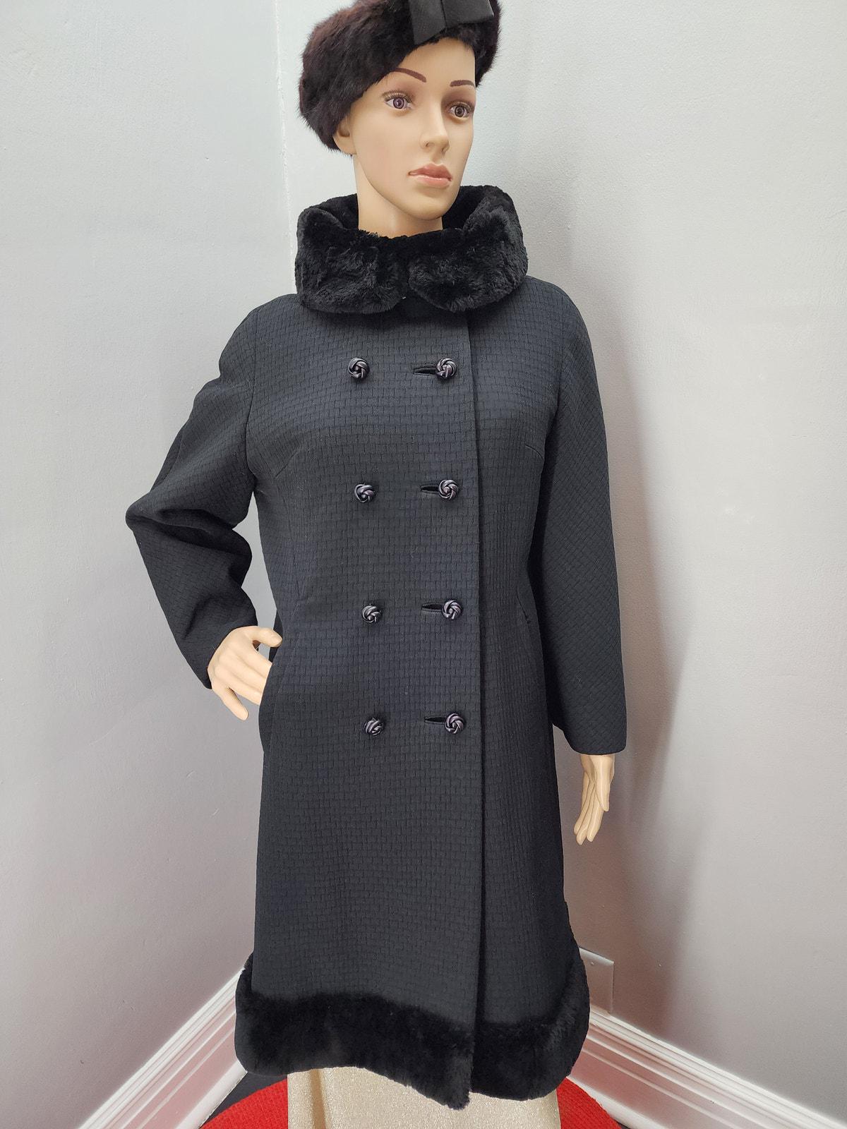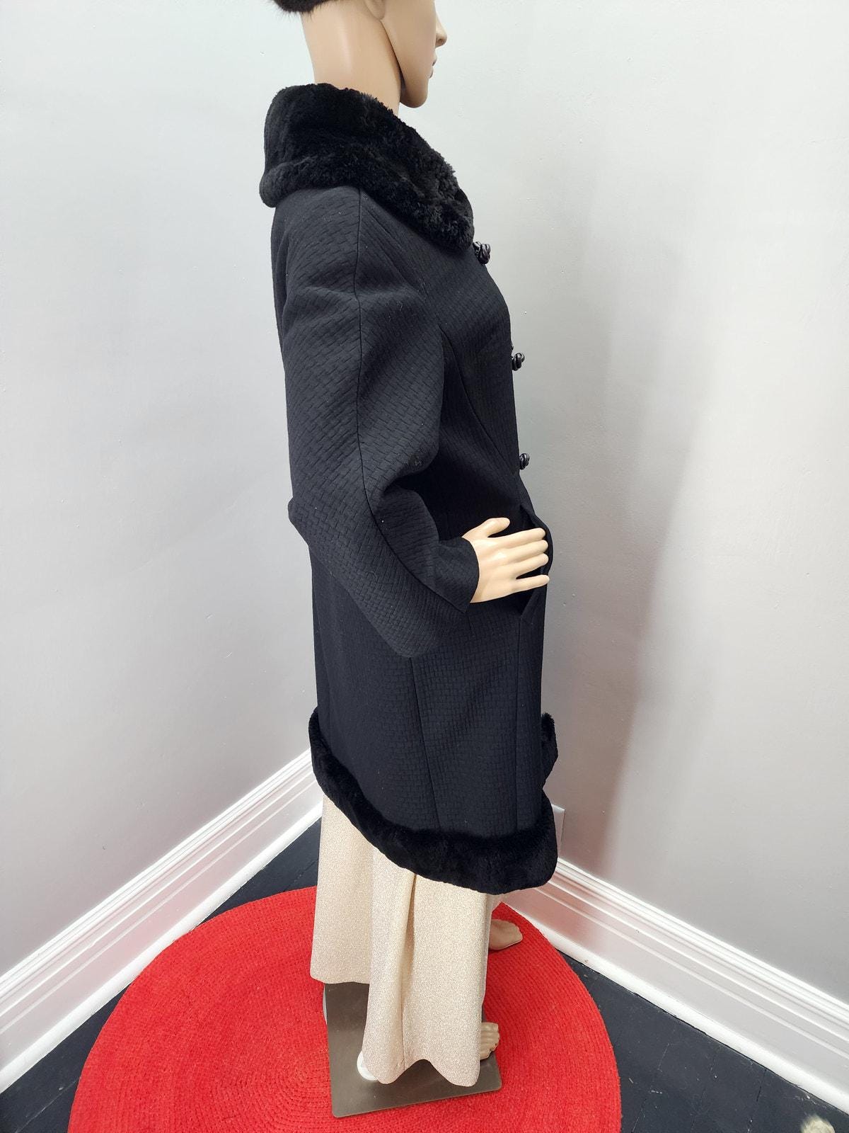 60s Vintage Textured Wool Coat with Fur Collar and Hem - M