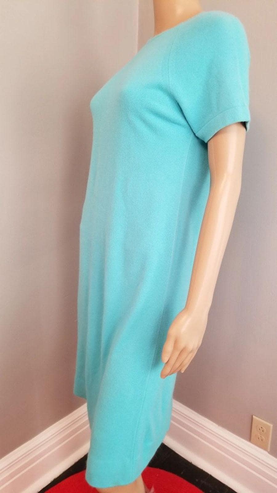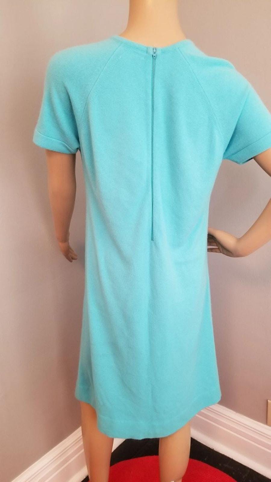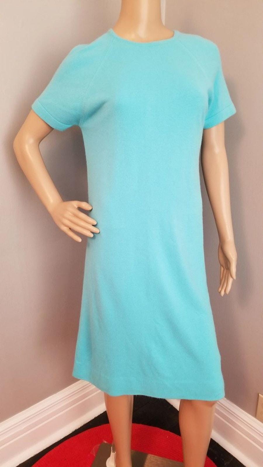 60s Vintage Robin Egg Blue Sweater Shift Dress - M/L