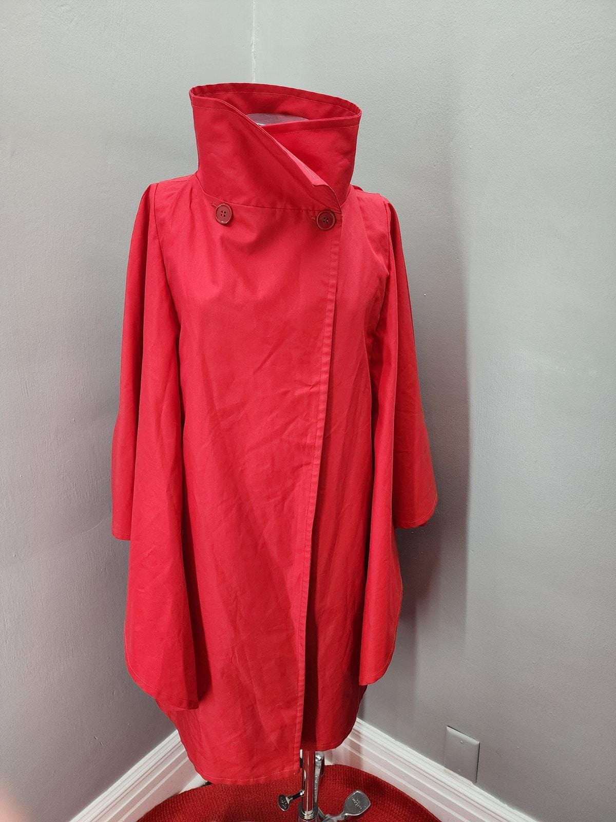 70s Vintage Red Angel Sleeve Rain Coat / Overcoat - L