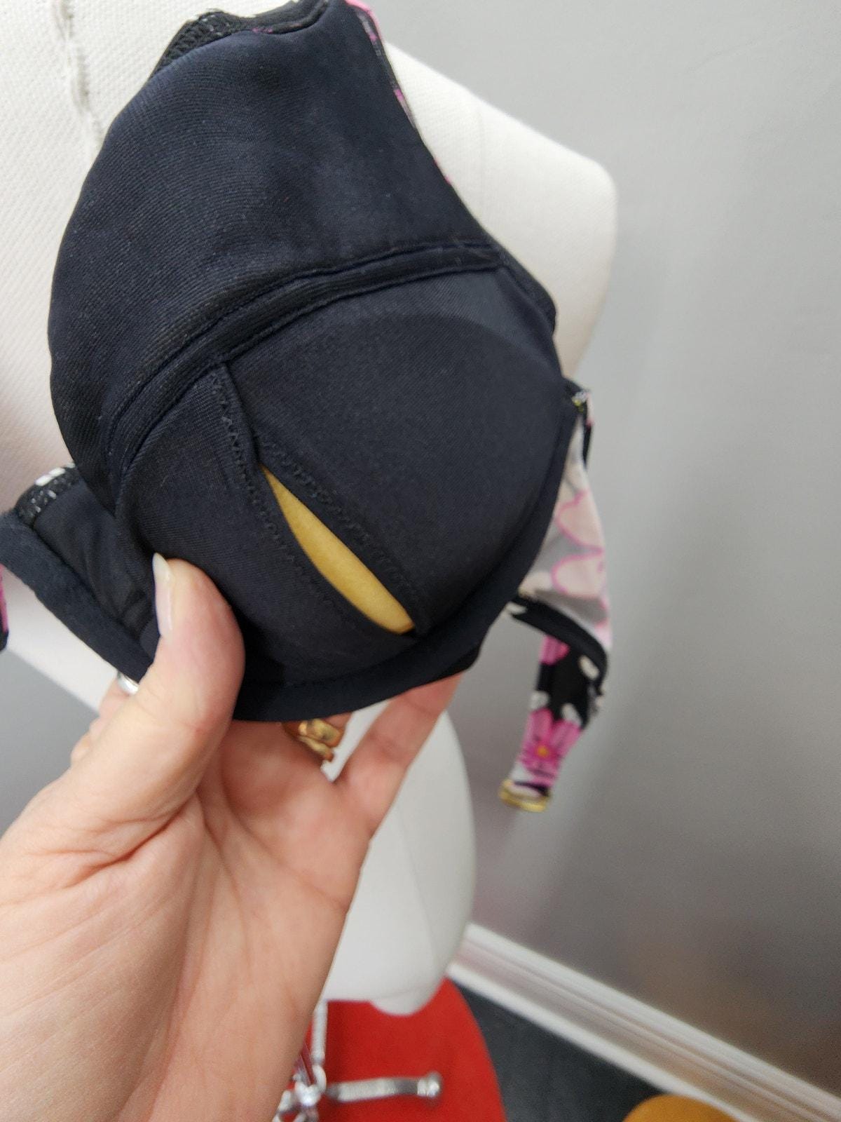 Halter underwire push-up top with accessible padding, hook closures. Tag removed.