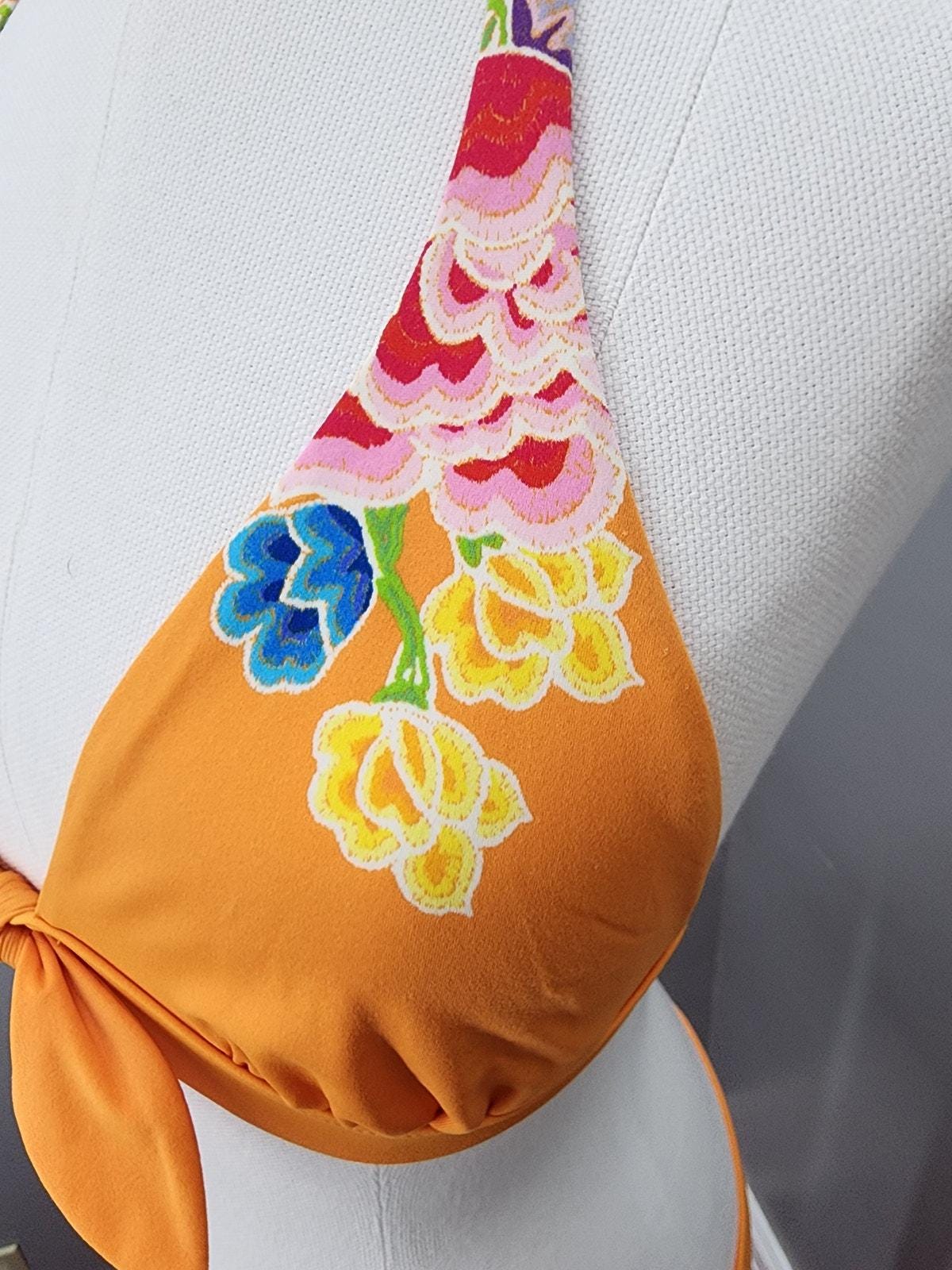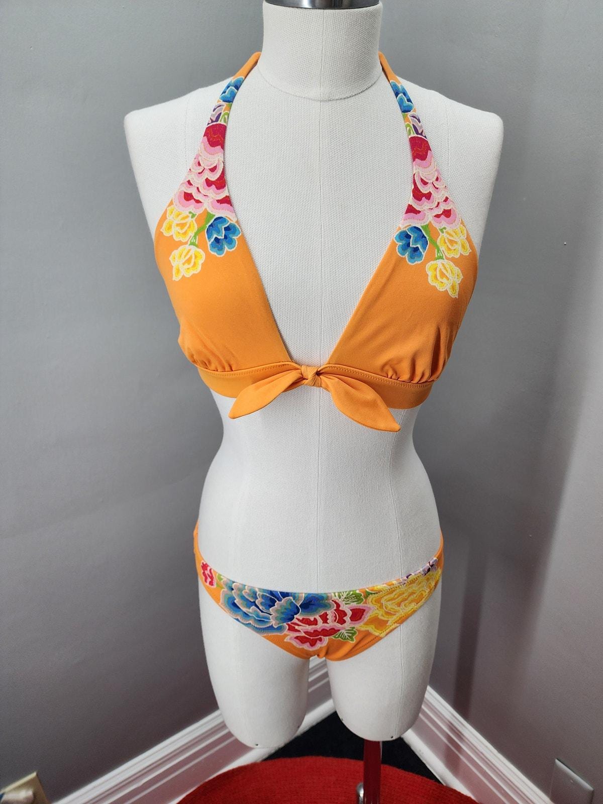 Y2K Victoria's Secret Orange with Floral Pattern Bikini NOS - M