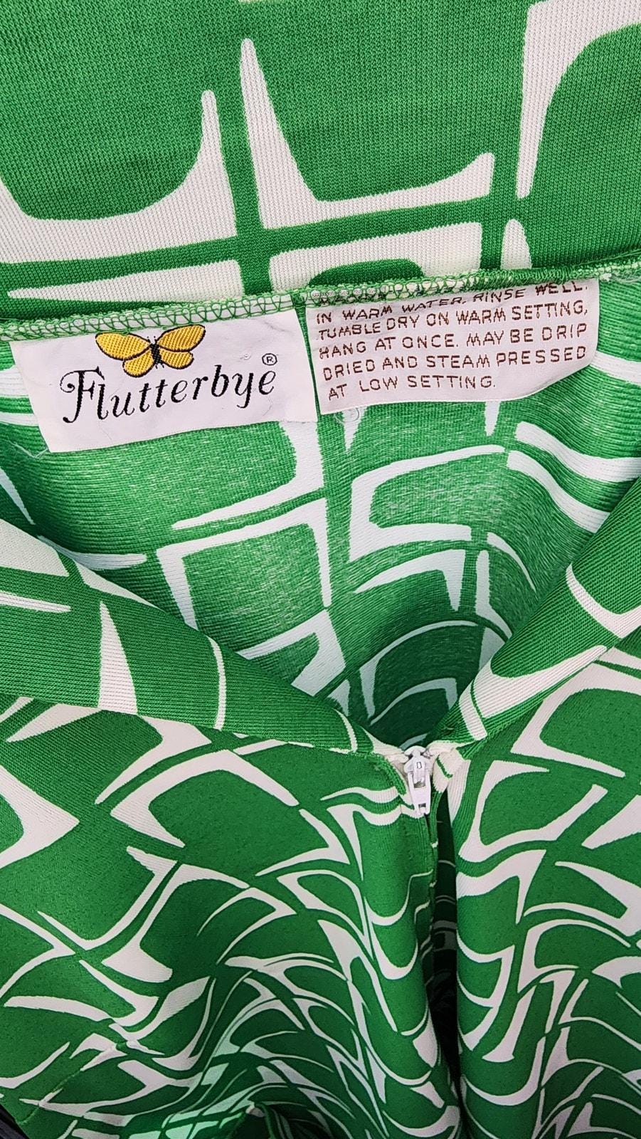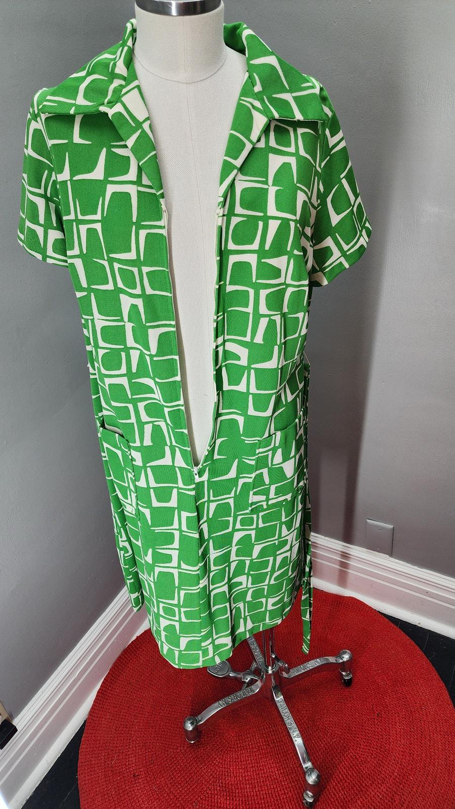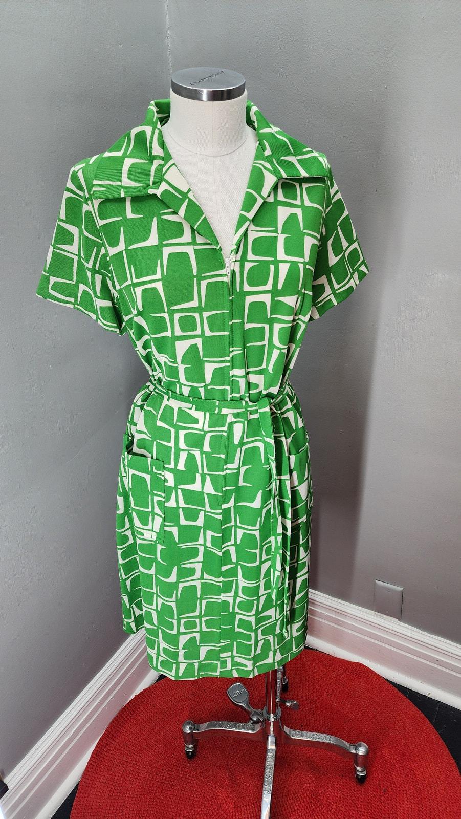 70s Vintage Flutterbye Geometric Front Zip Day Dress - L