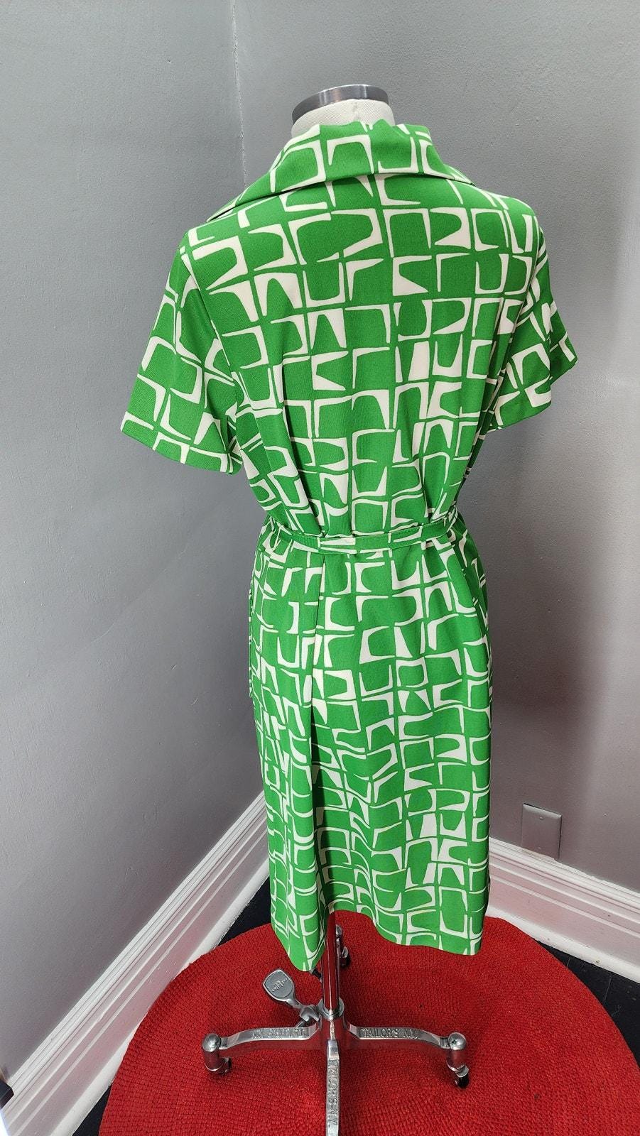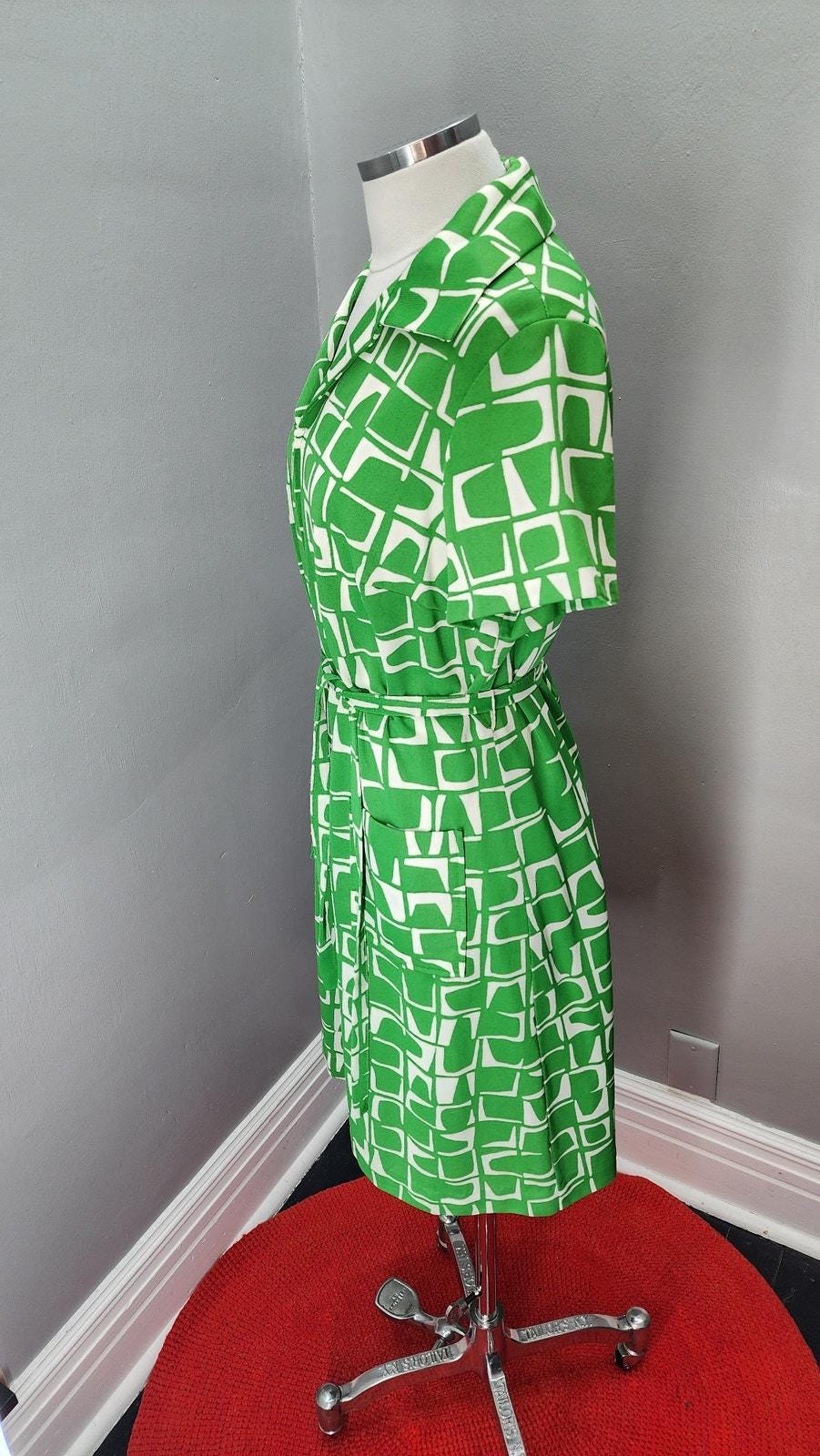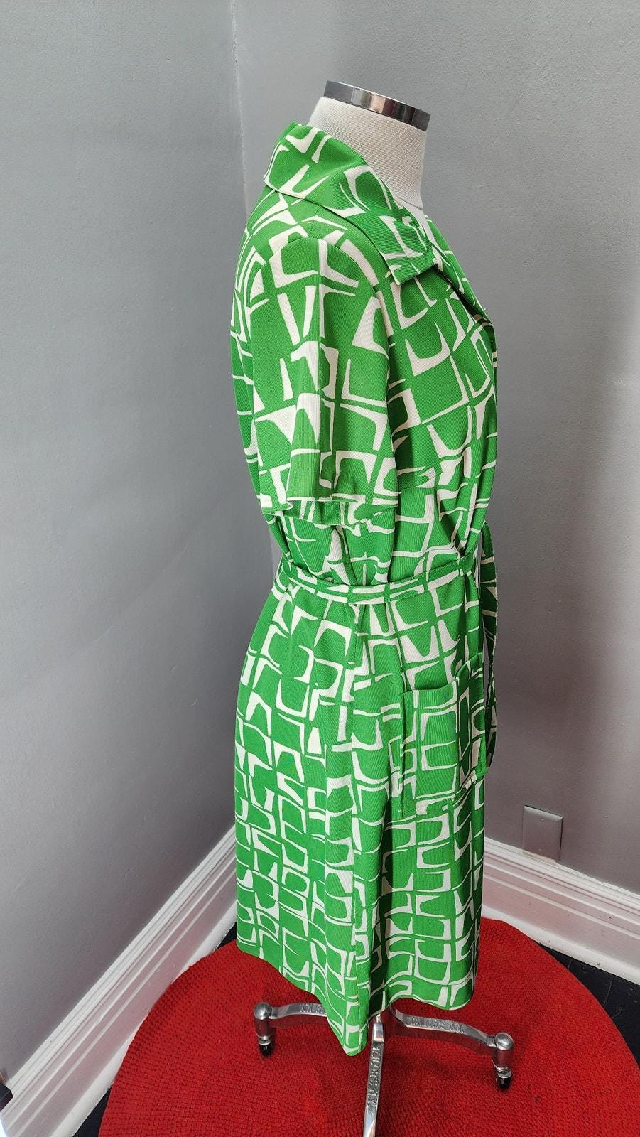 70s Vintage Flutterbye Geometric Front Zip Day Dress - L