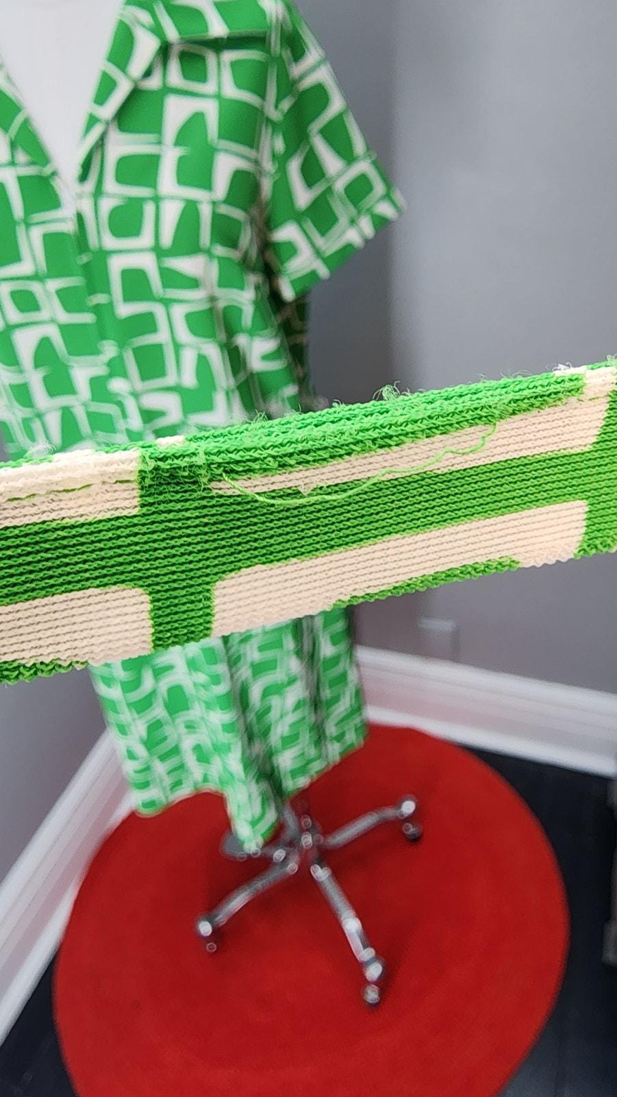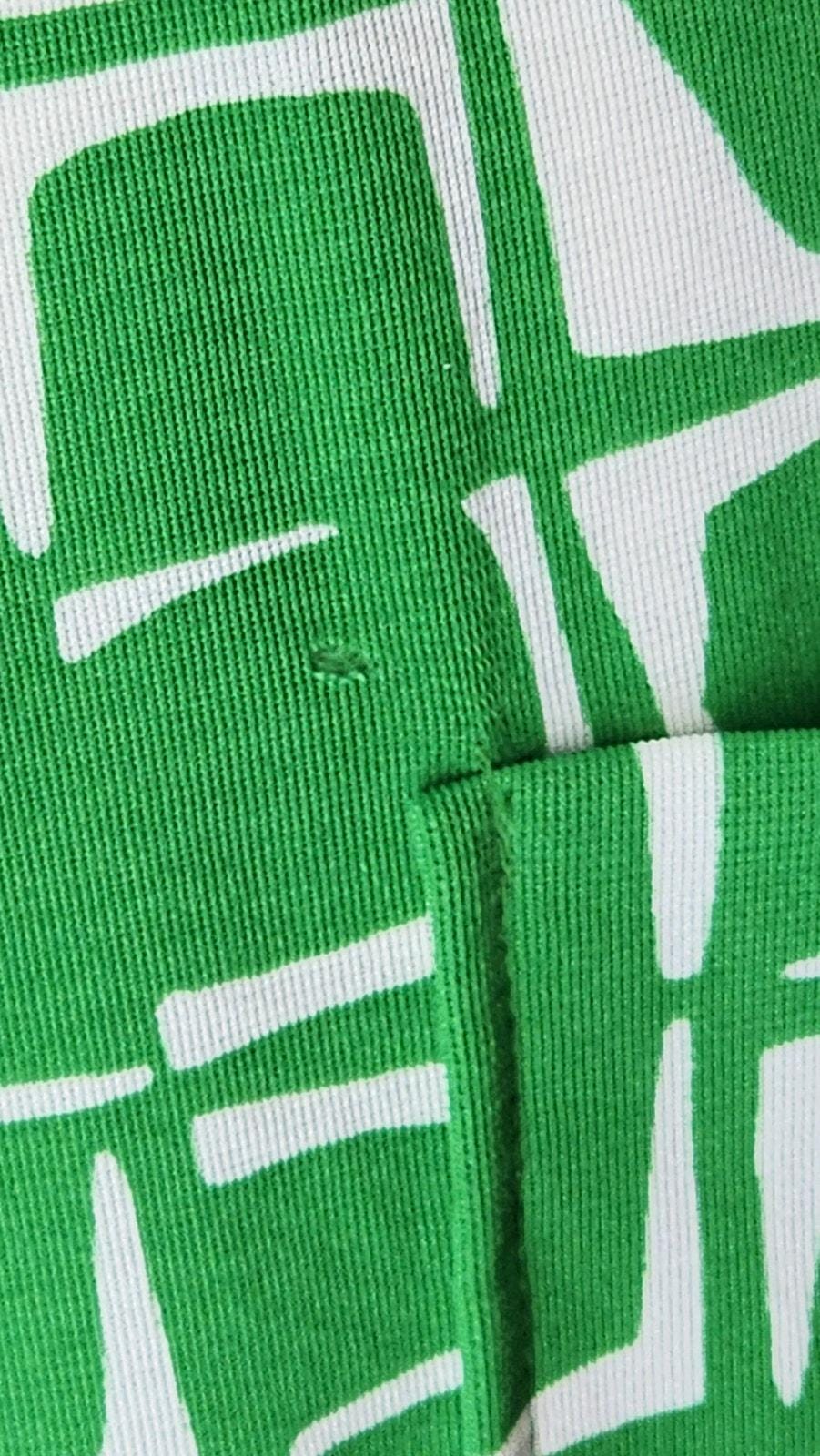 Size and material tags are missing. Polyester