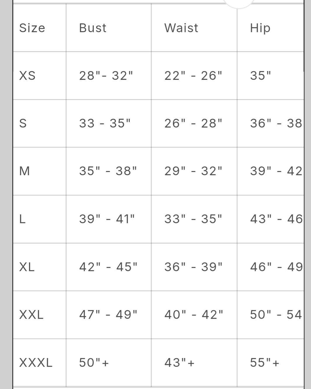 Listed measurements/sizes are for the item, not your body—leave room for comfort!
