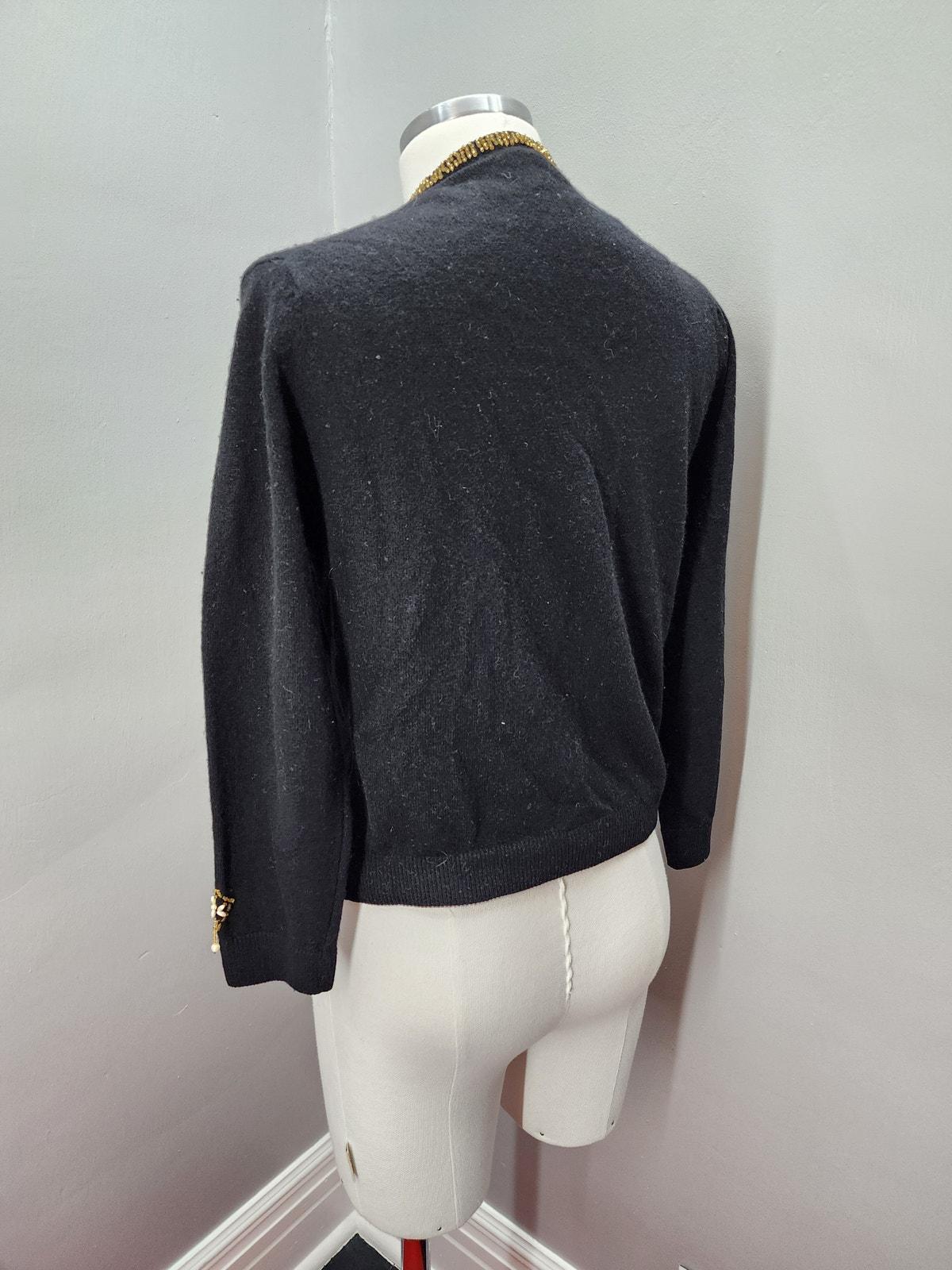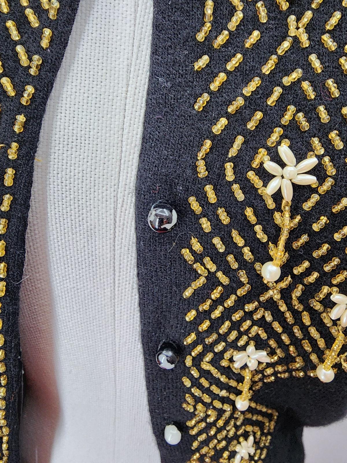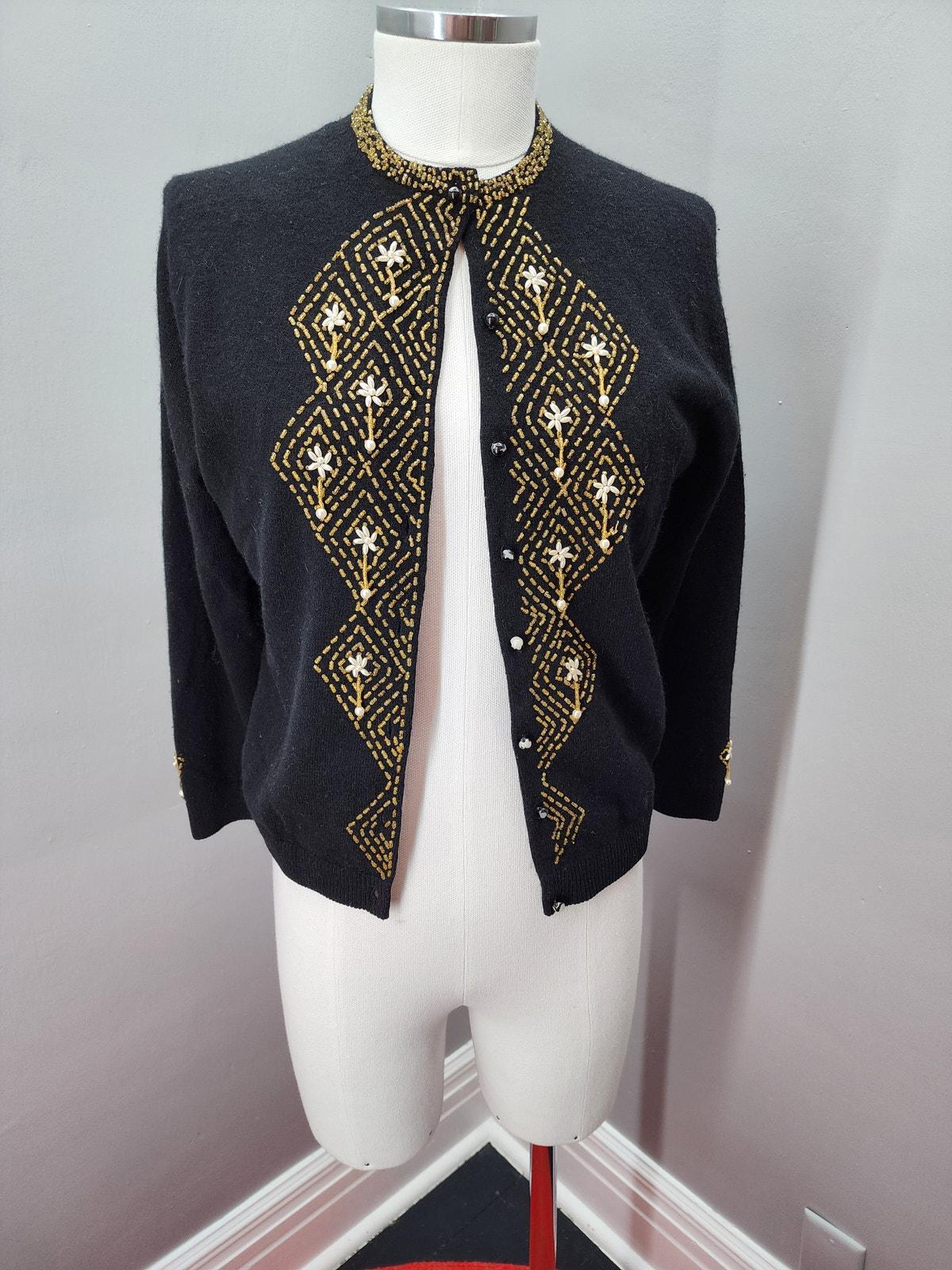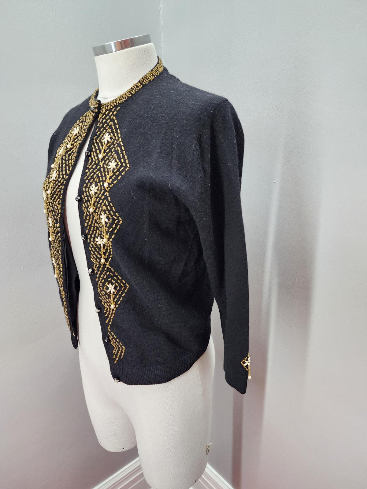 50s Vintage Marchessa Black Beaded Cardigan - M