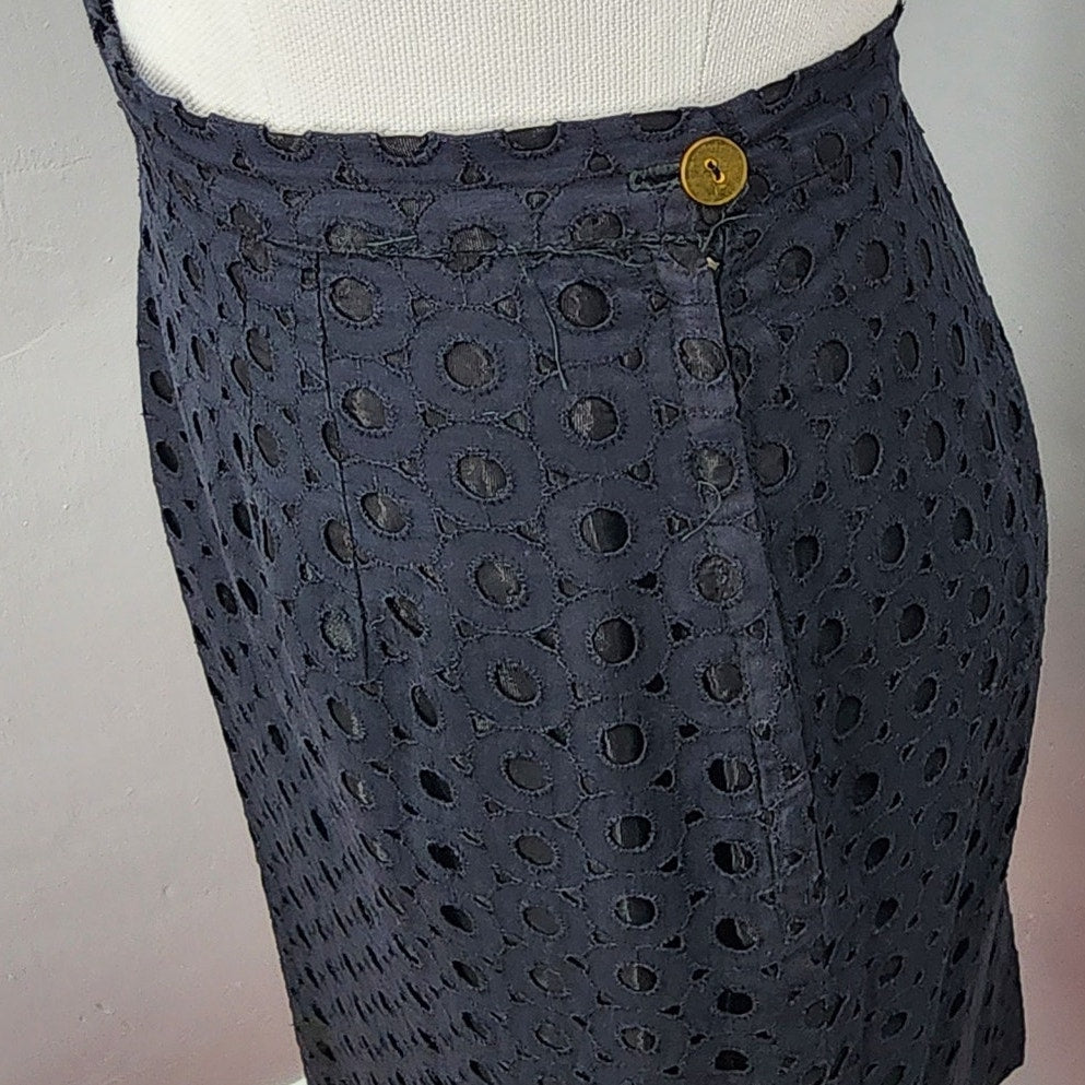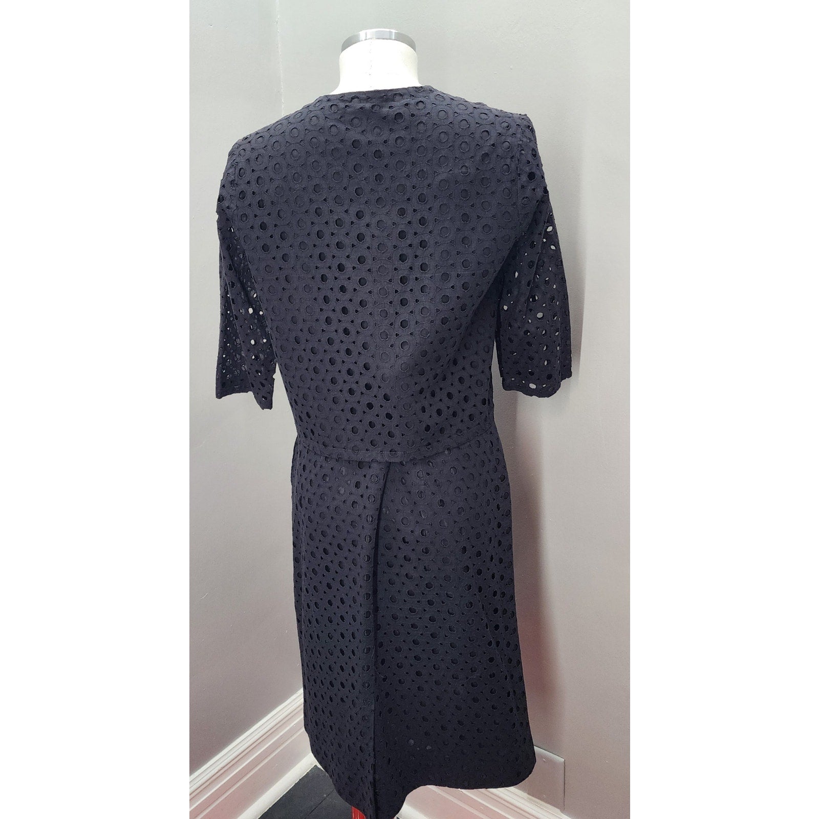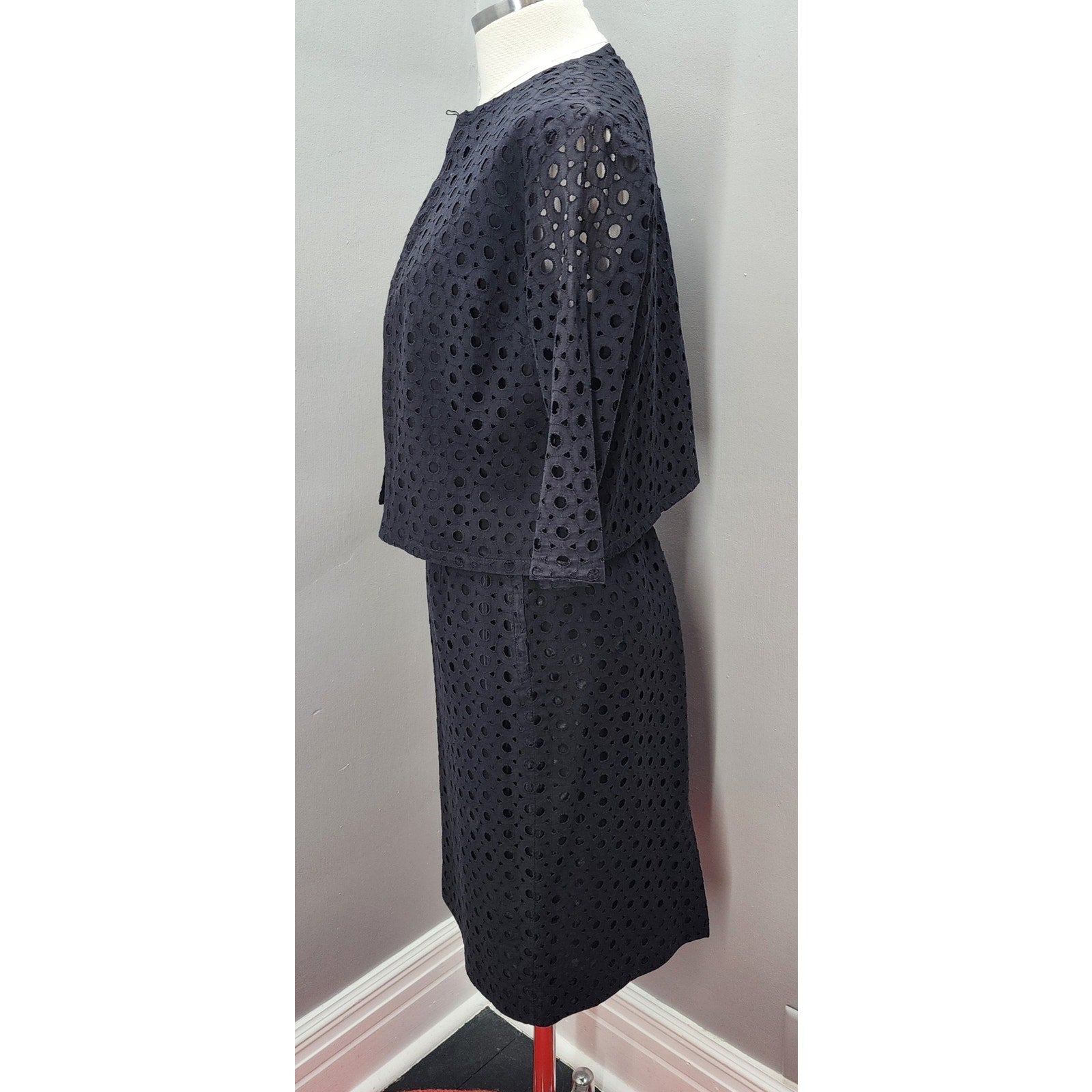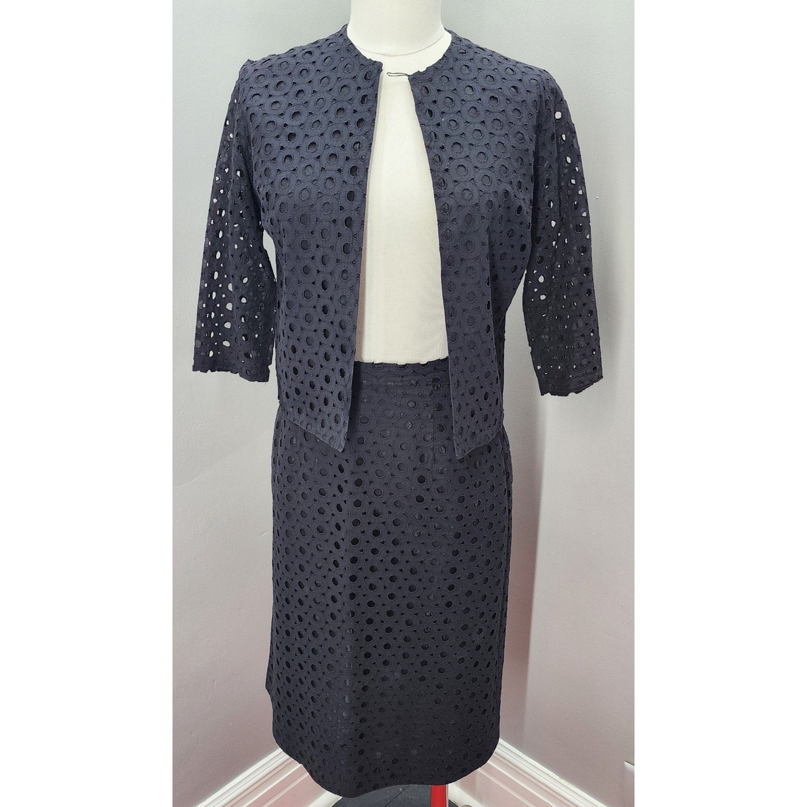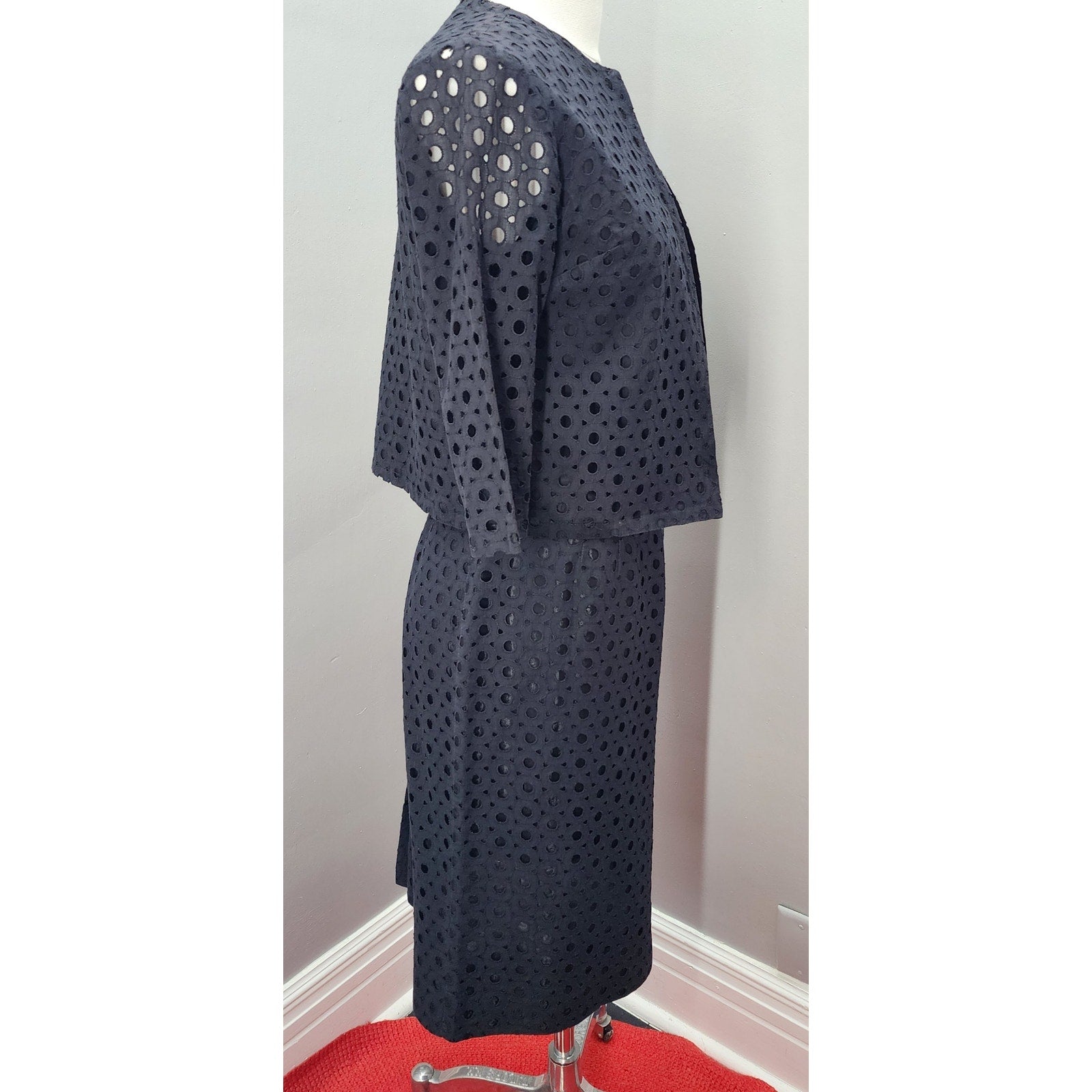 50s Vintage Black Eyelet or Broderie Anglaise Skirt Suit - S / M