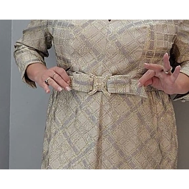 50s Vintage Gold & Silver Lame Cocktail Dress - 24 1/2 2XL