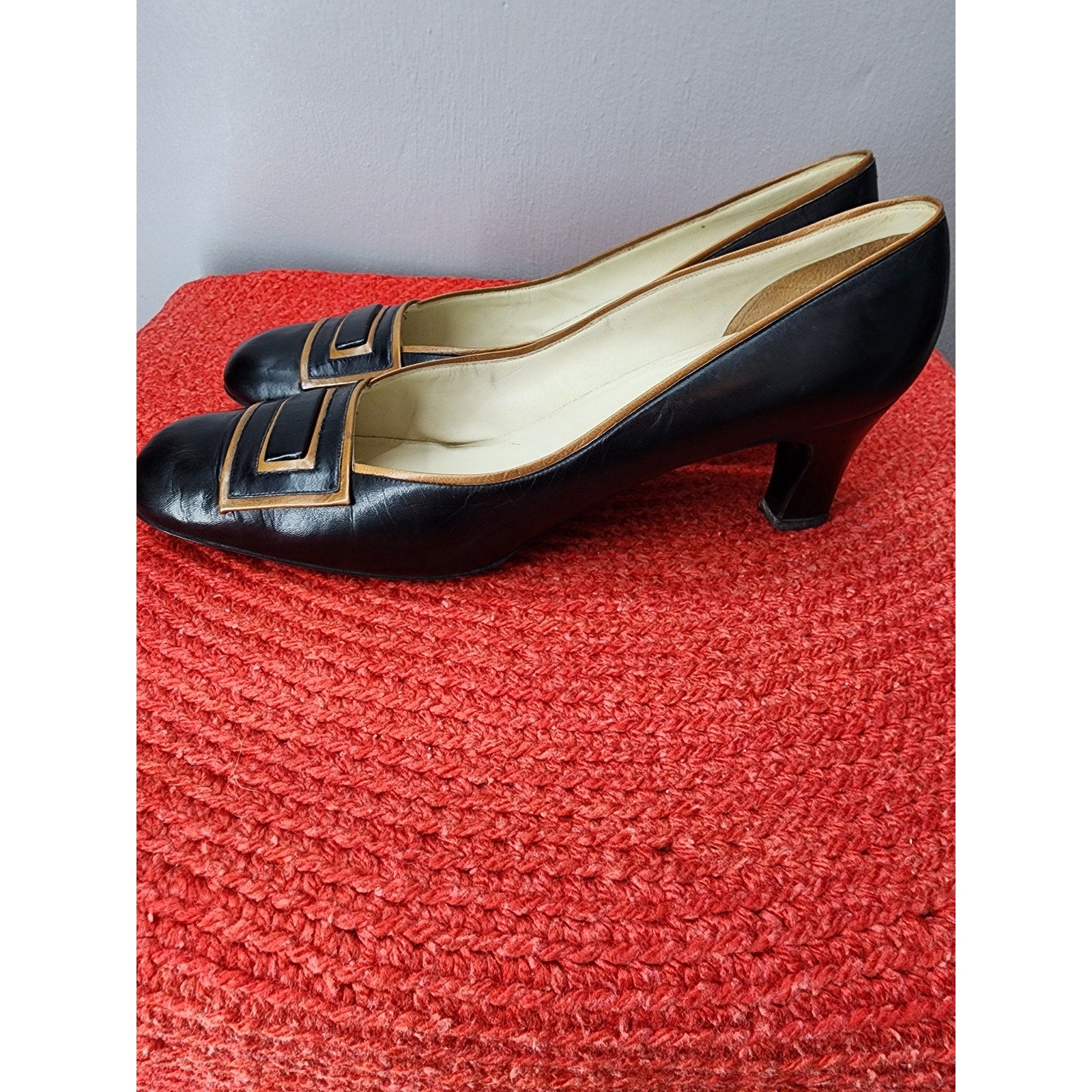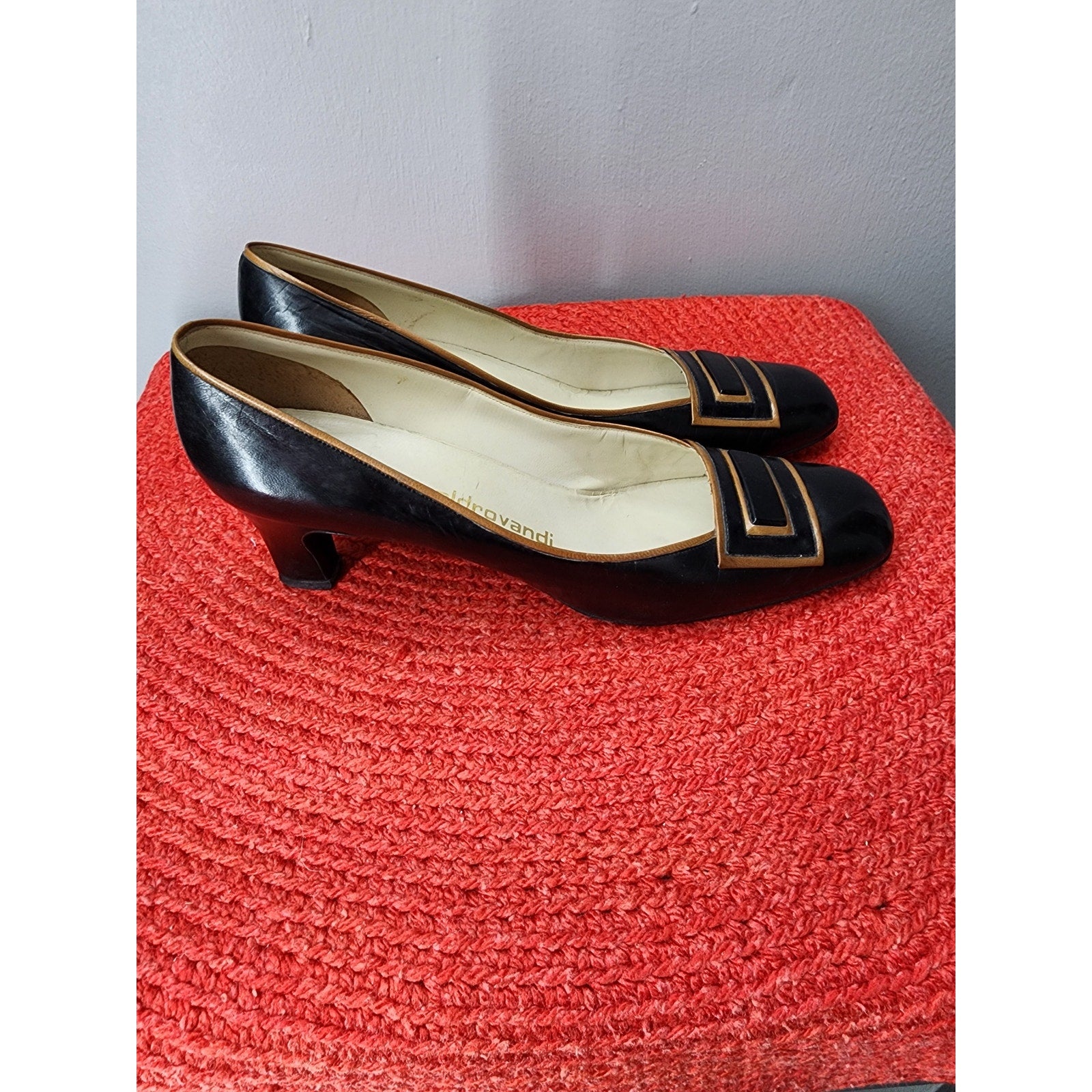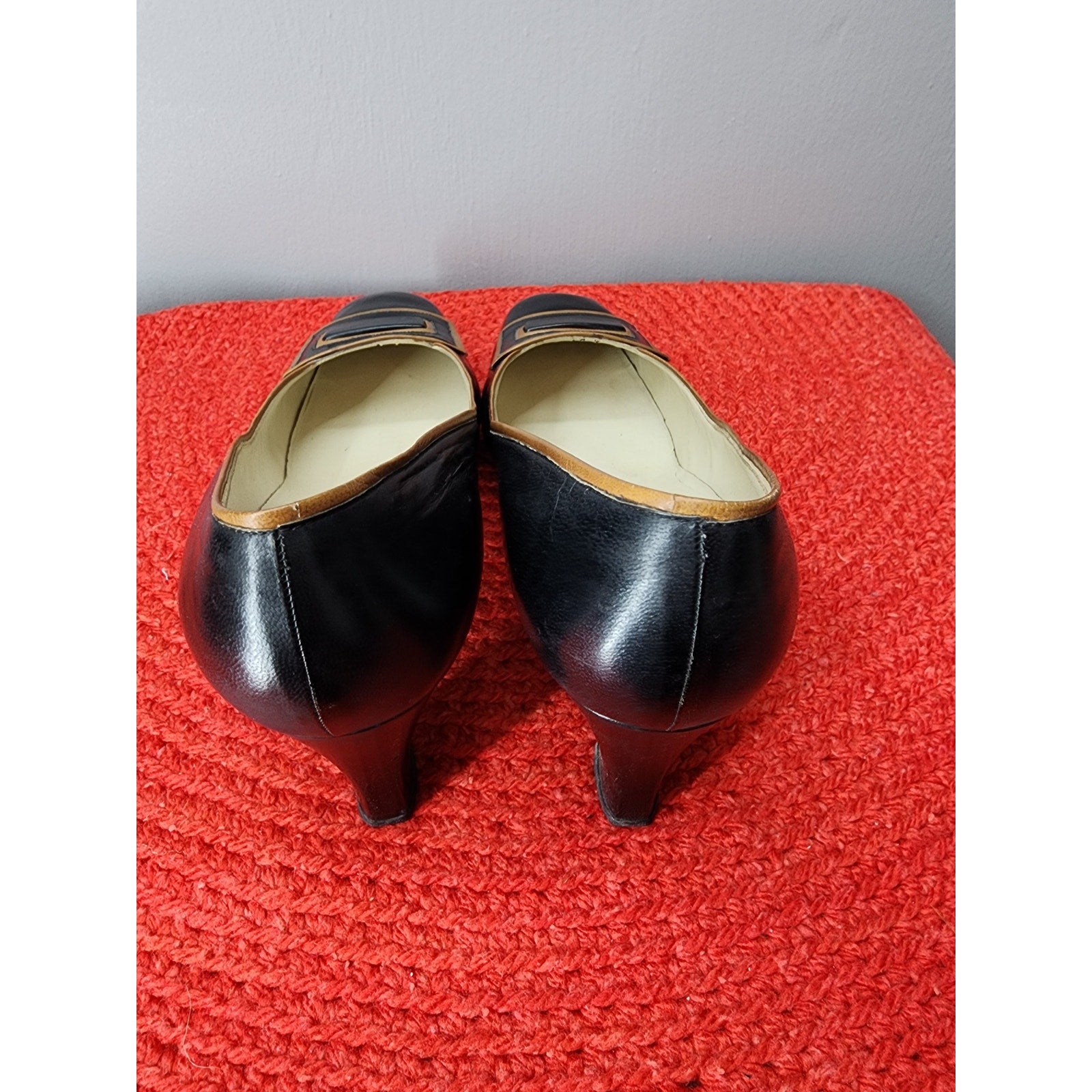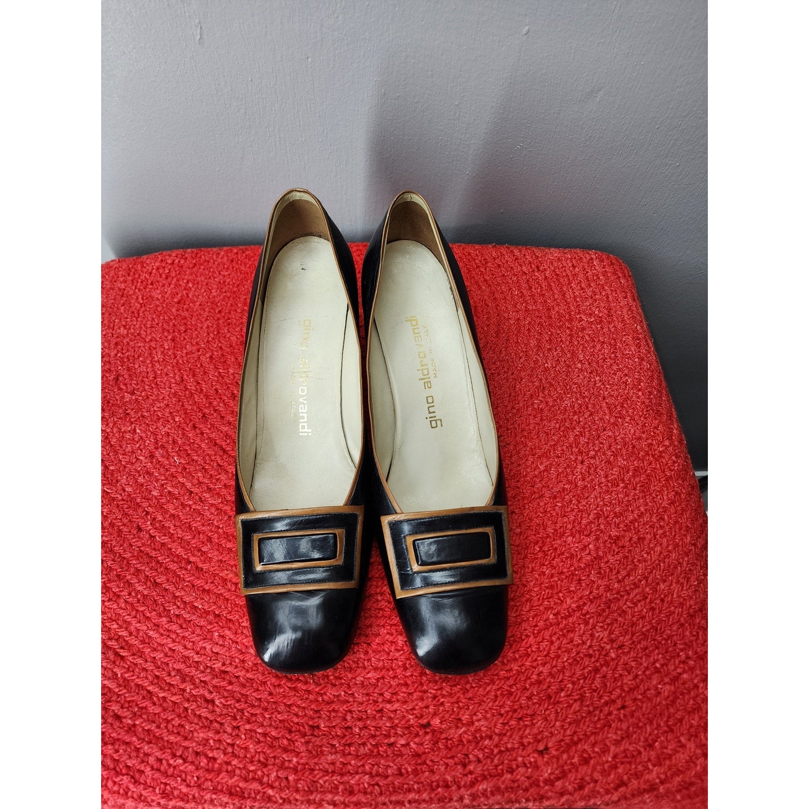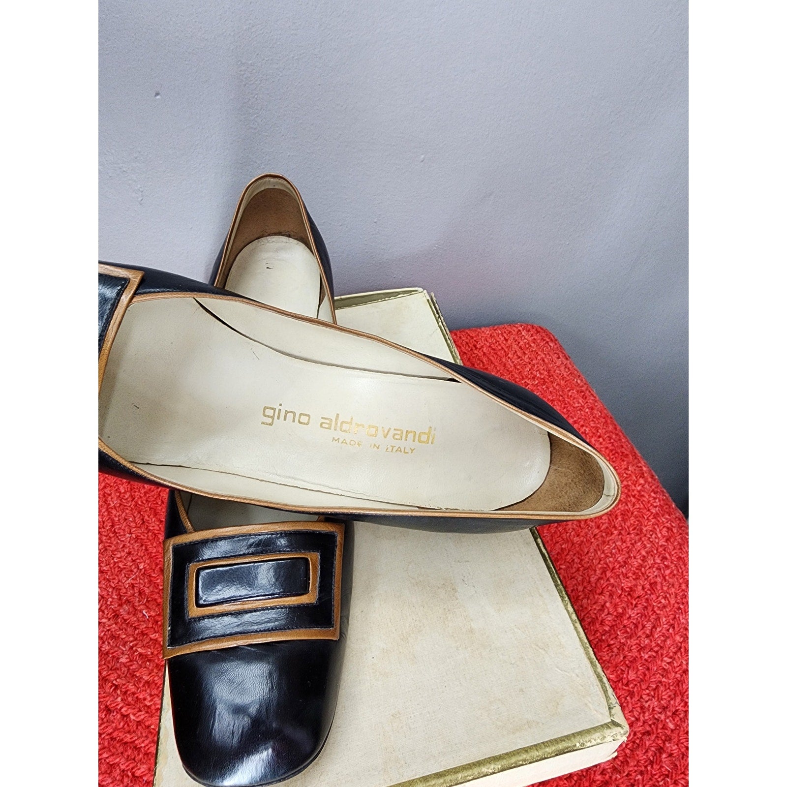 60s Vintage Aldrovandi Leather Pumps, Black w/ Brown Detail. Italy - 40 (8.5 - 9)
