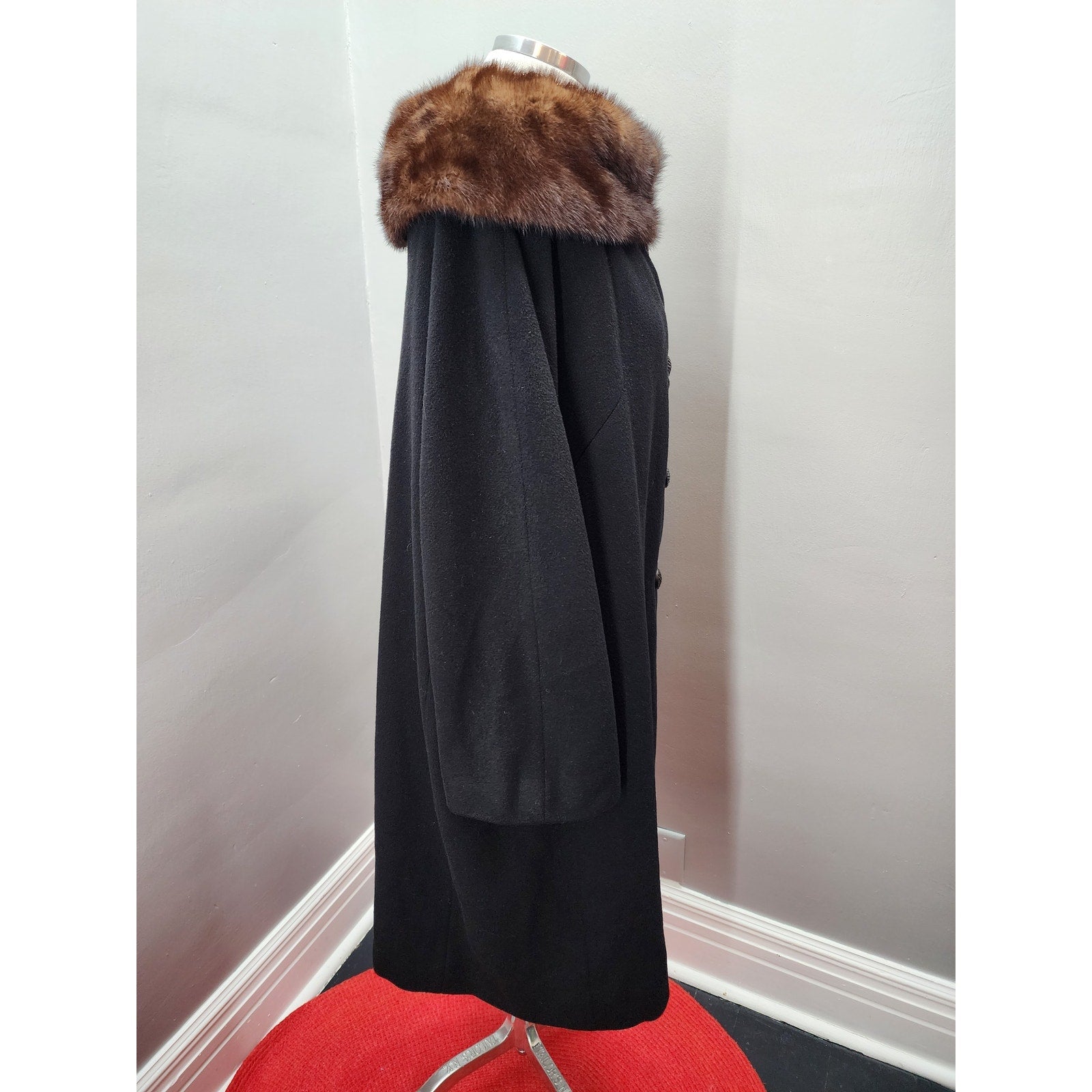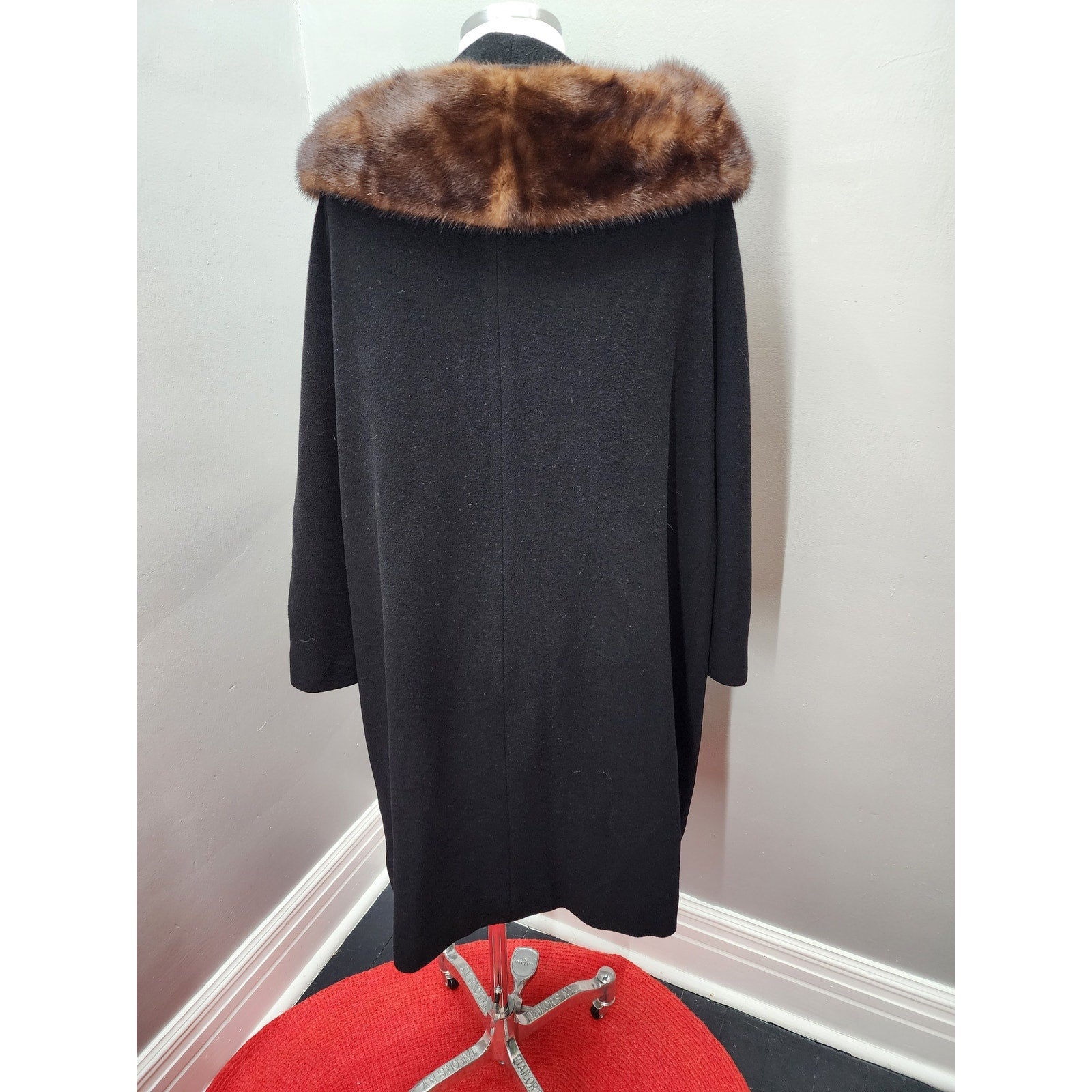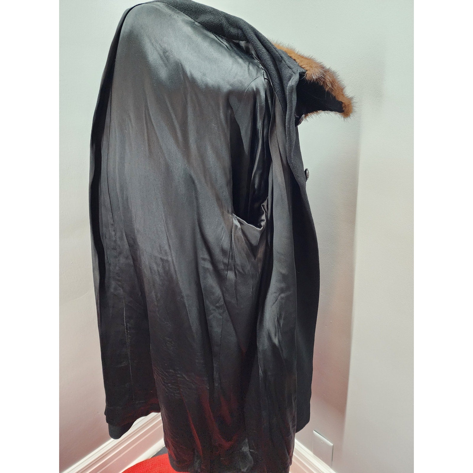 60s Vintage Black Cashmere Coat with Vintage Fur Collar - XXL