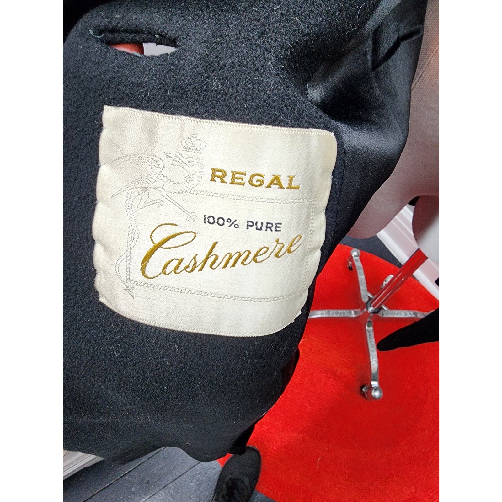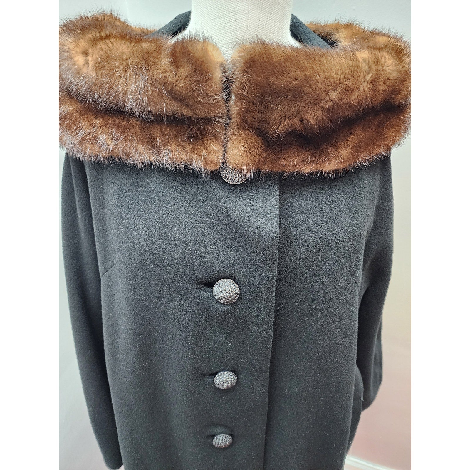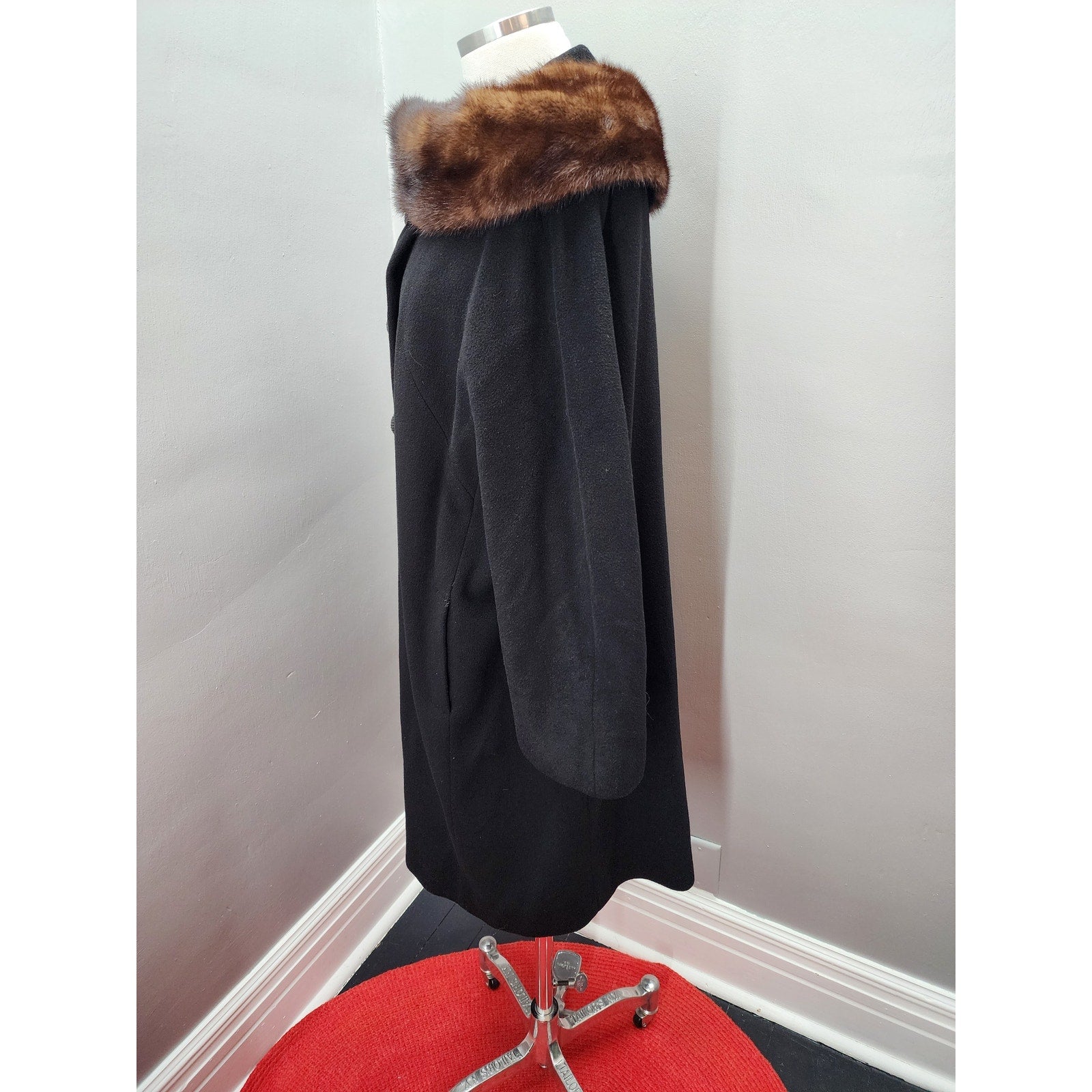 60s Vintage Black Cashmere Coat with Vintage Fur Collar - XXL