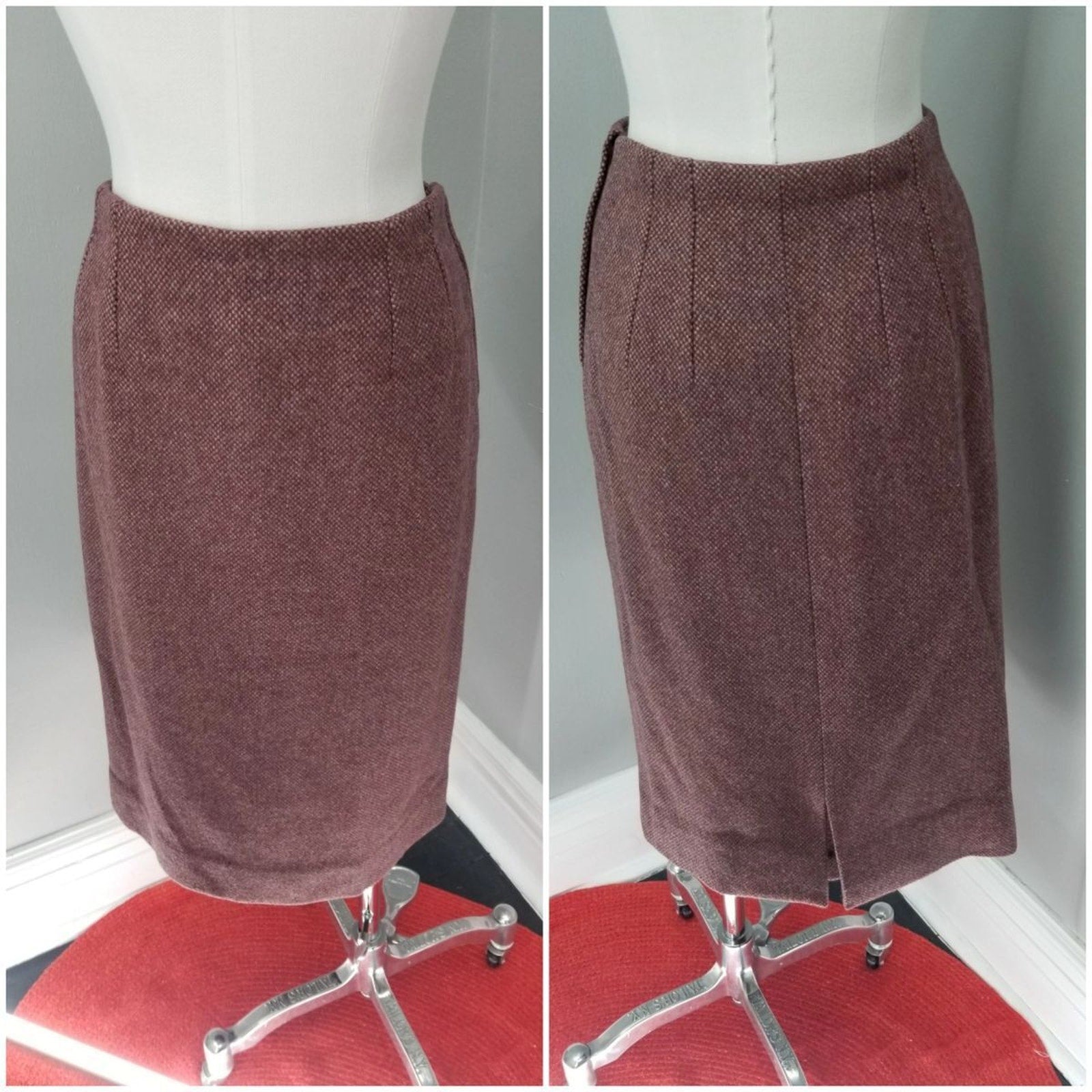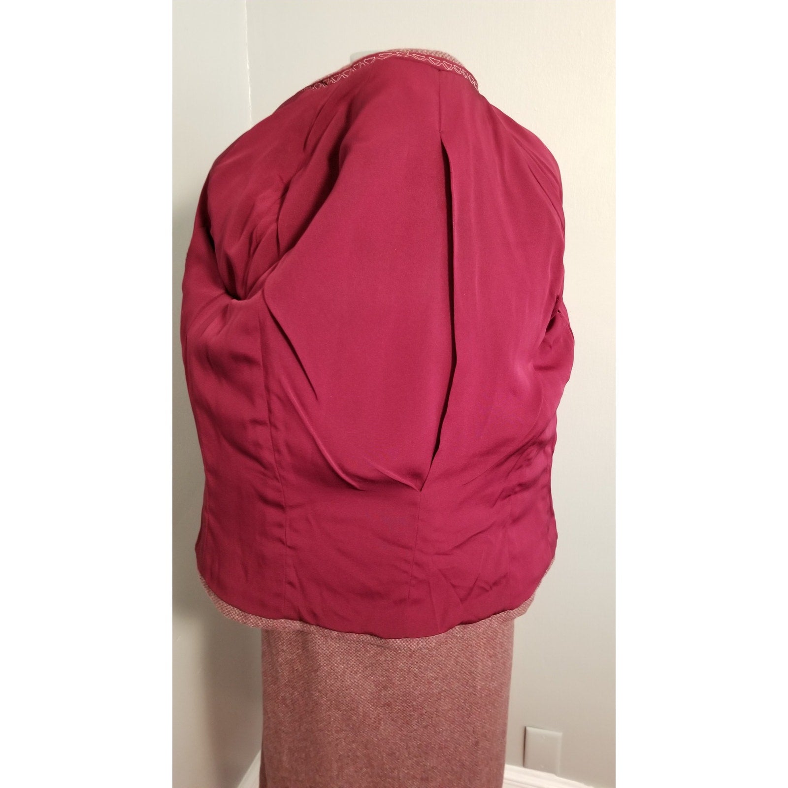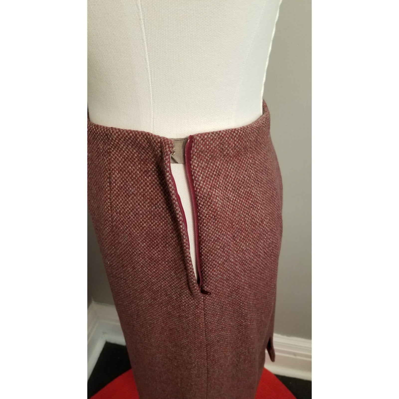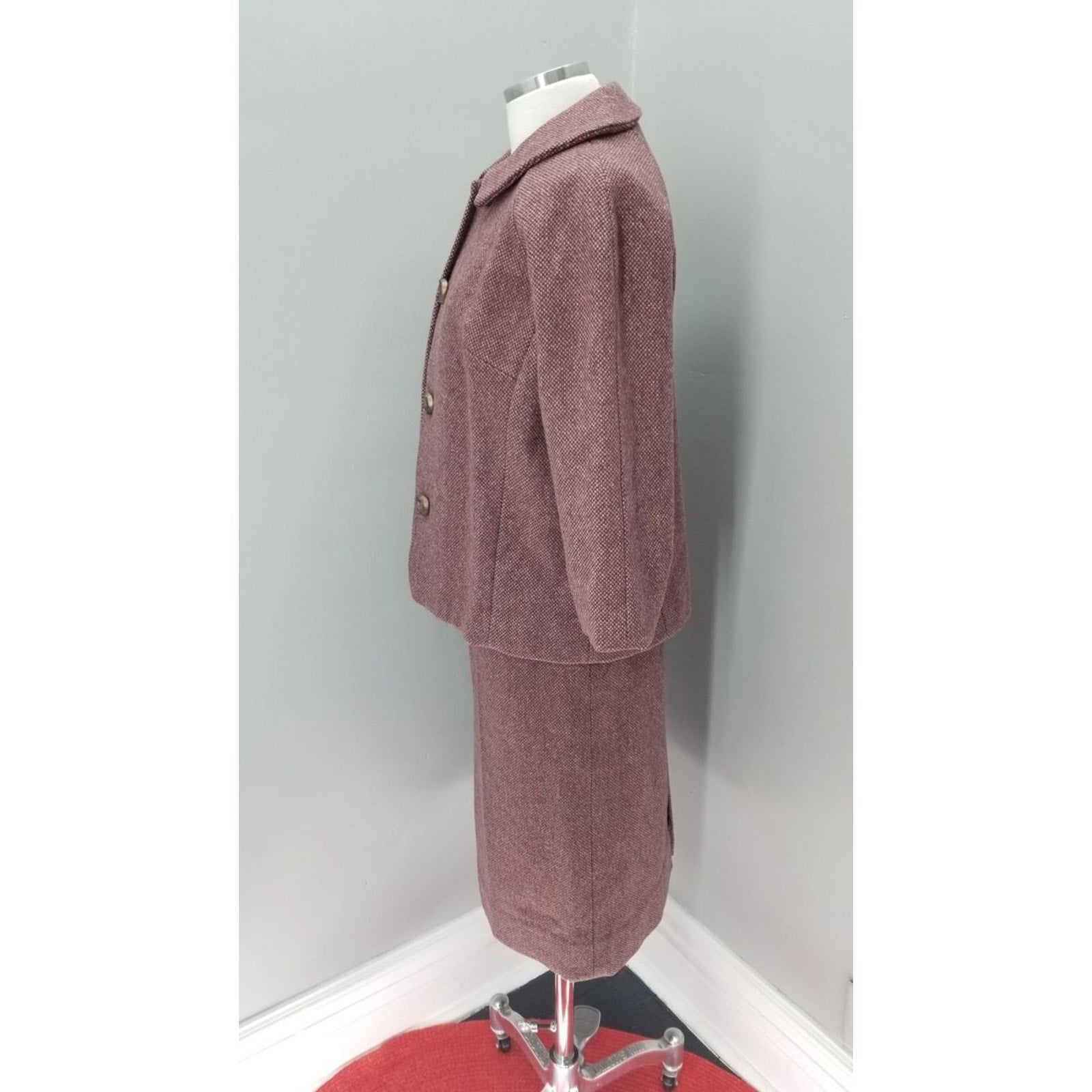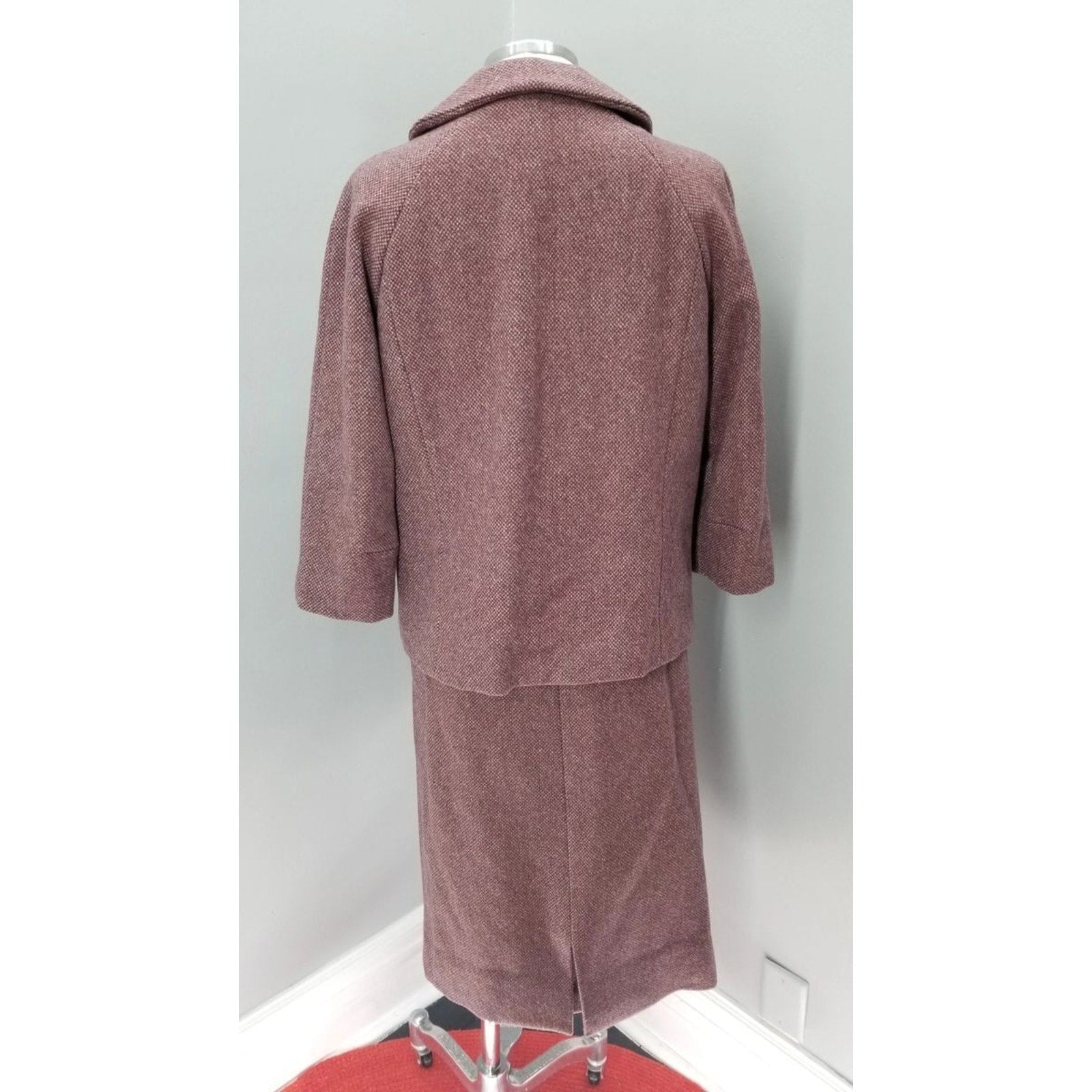 60s Vintage Burgundy Wool Blend Tailored Power Suit, Jacket & Skirt - XS