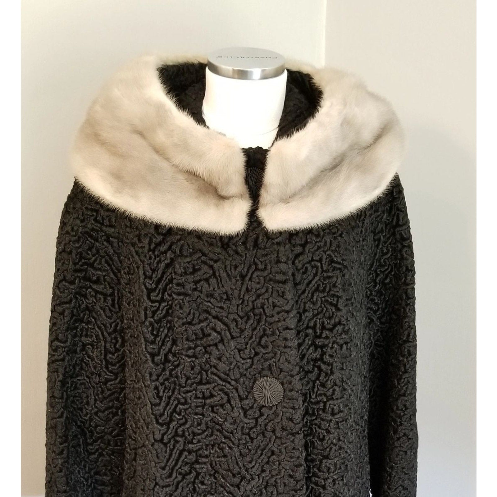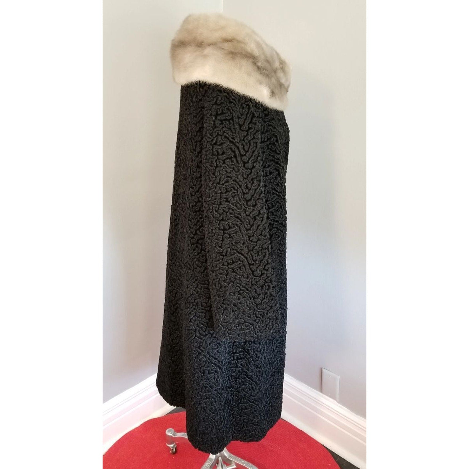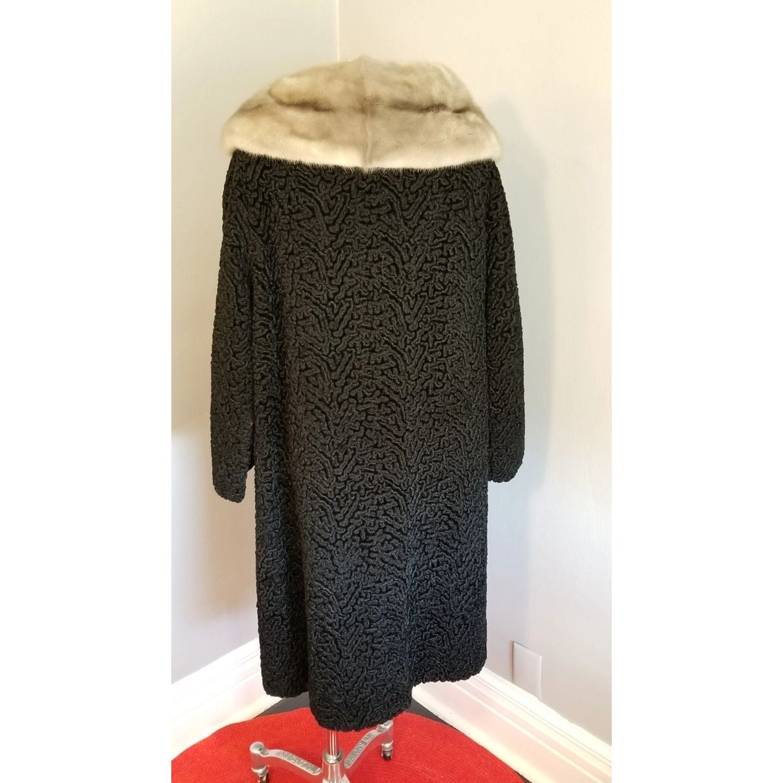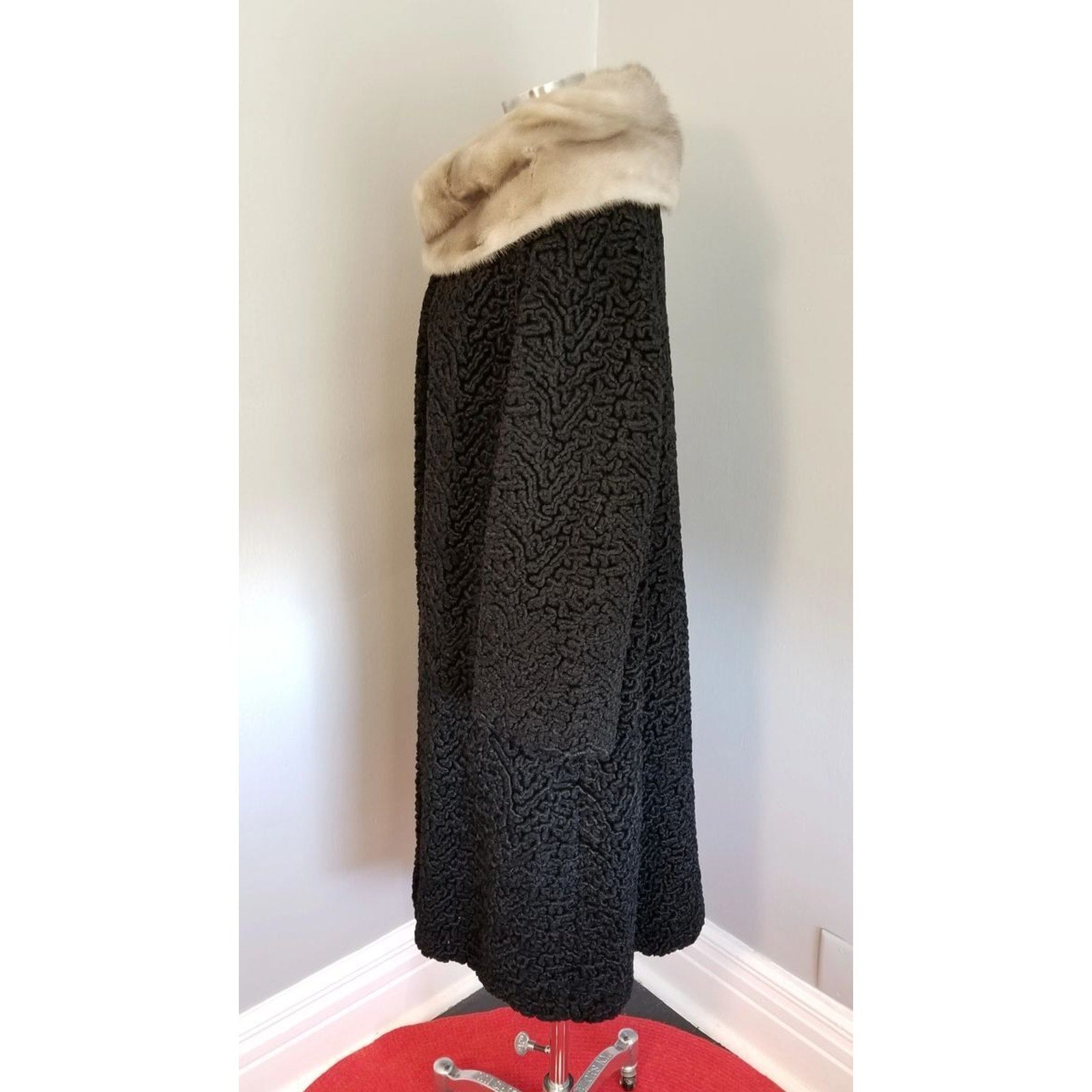 60s Vintage Faux Black Curly Lamb with Silver Mink Collar - XXL