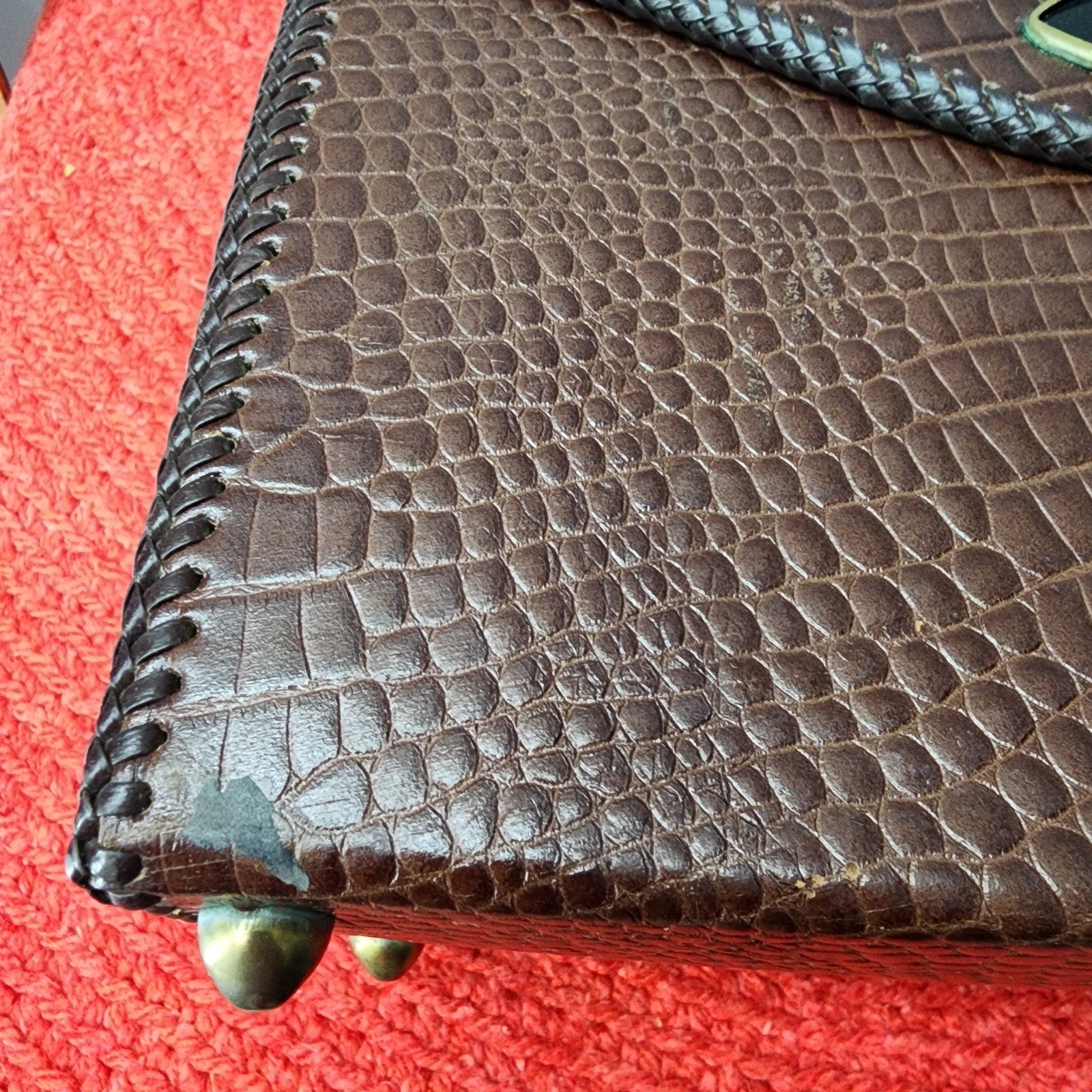 60s Vintage Faux Crocodile Box Purse with Lucite detail, Large