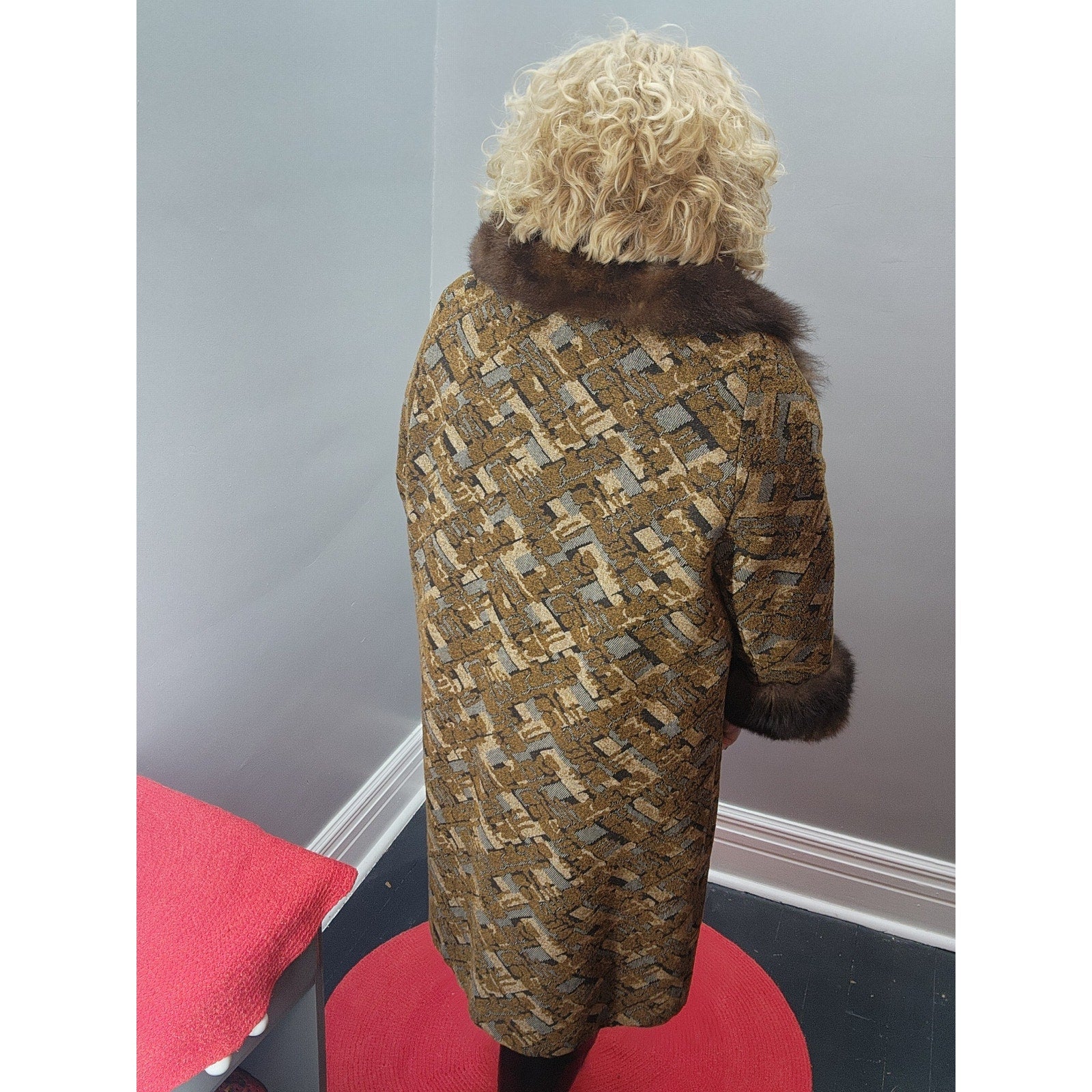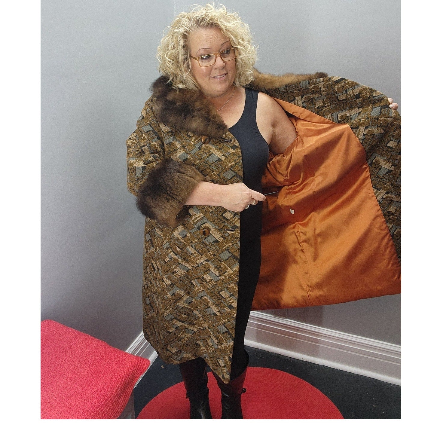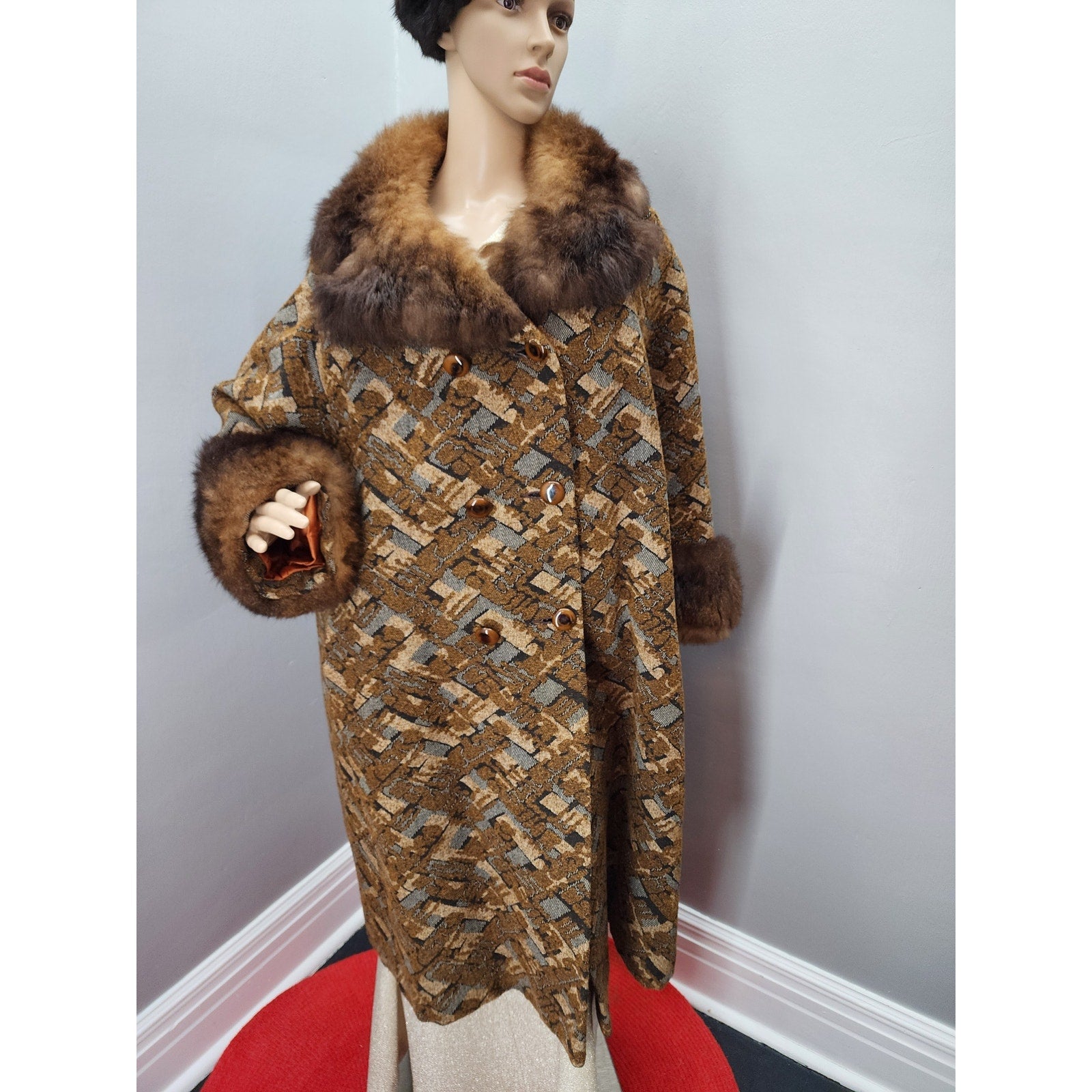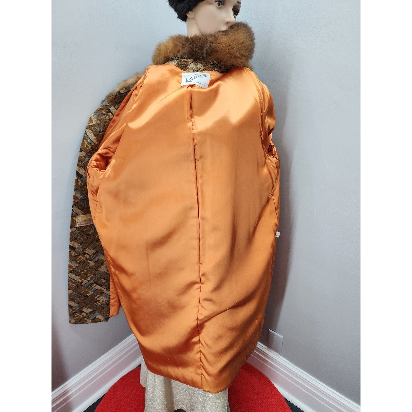 60s Vintage Kalin's (Holly Classic)Tapestry Coat w/Fur Trim - XXL