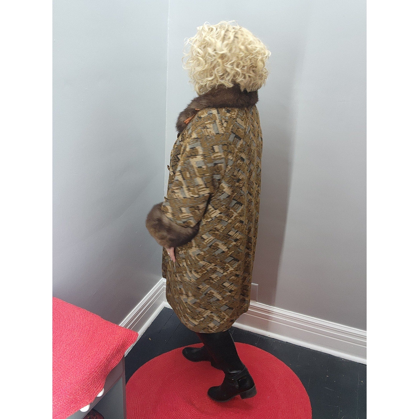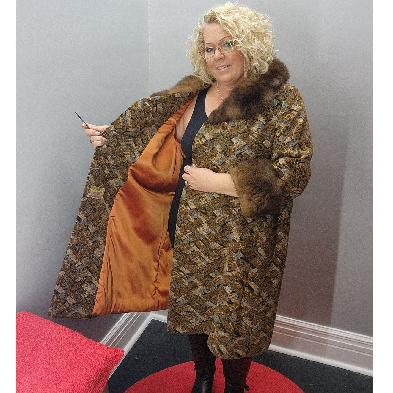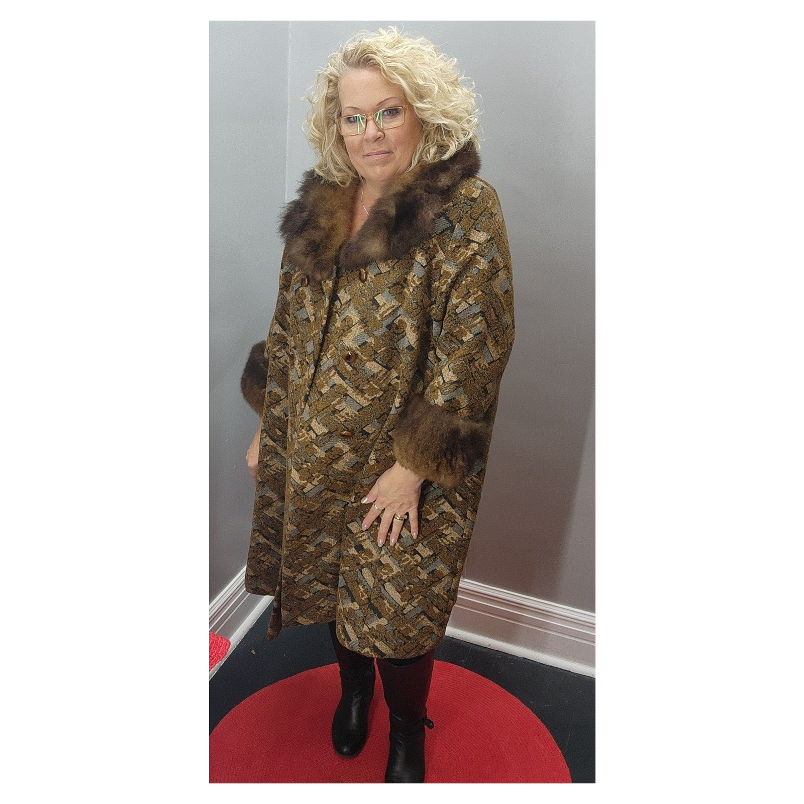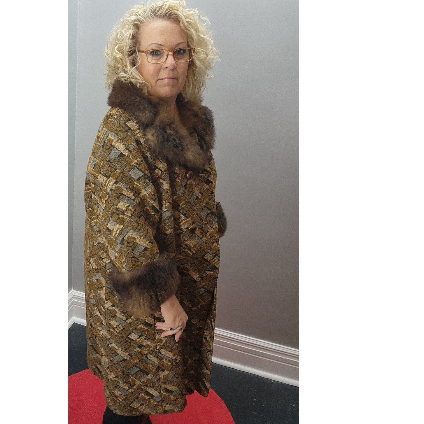 60s Vintage Kalin's (Holly Classic)Tapestry Coat w/Fur Trim - XXL
