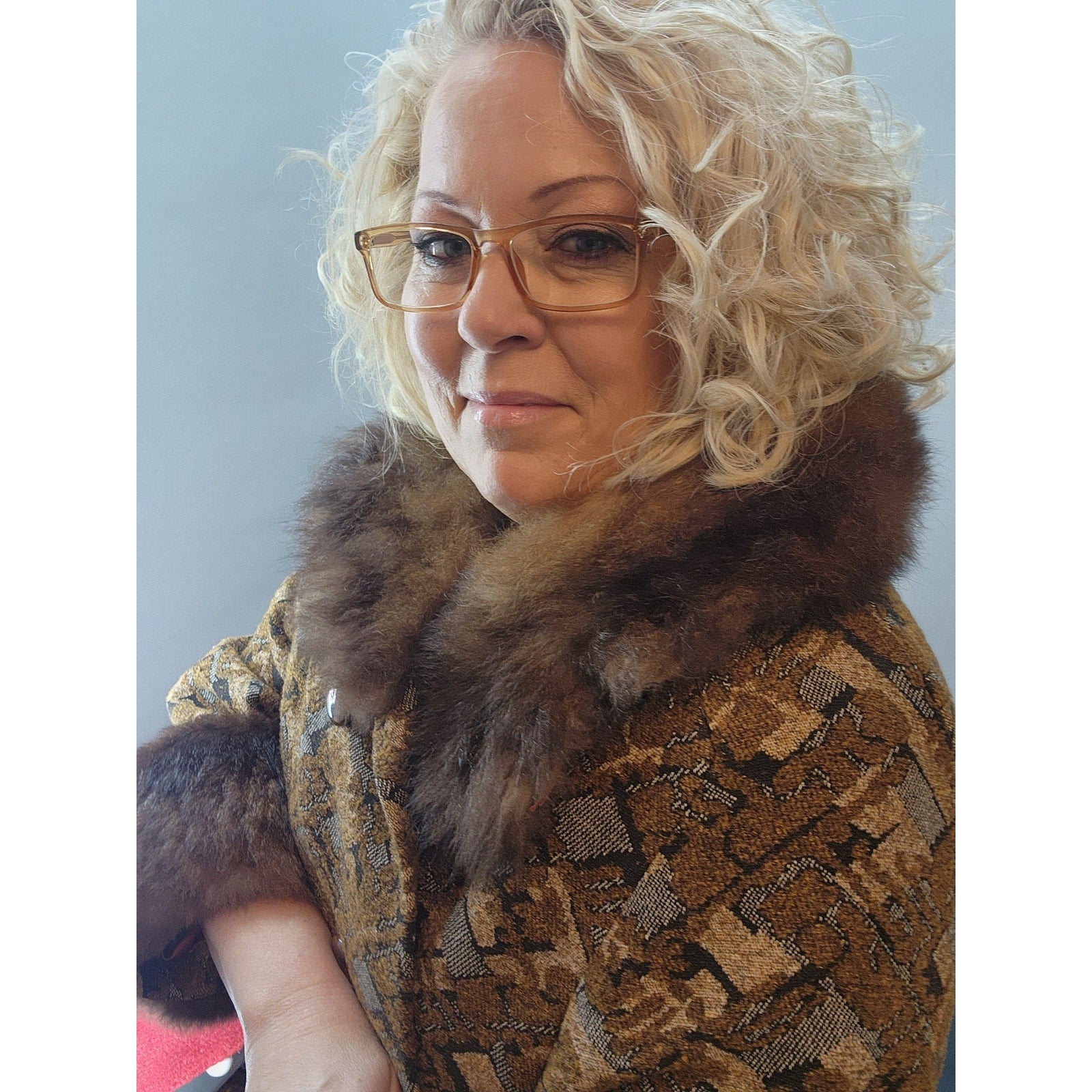 Warm, Heavy, FABULOUS double breasted tapestry coat with fluffy fur collar and cuffs, from Kalin's of Sioux City, made by Classic Weaving Corp.