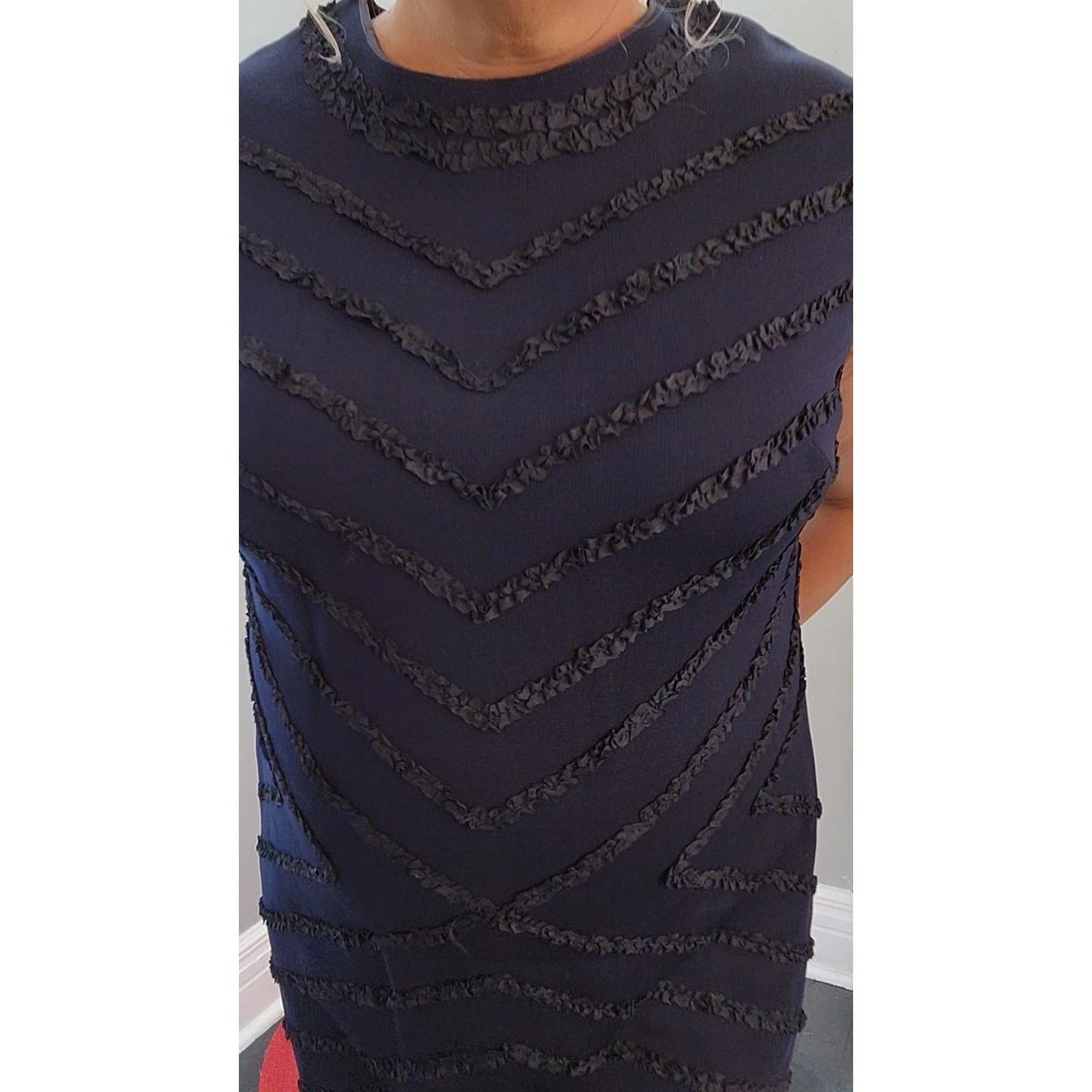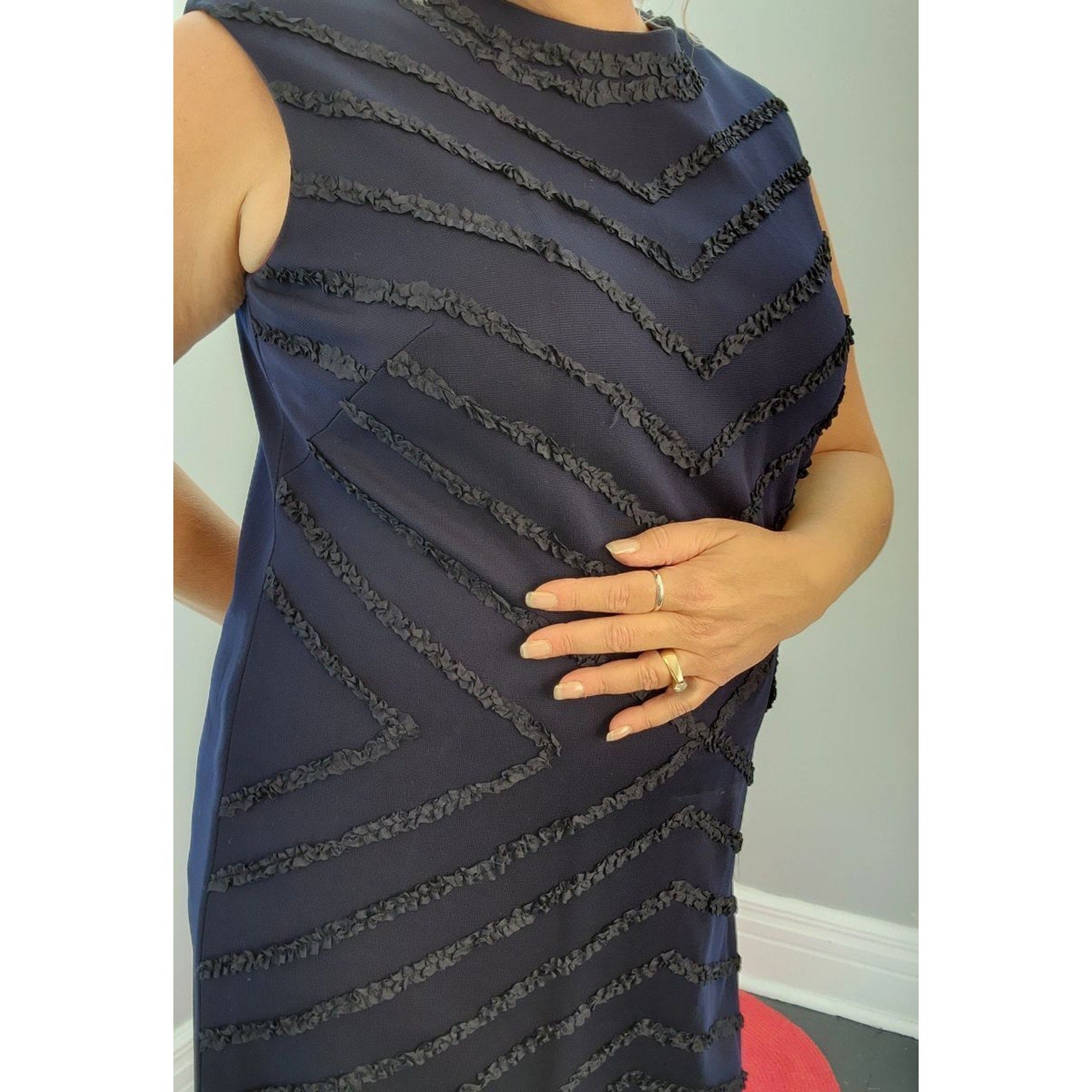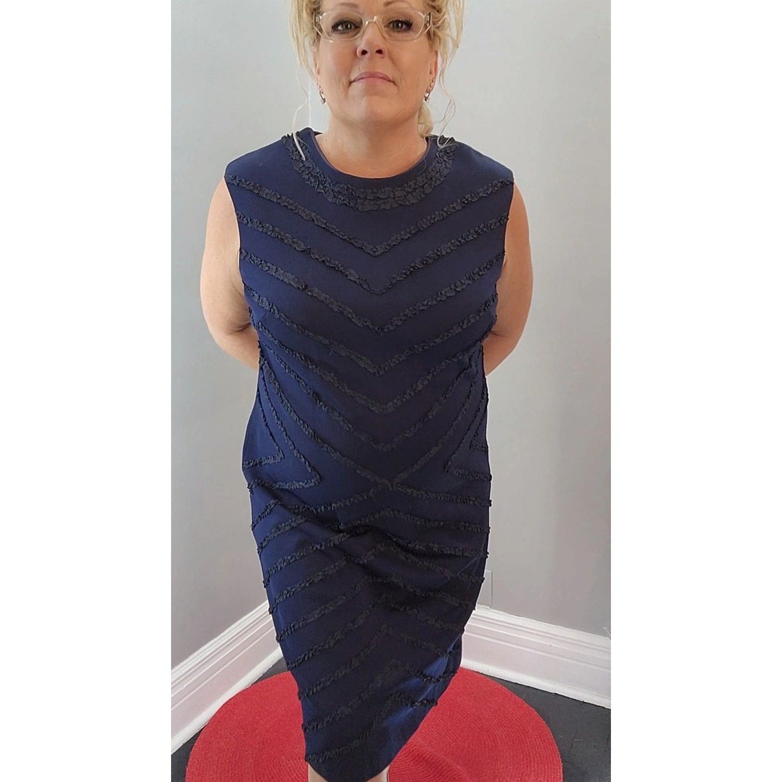 60s Vintage Lane Bryant Navy Blue Ruffle Ribbon Shift Dress- 1X/2X