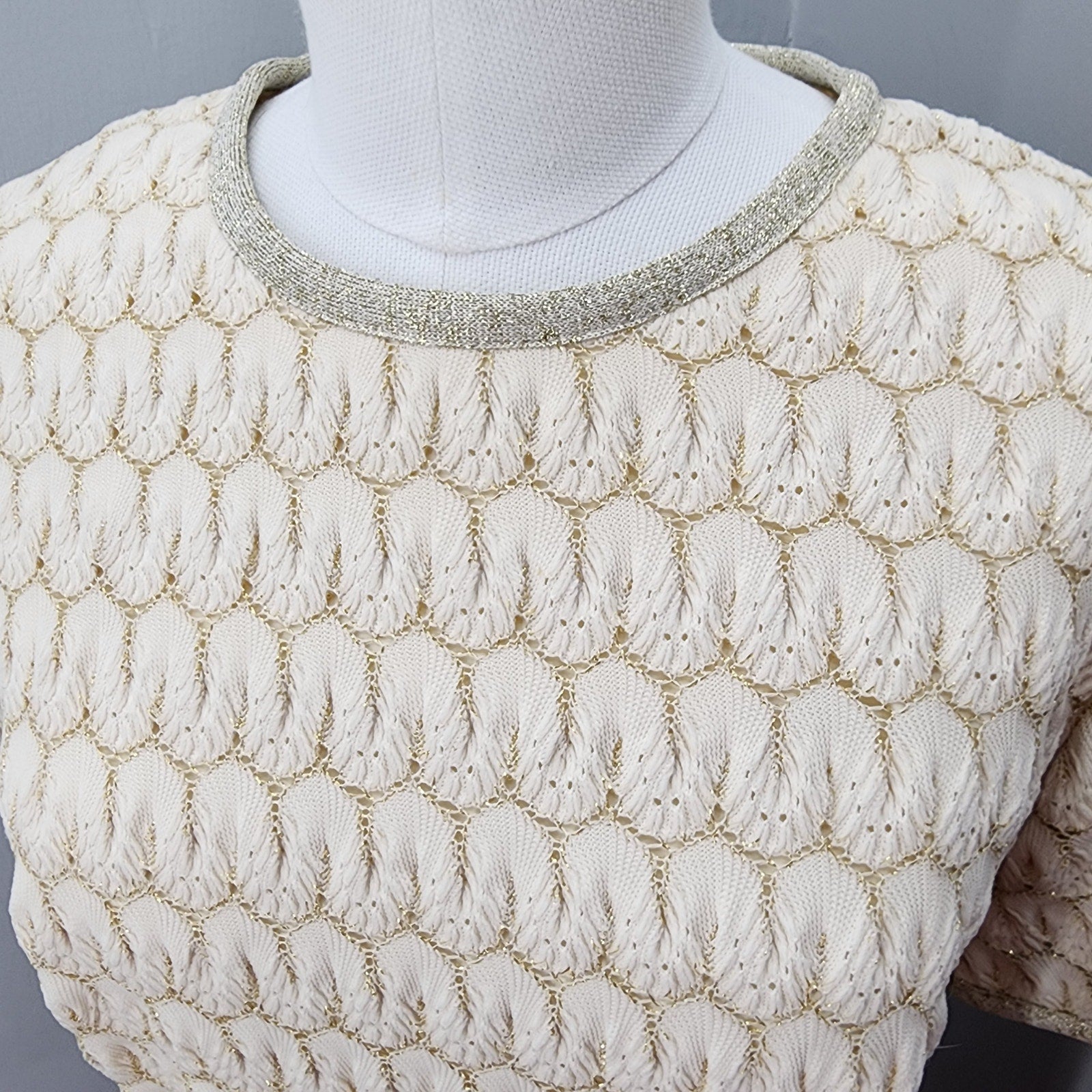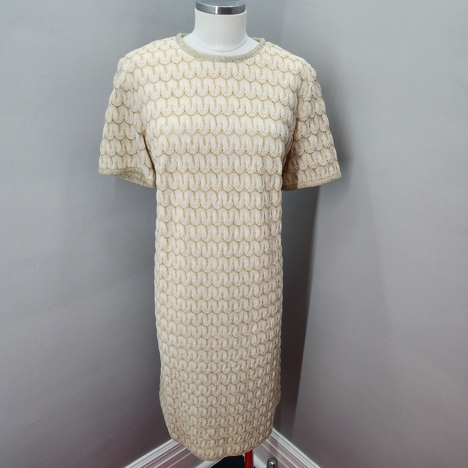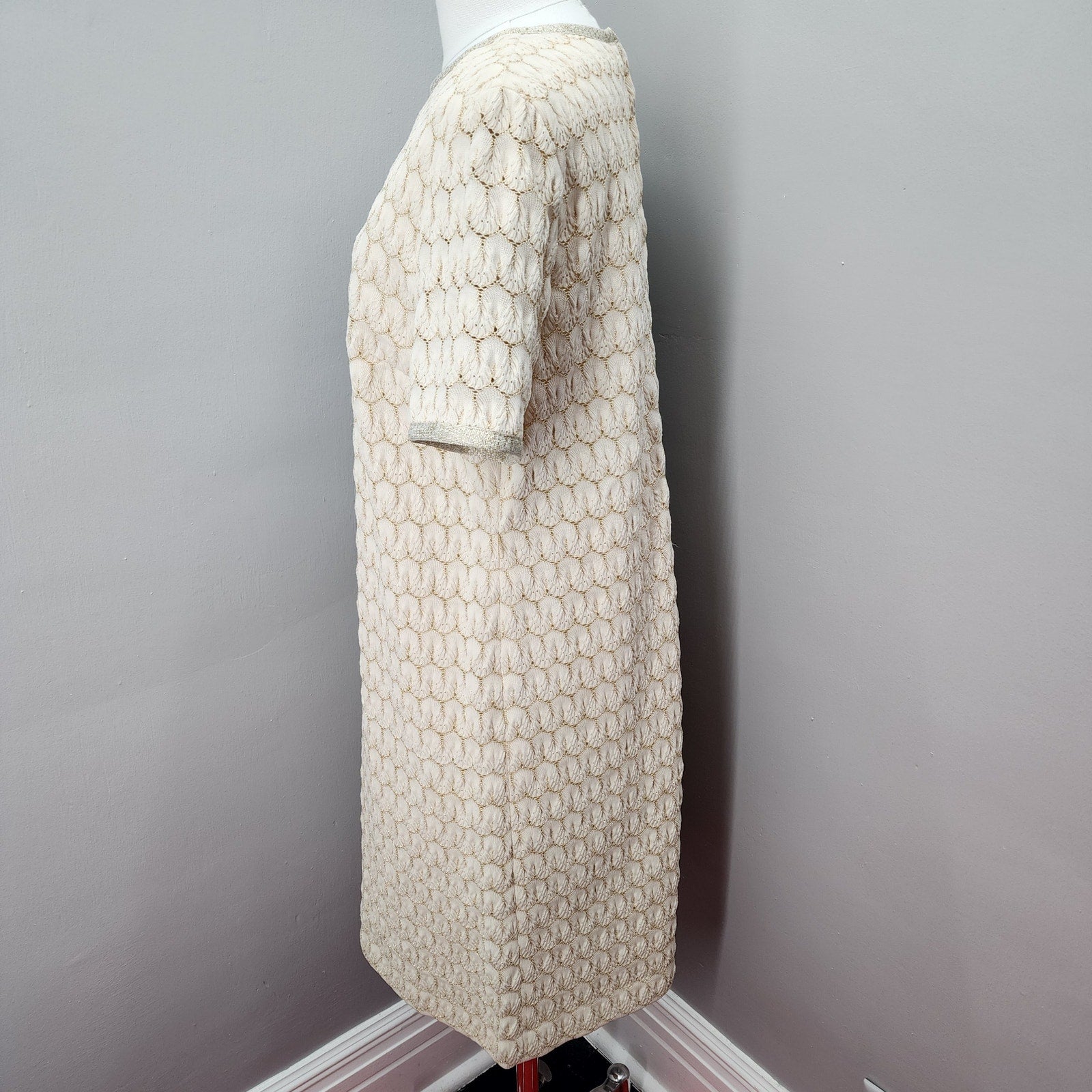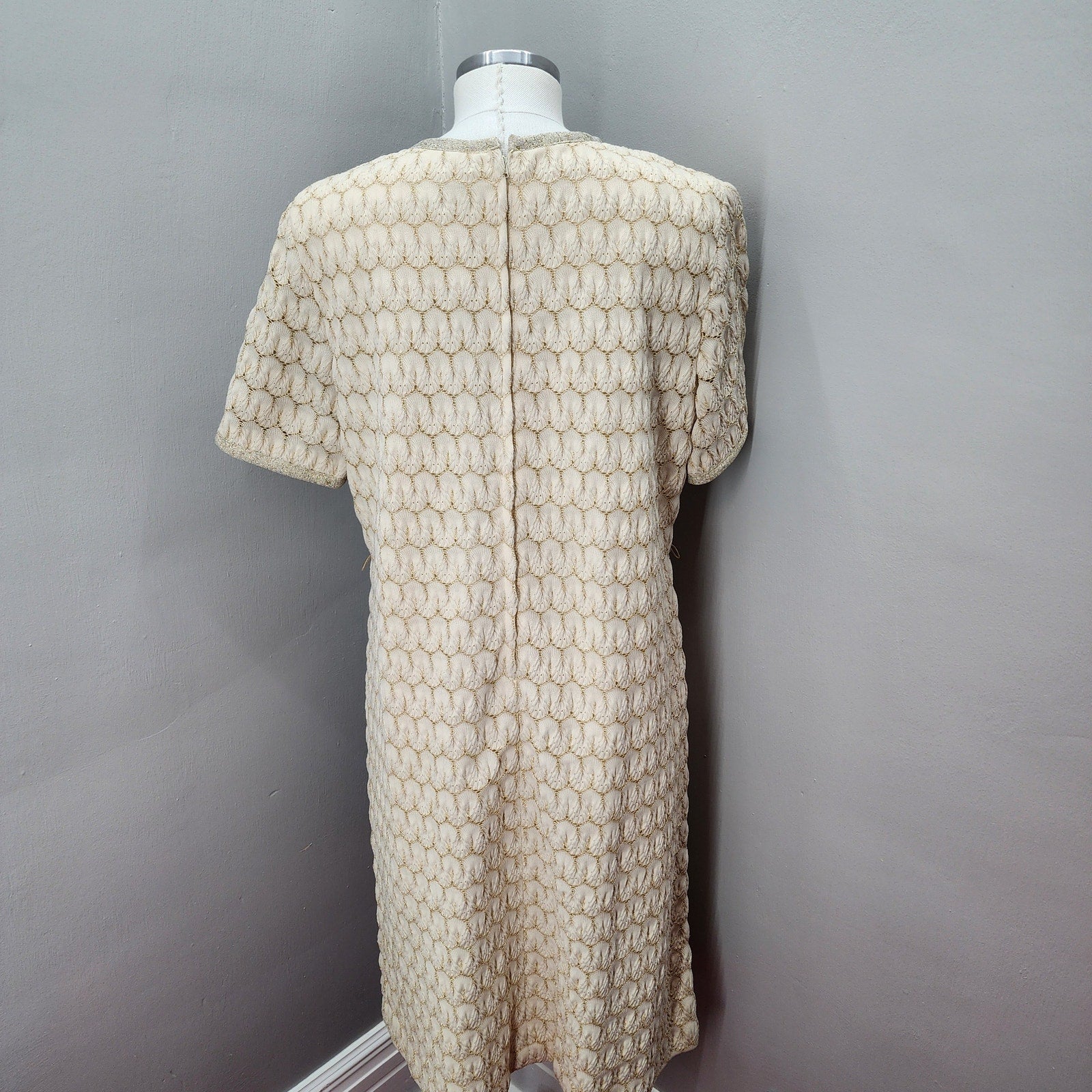 60s Vintage Mary Roberts Winter White Dress with Gold Lurex Design - XL
