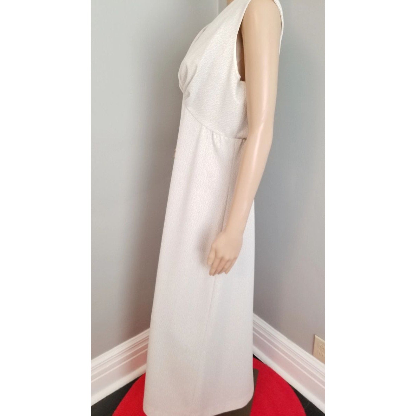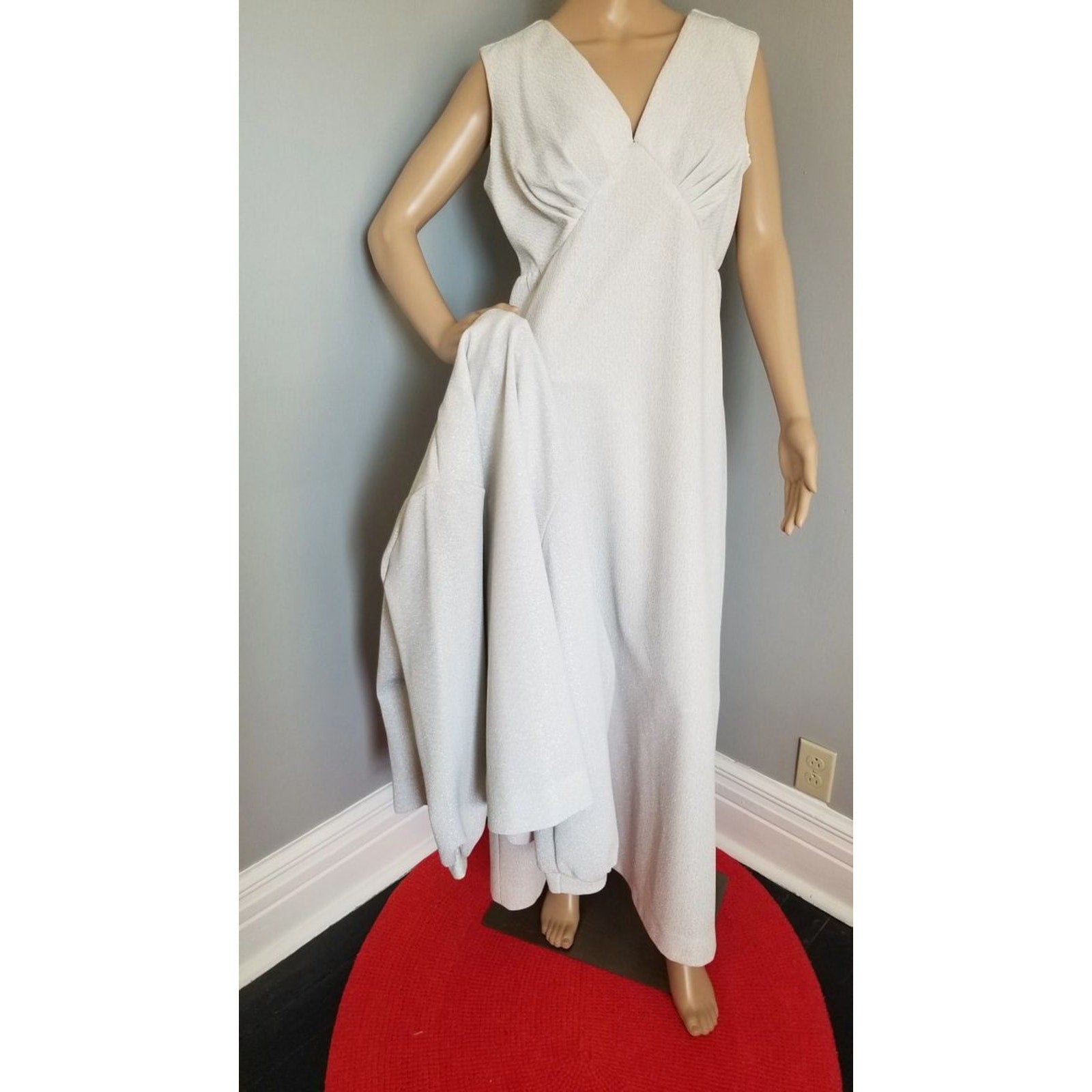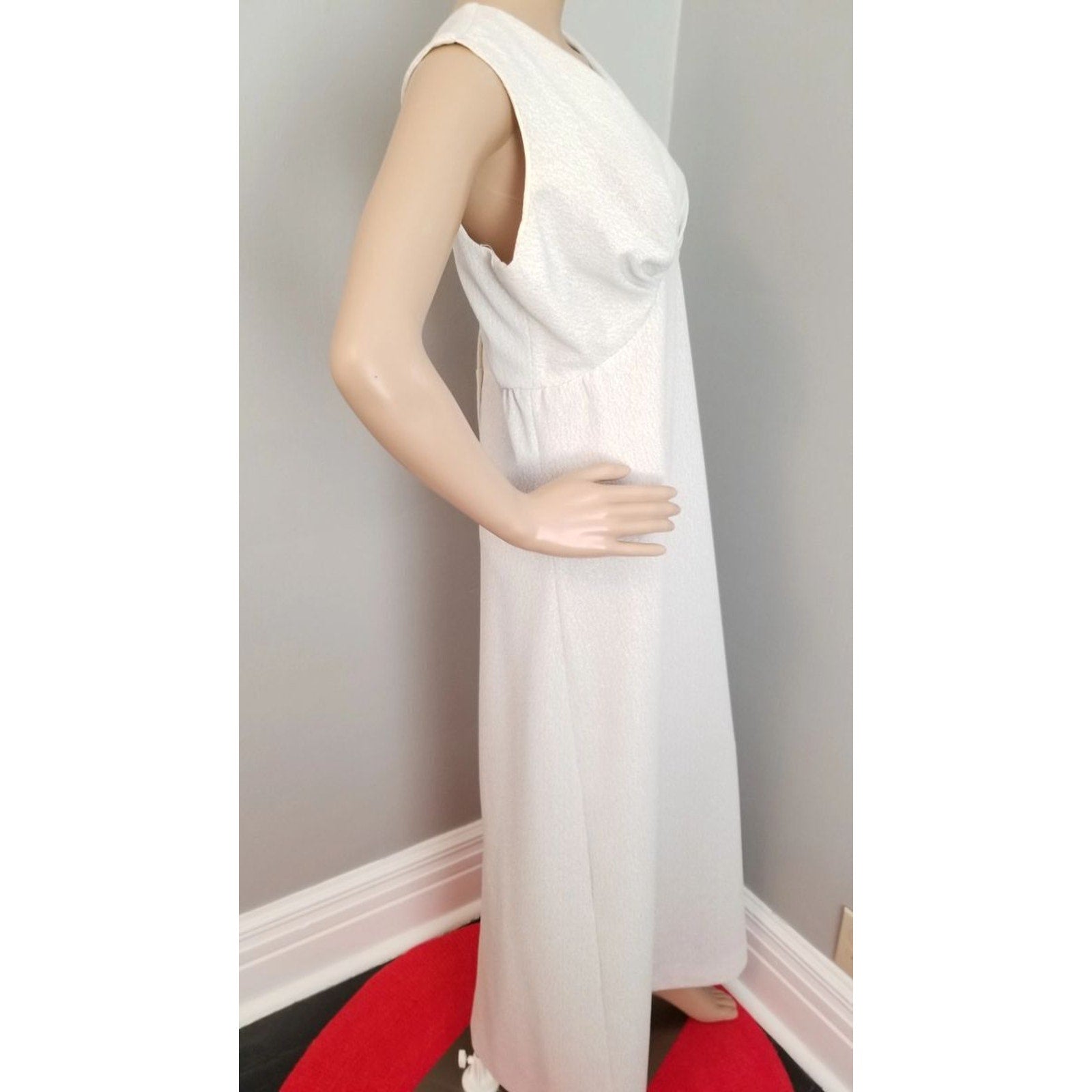 60s Vintage Maxi Cocktail / Hostess Dress in Silver Lurex and White - L