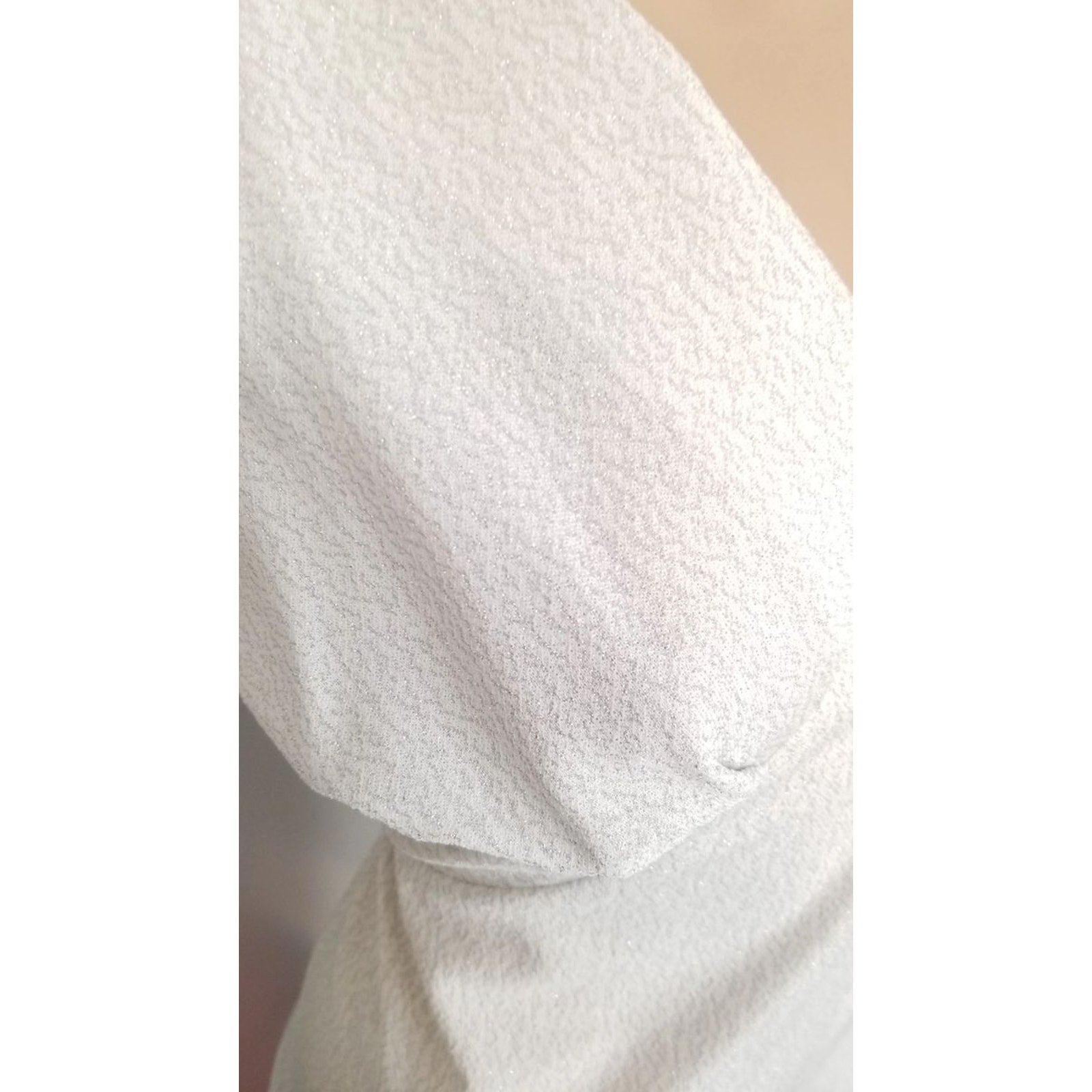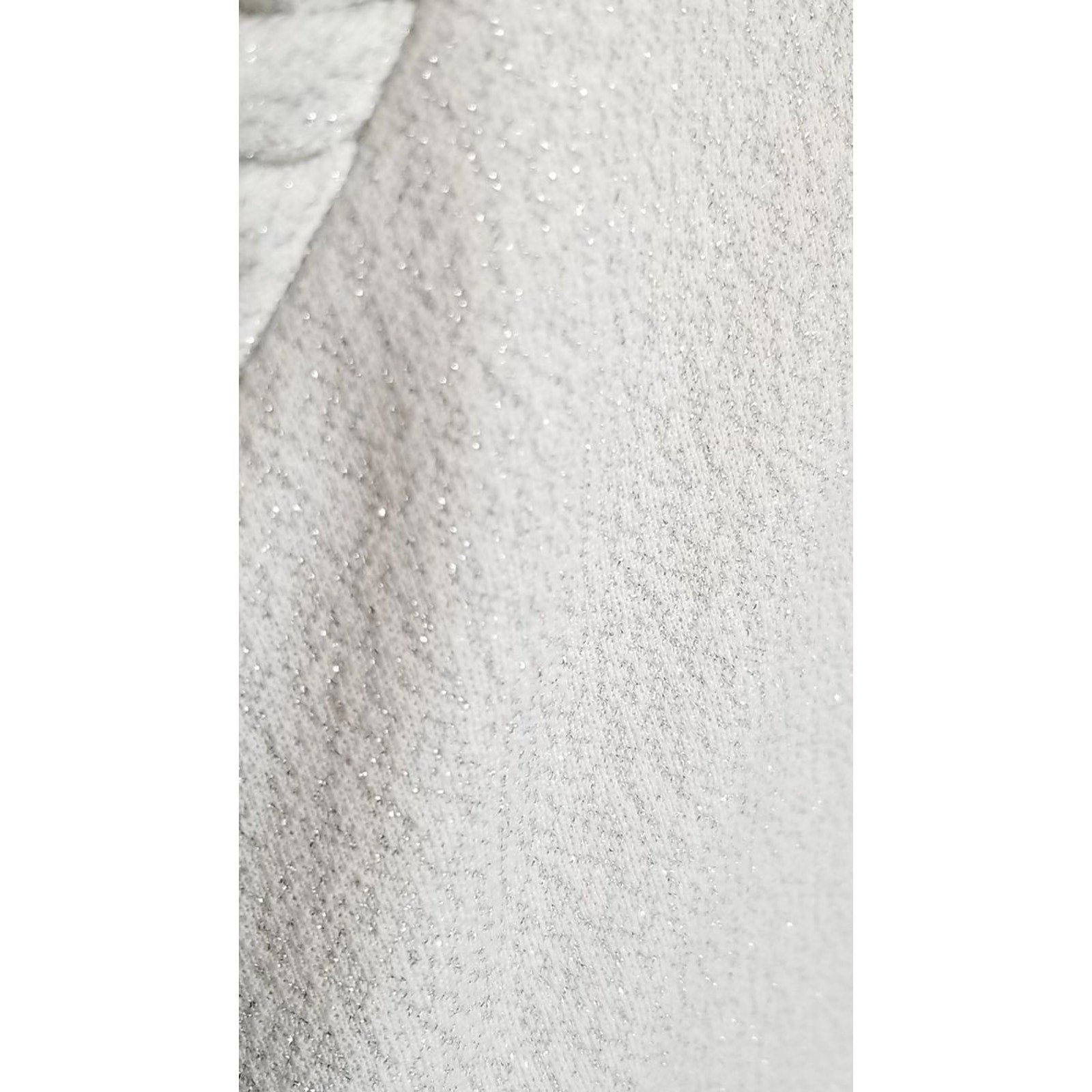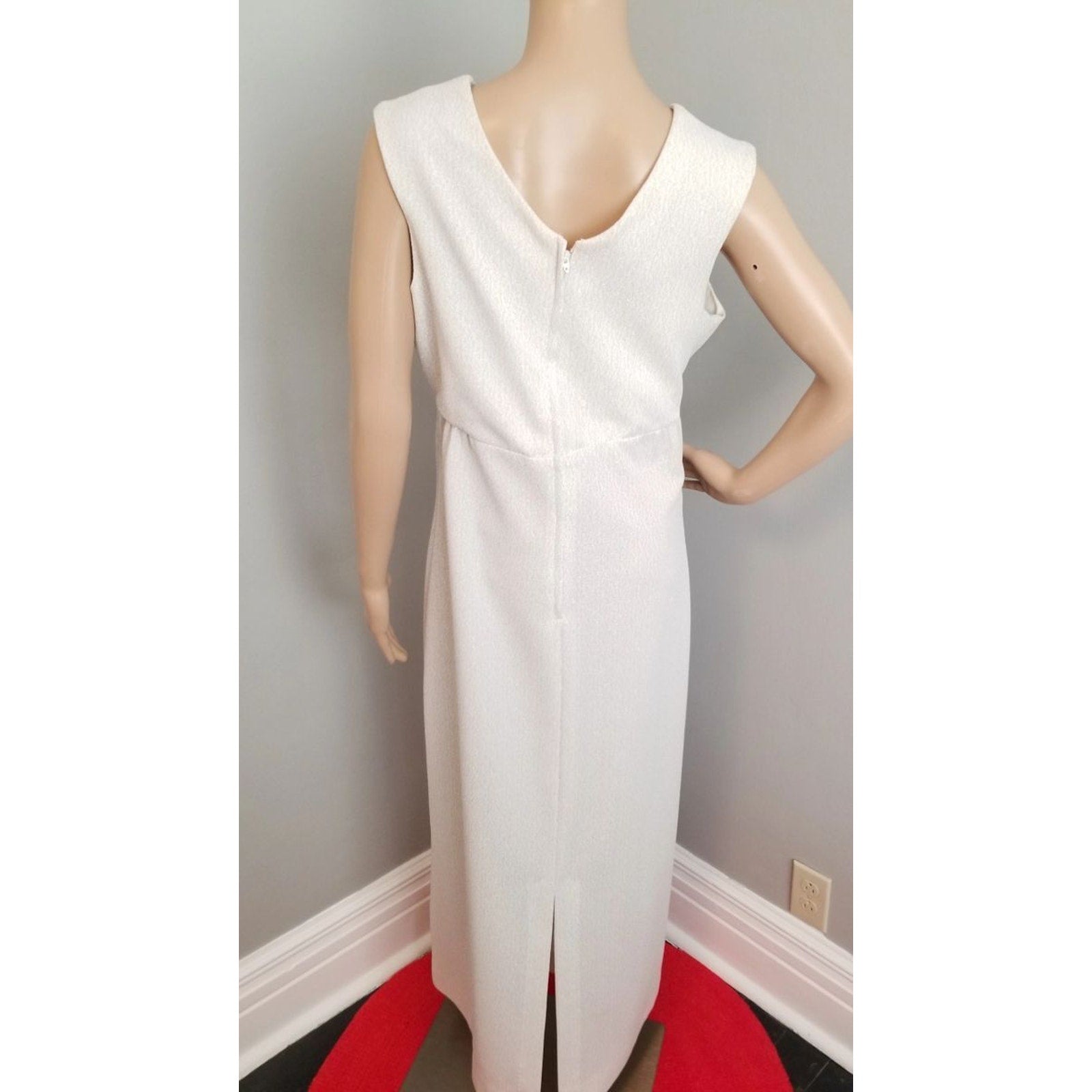 60s Vintage Maxi Cocktail / Hostess Dress in Silver Lurex and White - L